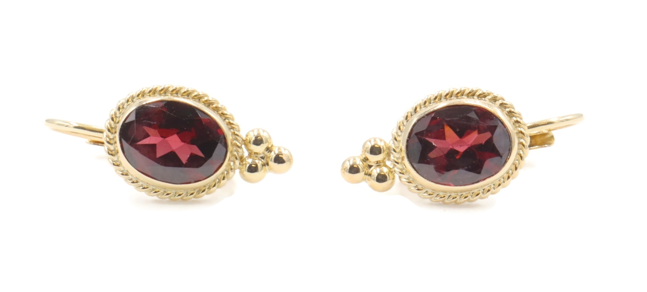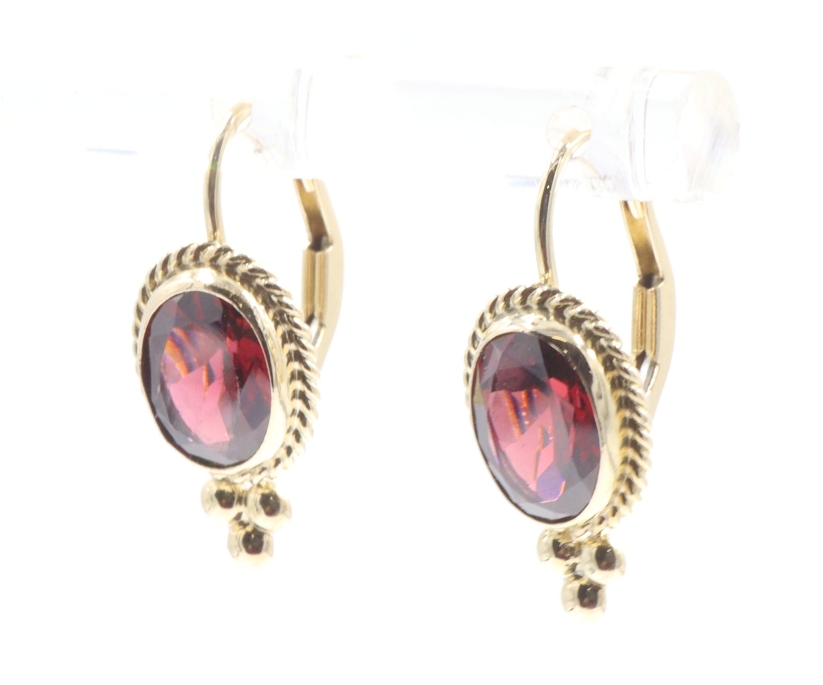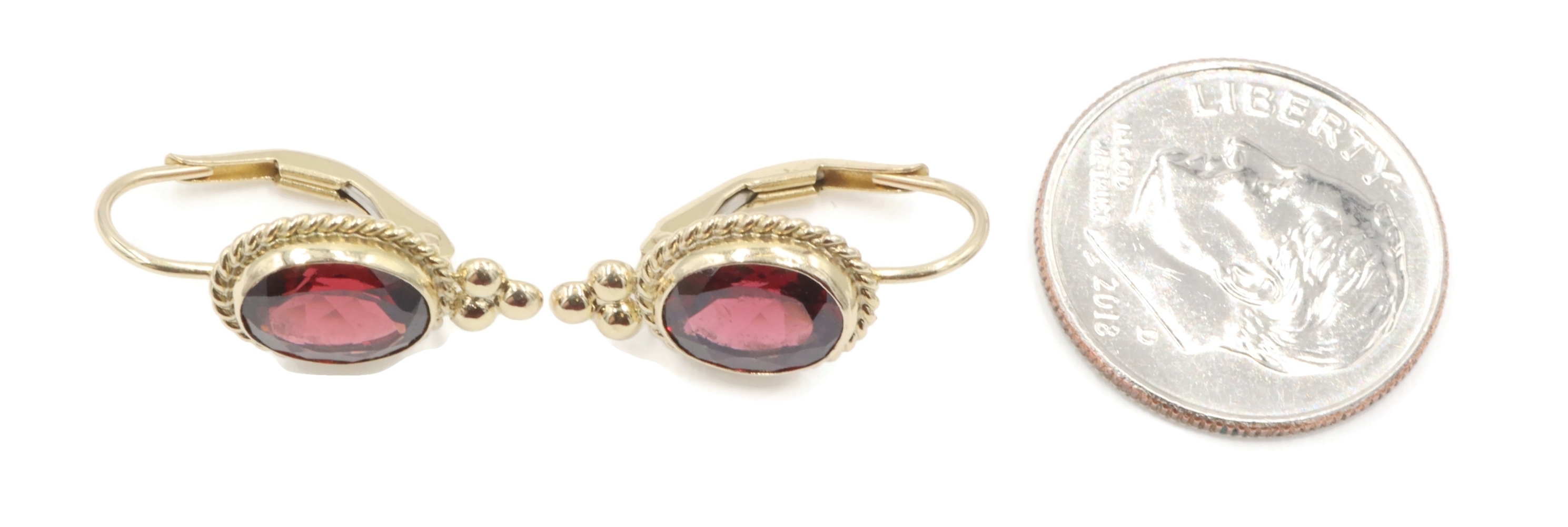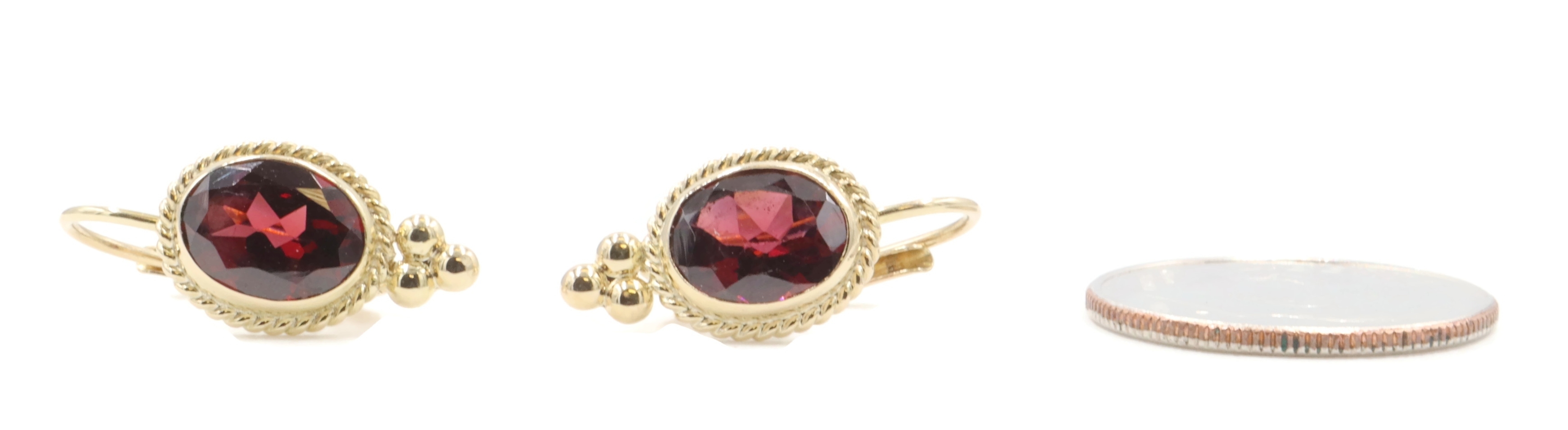 14KT Yellow Gold Oval Cut 2.20 ctw Garnet Lever Back Drop Earrings w Ball Accent | USA Pawn