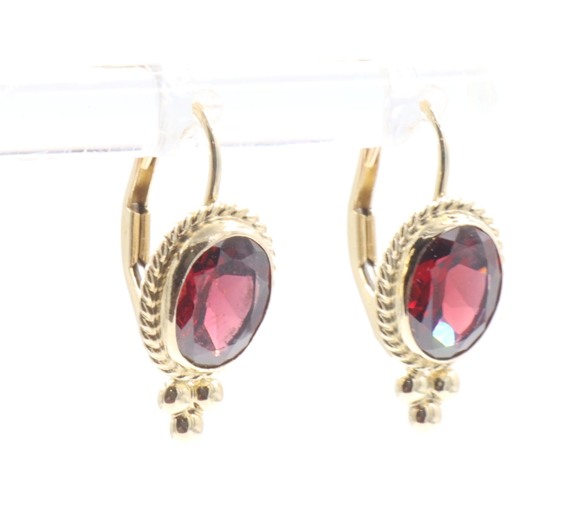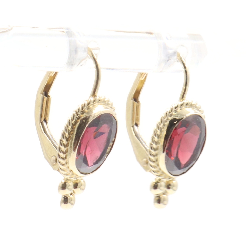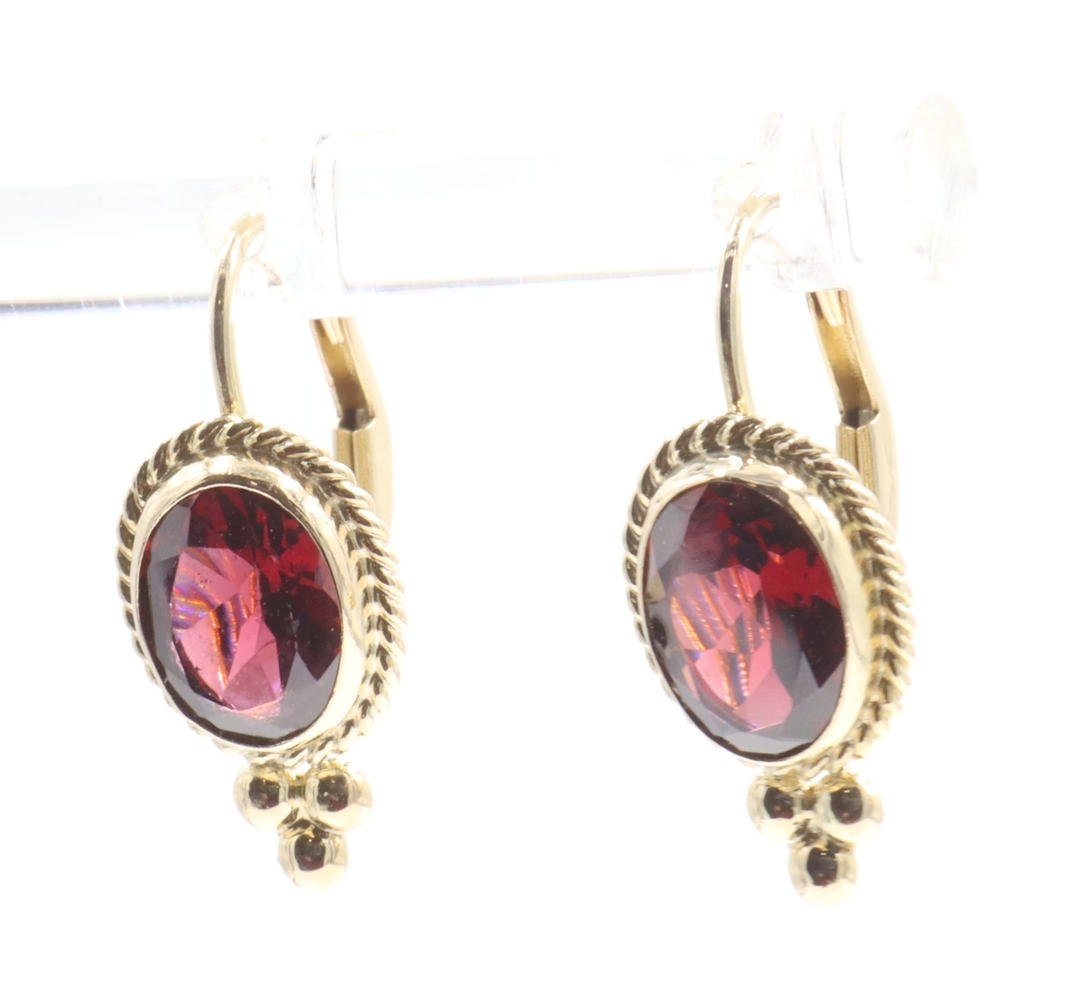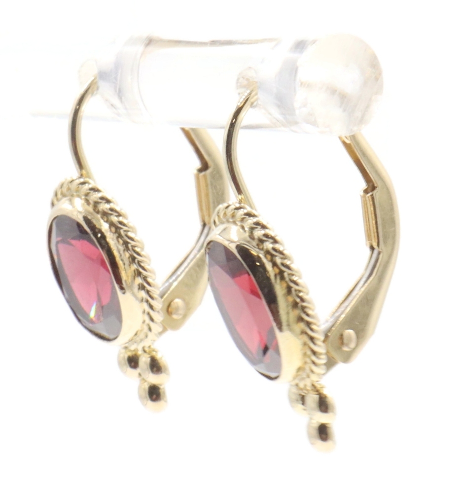 14KT Yellow Gold Oval Cut 2.20 ctw Garnet Lever Back Drop Earrings w Ball Accent | USA Pawn