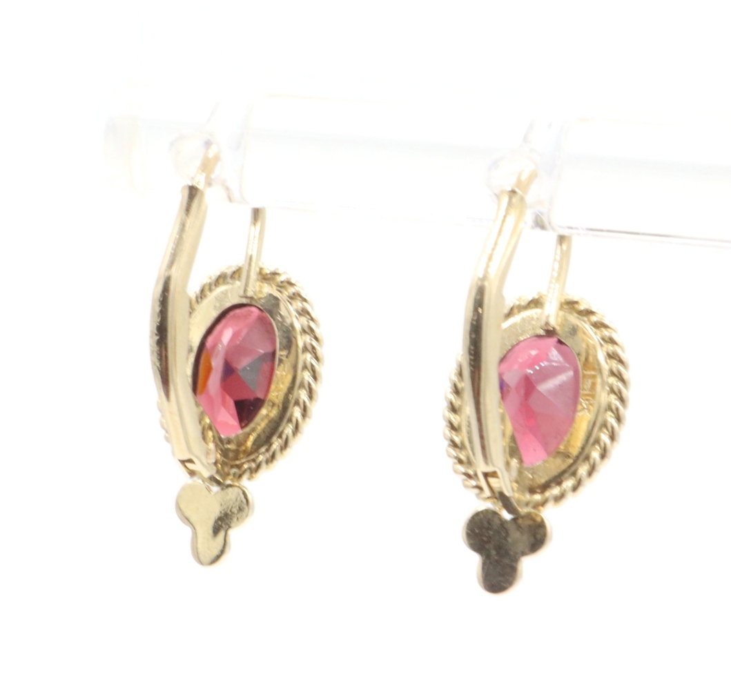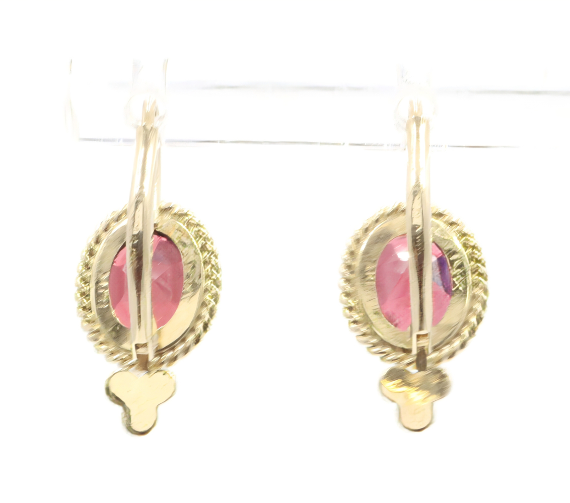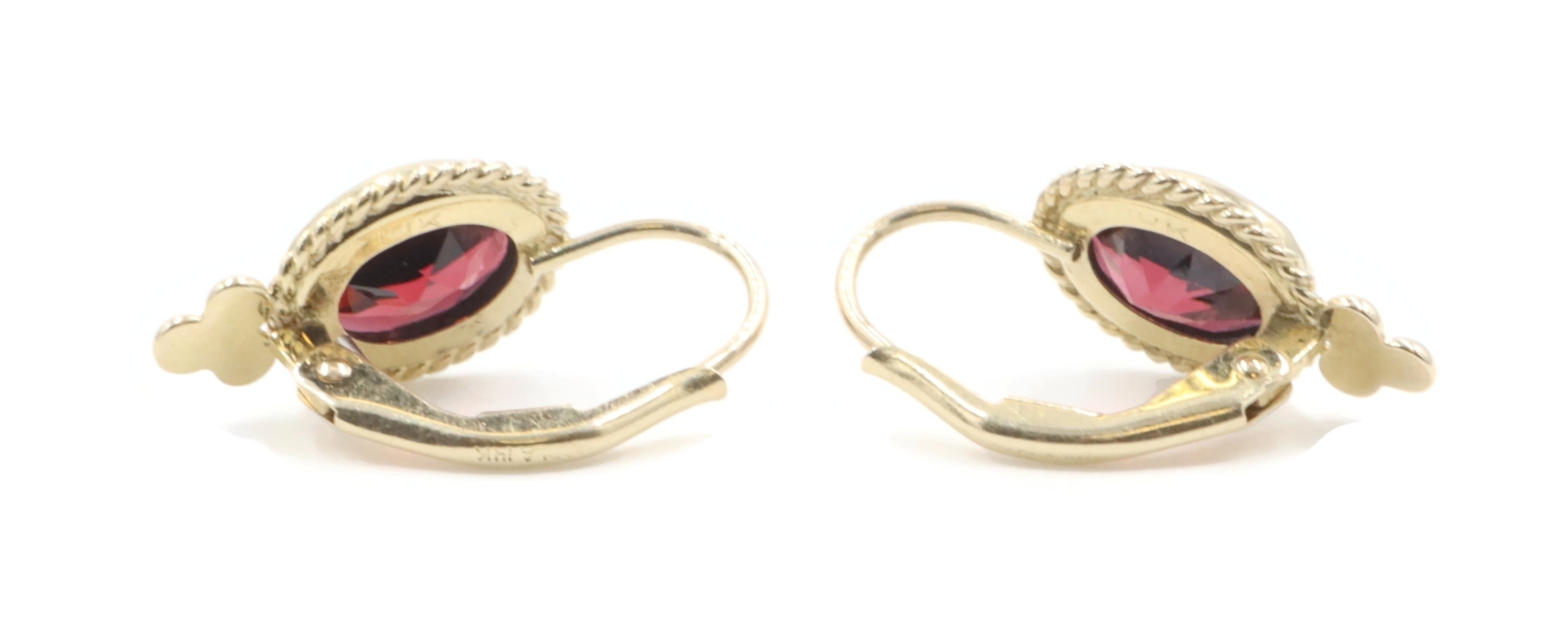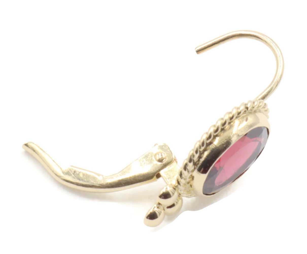 14KT Yellow Gold Oval Cut 2.20 ctw Garnet Lever Back Drop Earrings w Ball Accent | USA Pawn