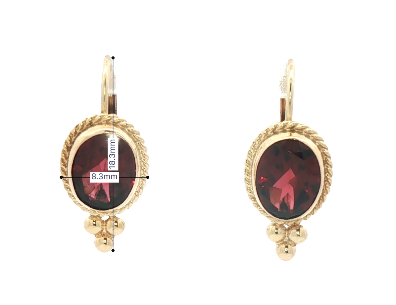 14KT Yellow Gold Oval Cut 2.20 ctw Garnet Lever Back Drop Earrings w Ball Accent