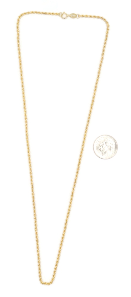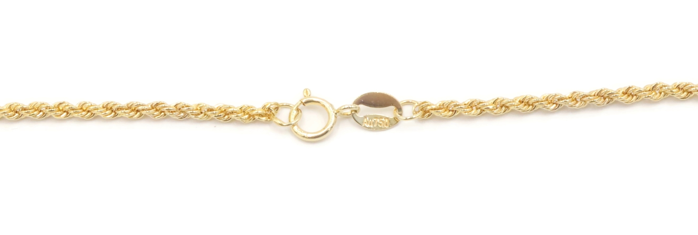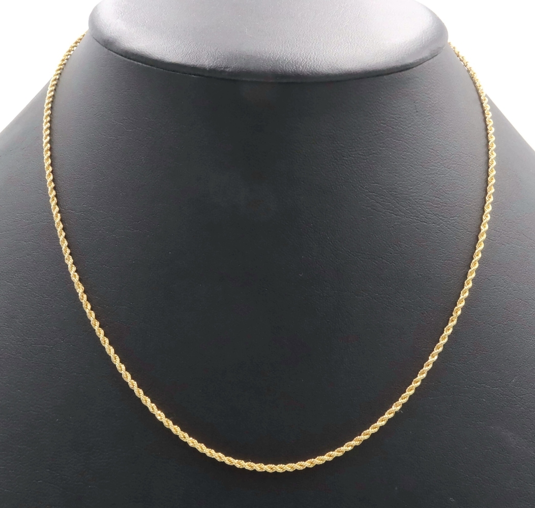 18.5" 18KT Yellow Gold High Shine 1.9mm Wide Thin Rope Chain Necklace - 2.07g | USA Pawn