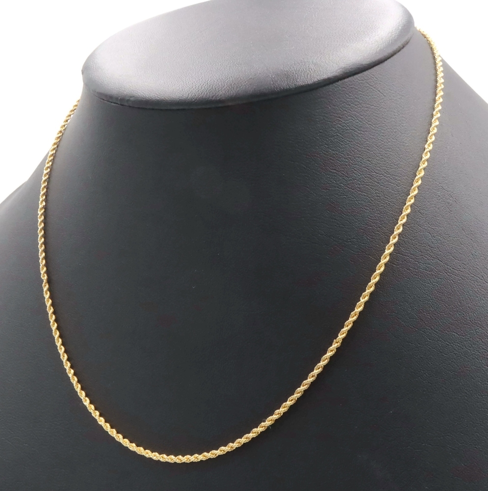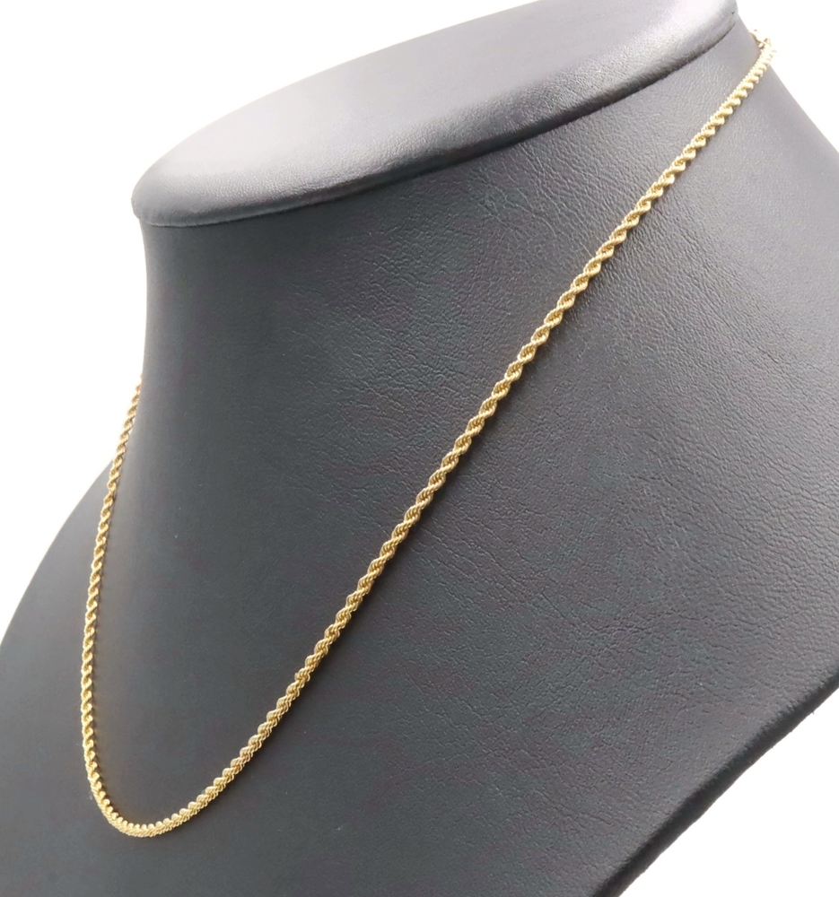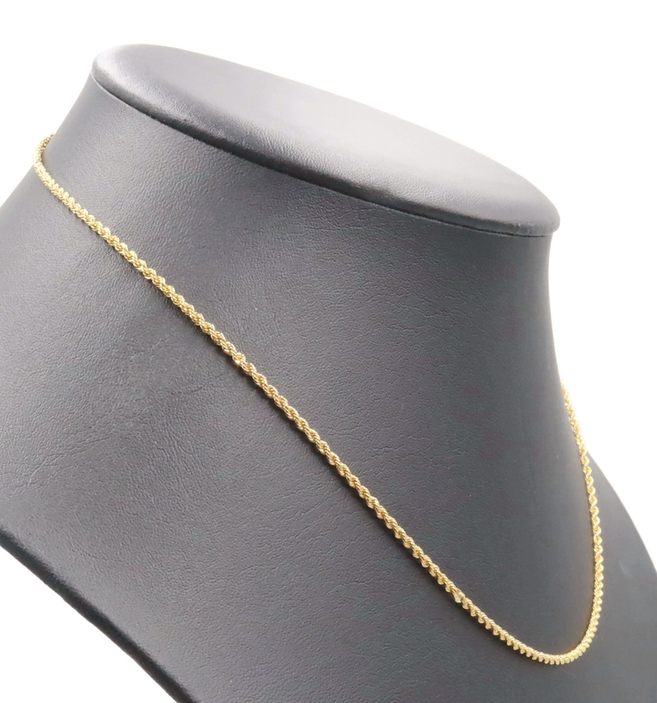 18.5" 18KT Yellow Gold High Shine 1.9mm Wide Thin Rope Chain Necklace - 2.07g