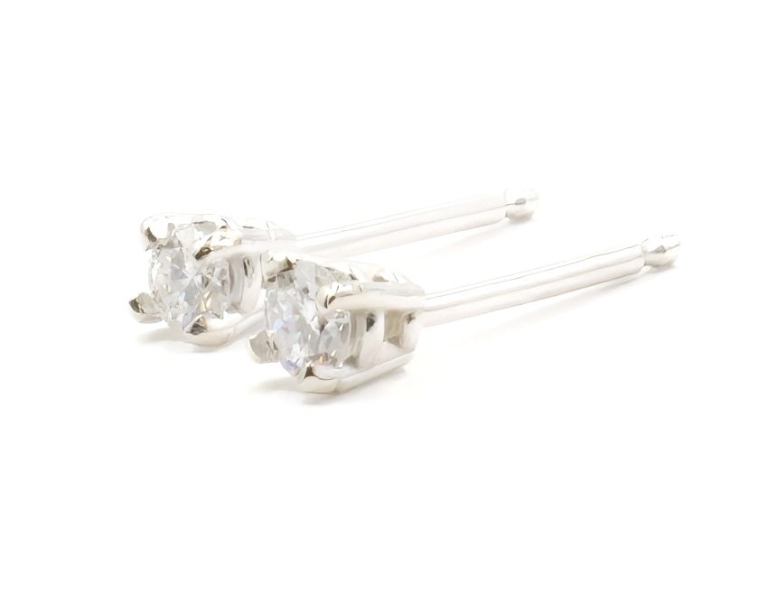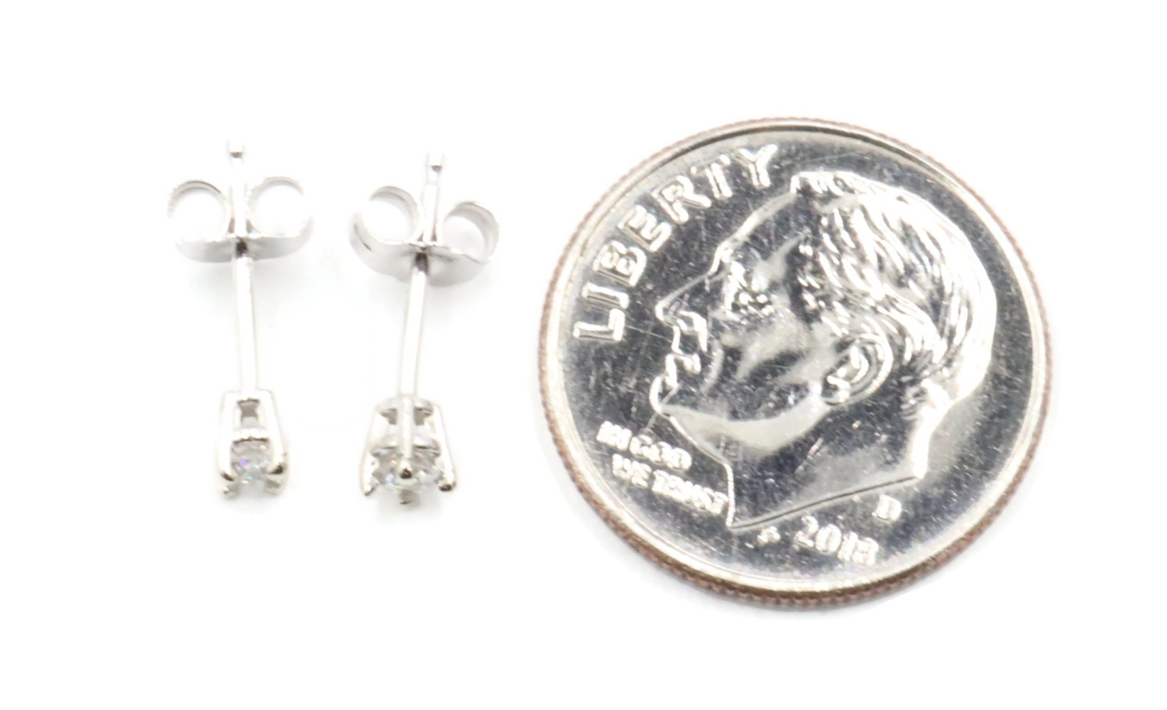 1/8 cttw Round Brilliant Cut Diamond 14KT White Gold Solitaire Stud Earrings | USA Pawn