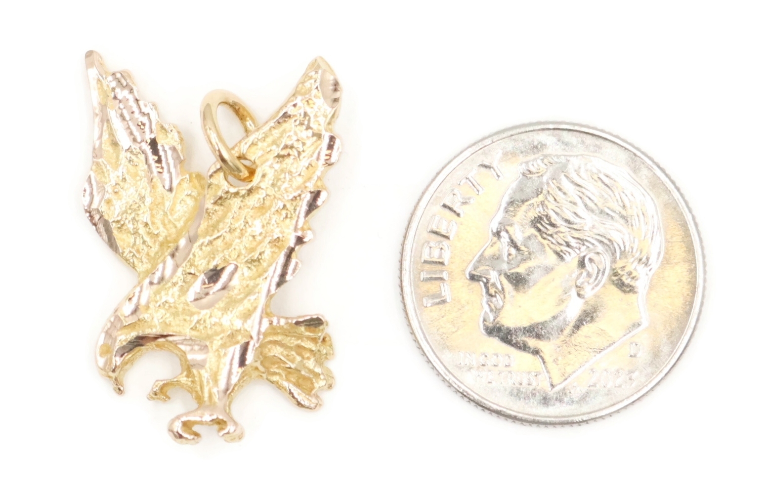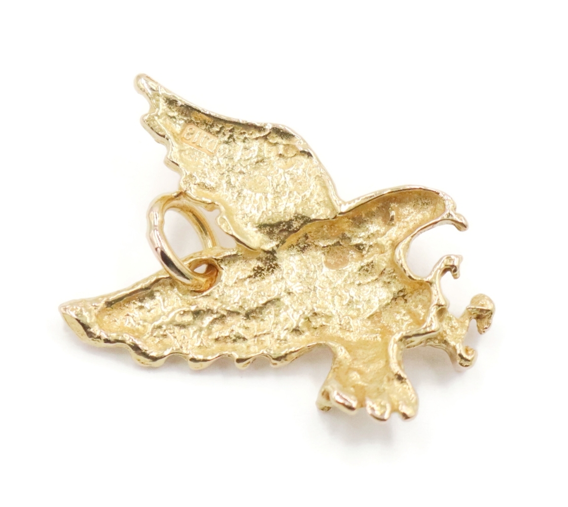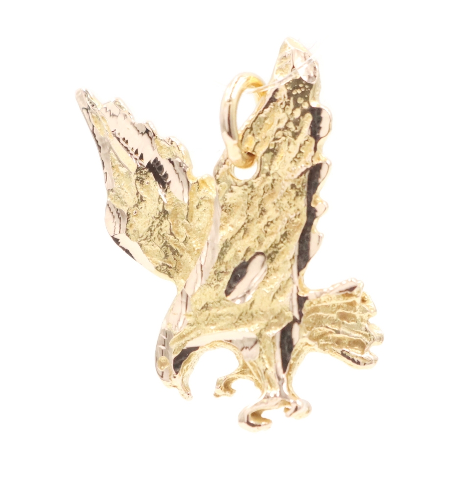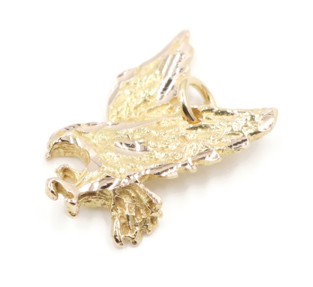 18KT Yellow Gold 0.9" High Shine Diamond Cut Soaring Eagle Necklace Pendant 2.9g | USA Pawn