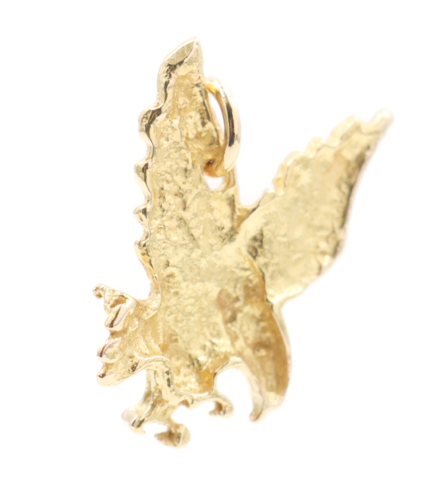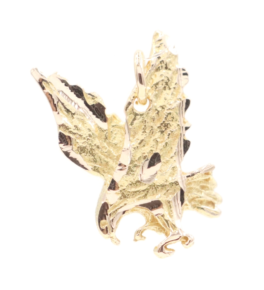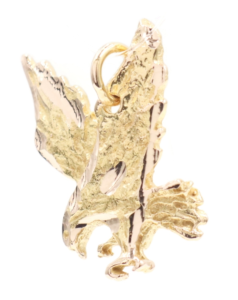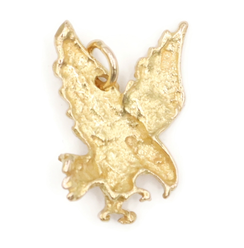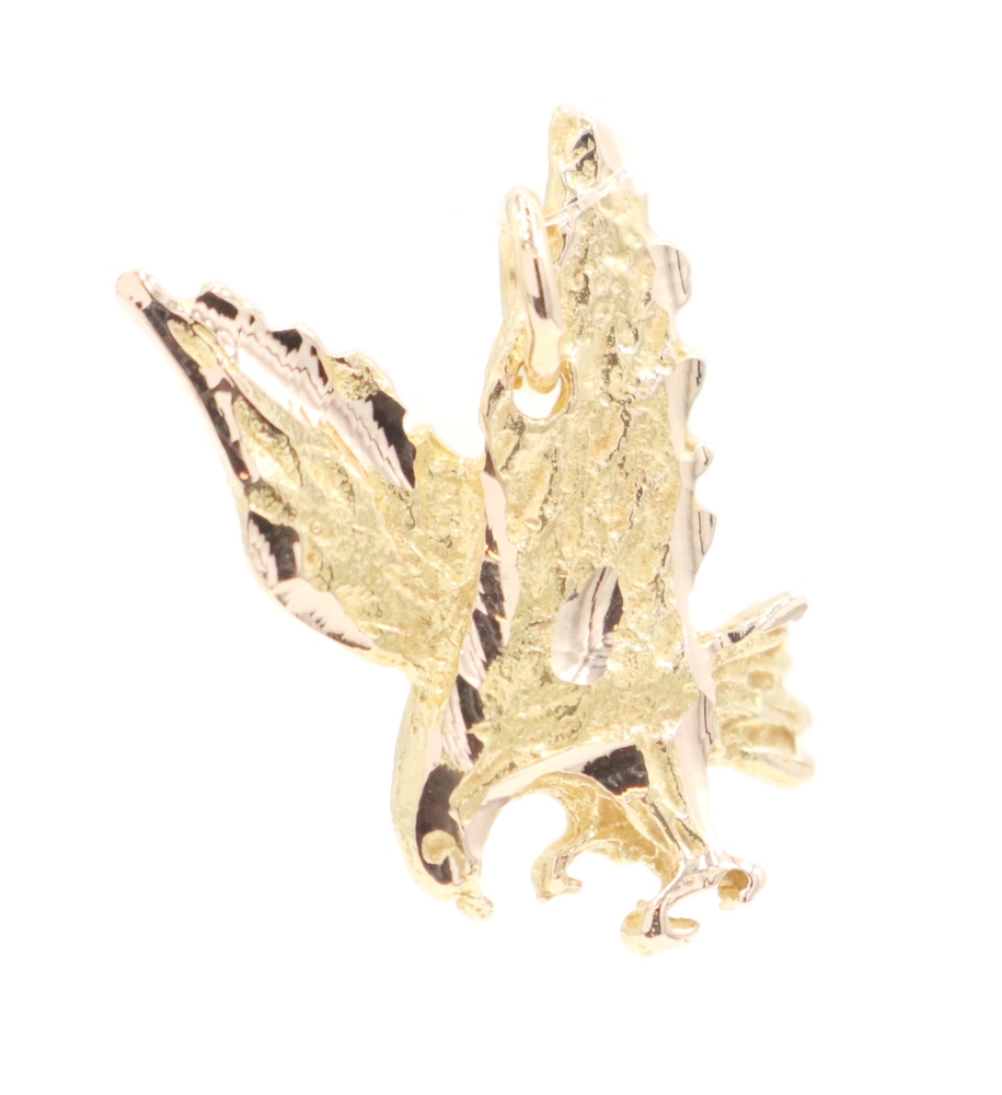 18KT Yellow Gold 0.9" High Shine Diamond Cut Soaring Eagle Necklace Pendant 2.9g | USA Pawn