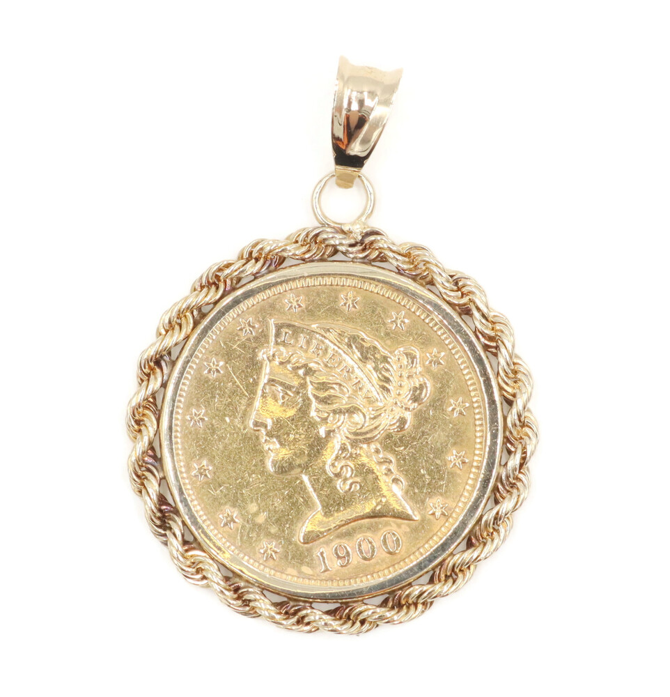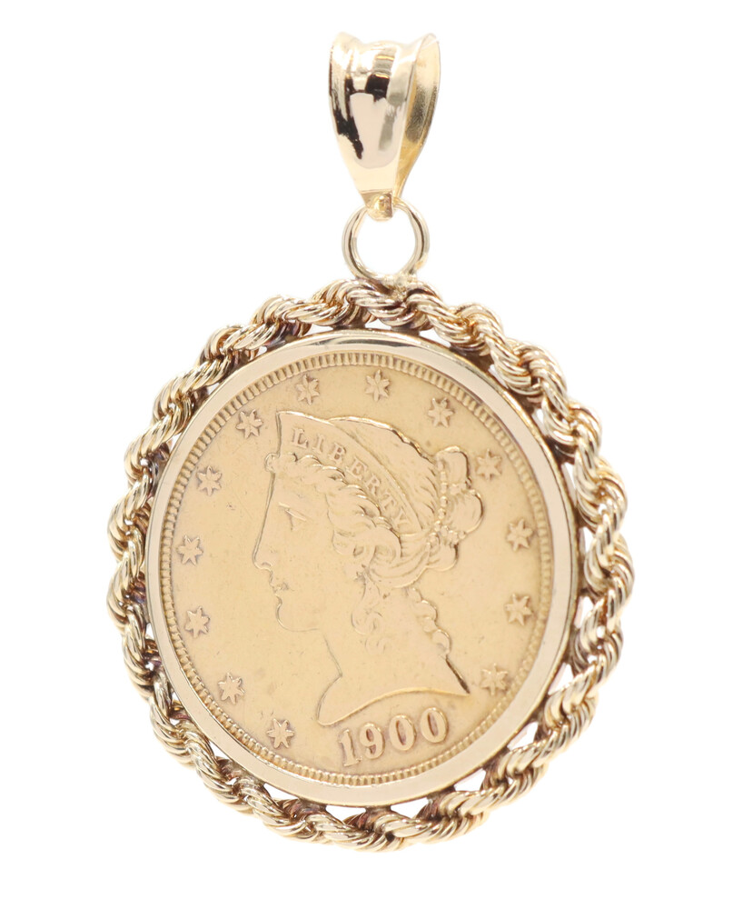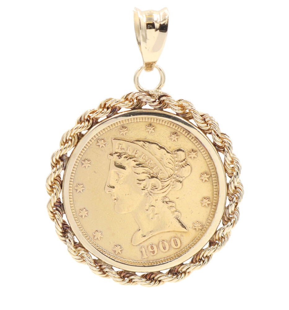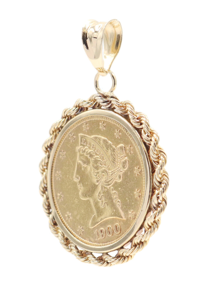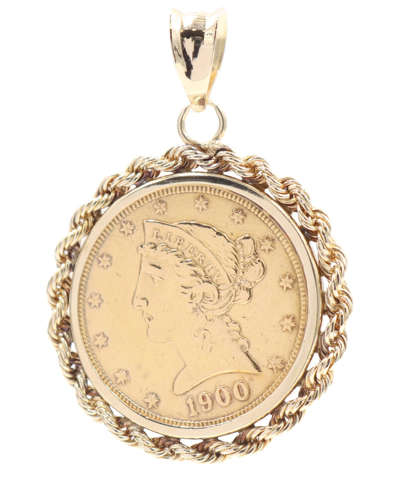 1900 Liberty Head Five D Gold Coin in 14KT Yellow Gold Rope Bezel Pendant 10.5g | USA Pawn