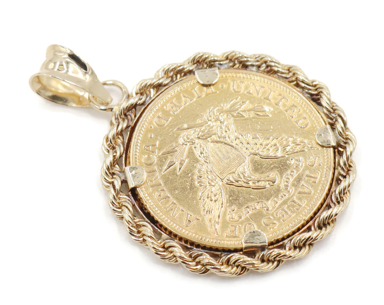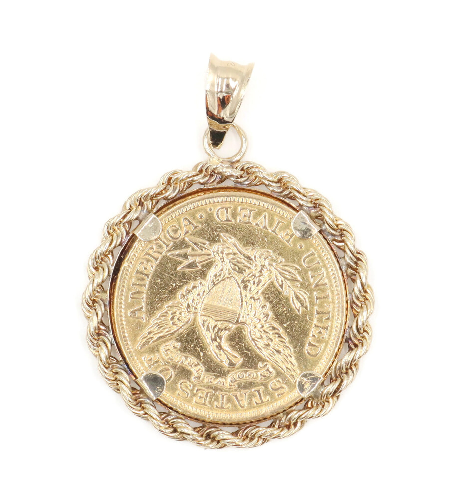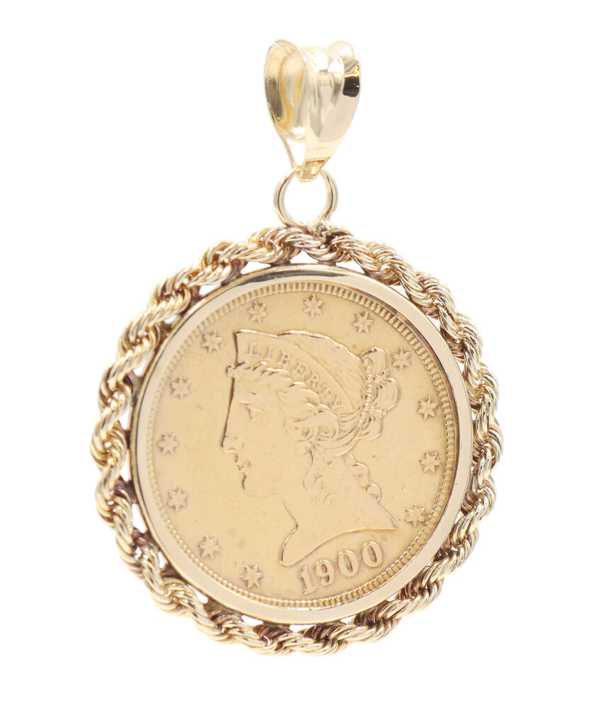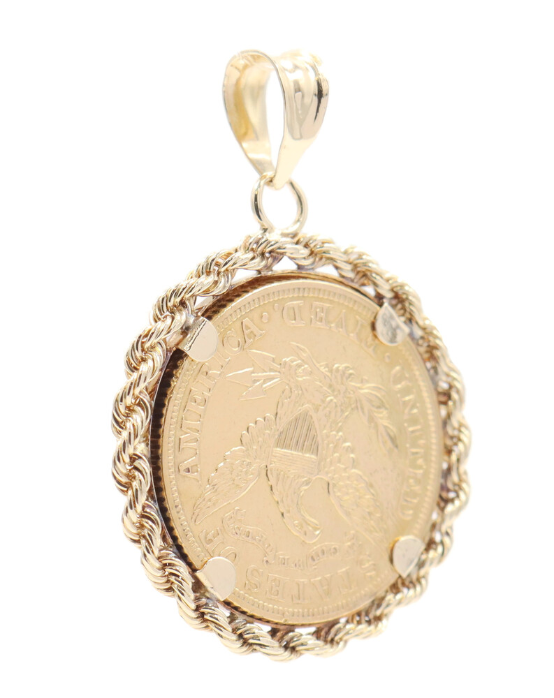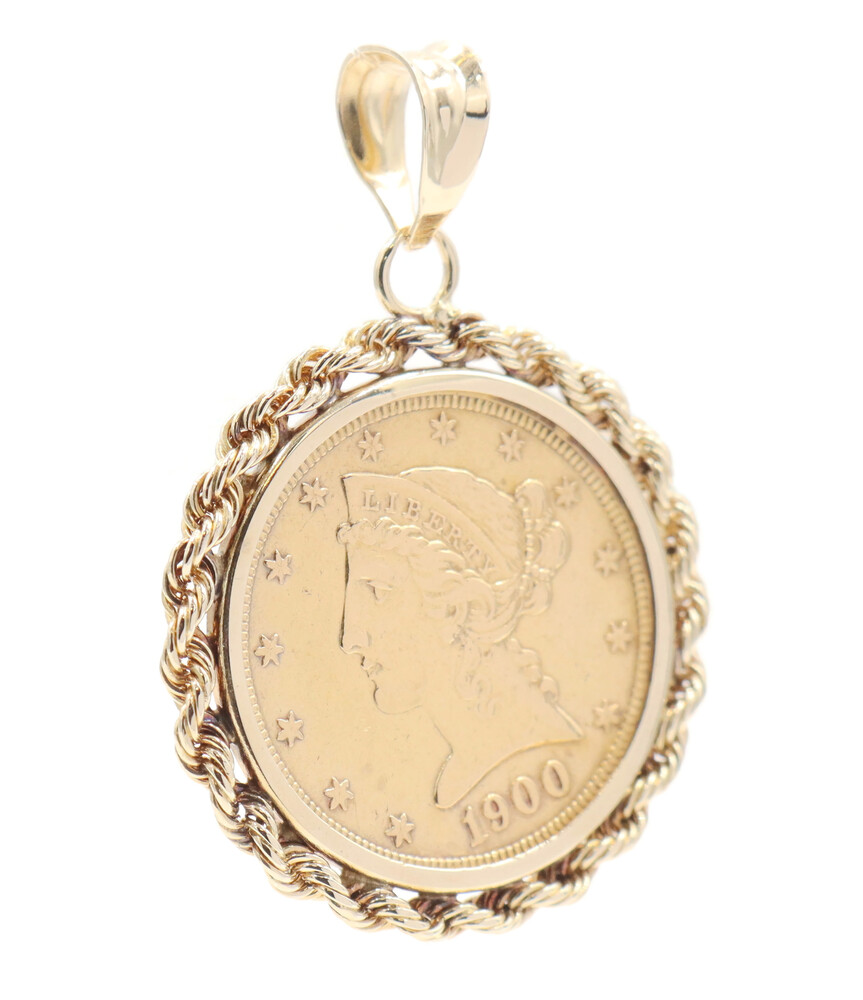 1900 Liberty Head Five D Gold Coin in 14KT Yellow Gold Rope Bezel Pendant 10.5g | USA Pawn