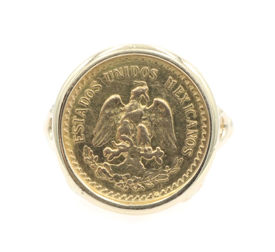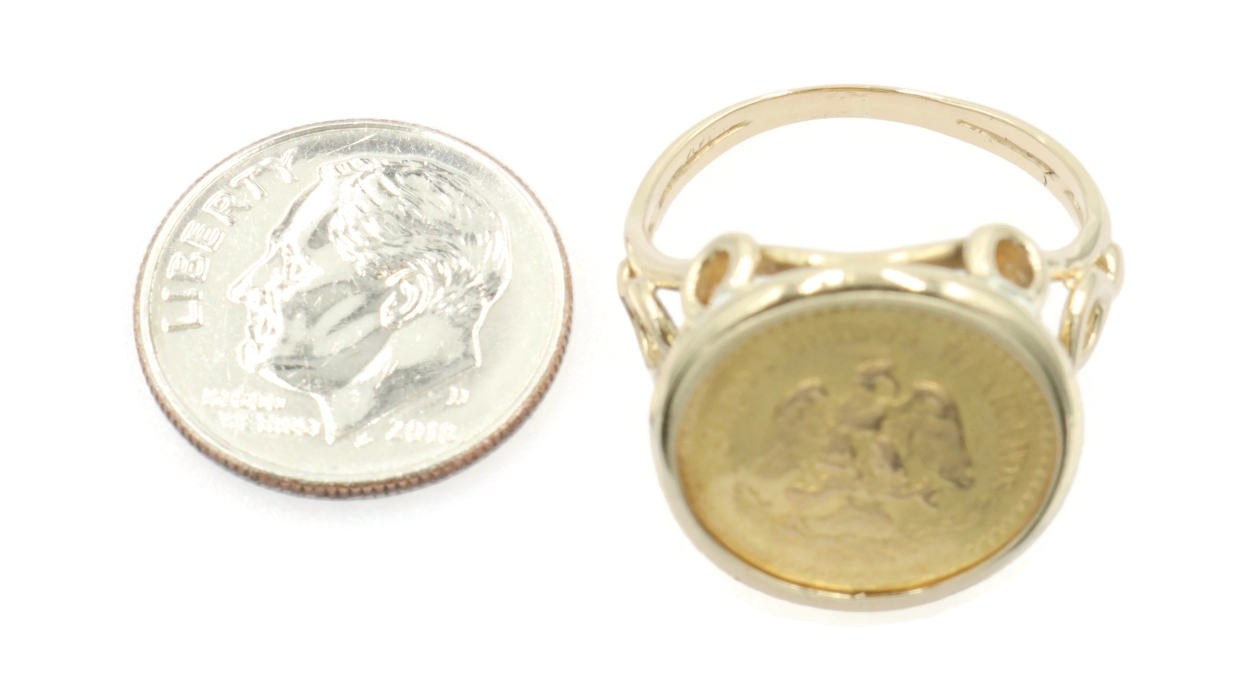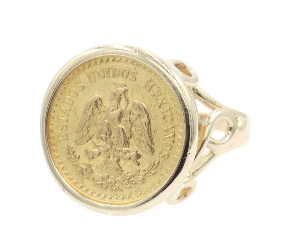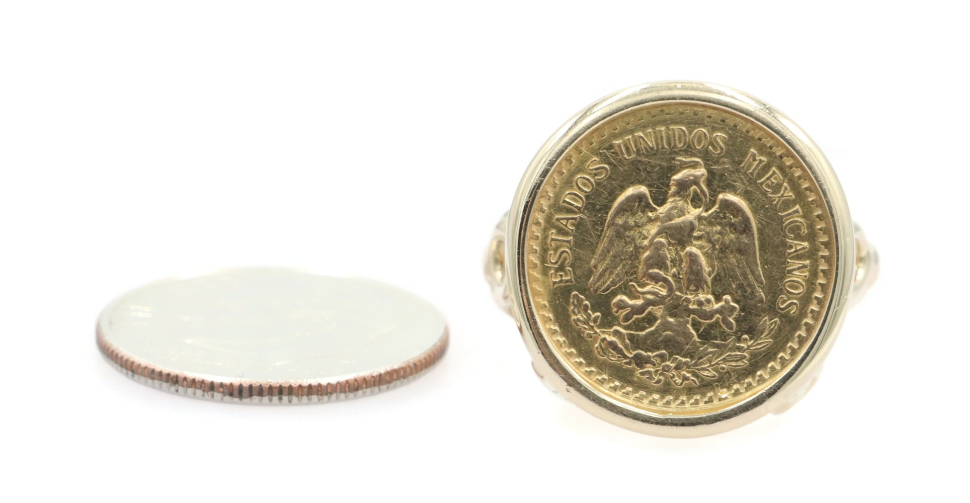 1945 Estados Unidos Mexicanos Dos y Medio Pesos Coin in 14KT Yellow Gold Ring | USA Pawn