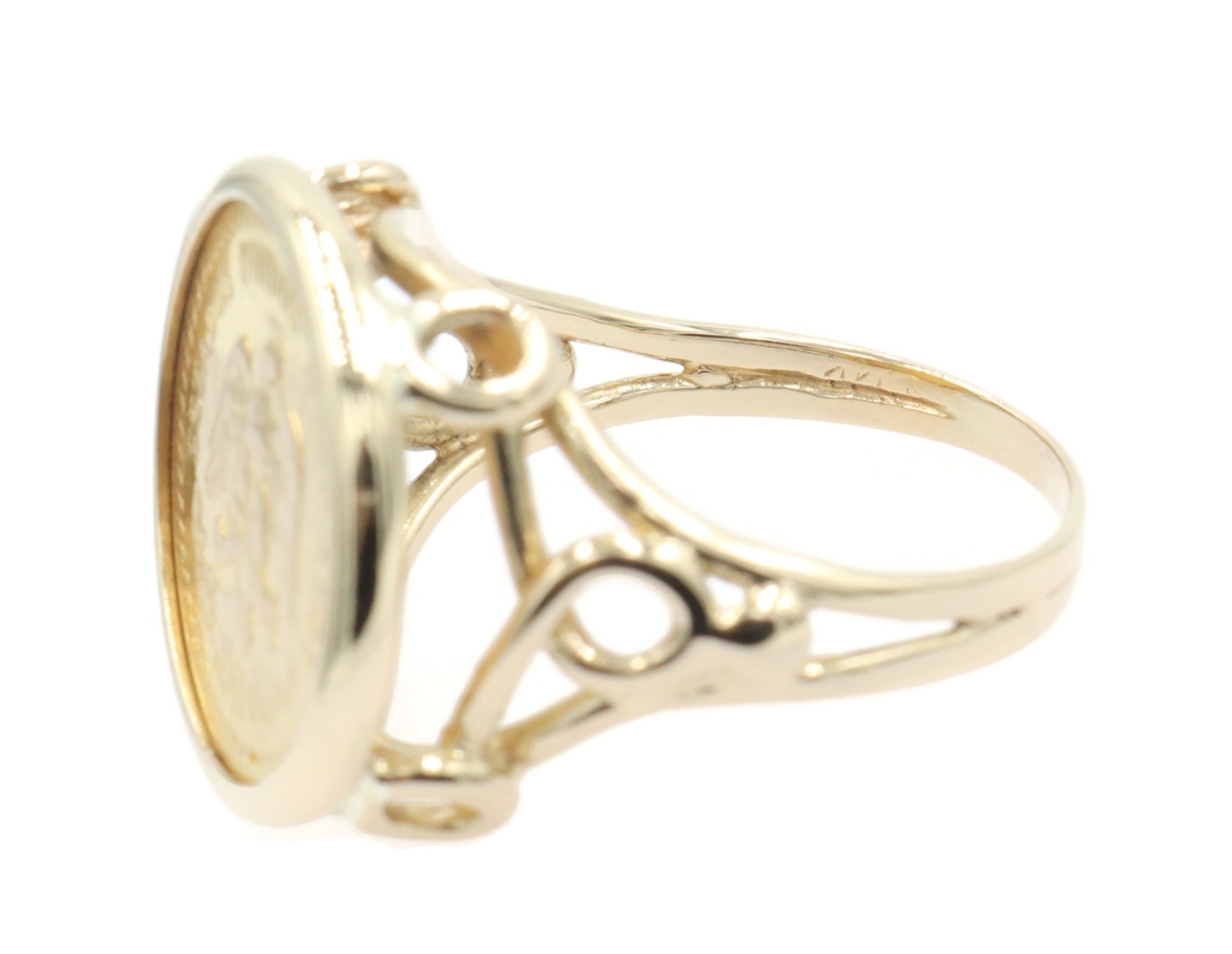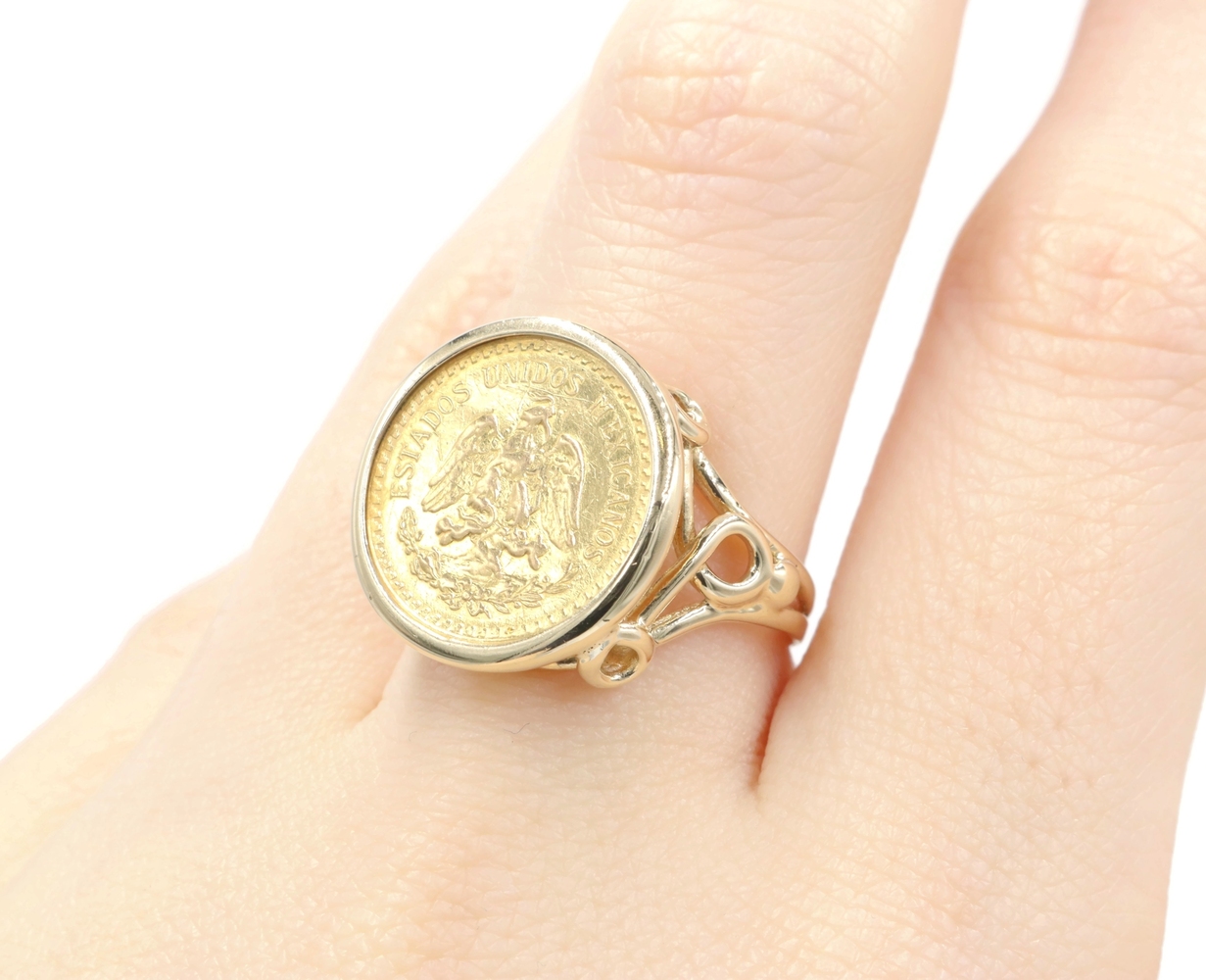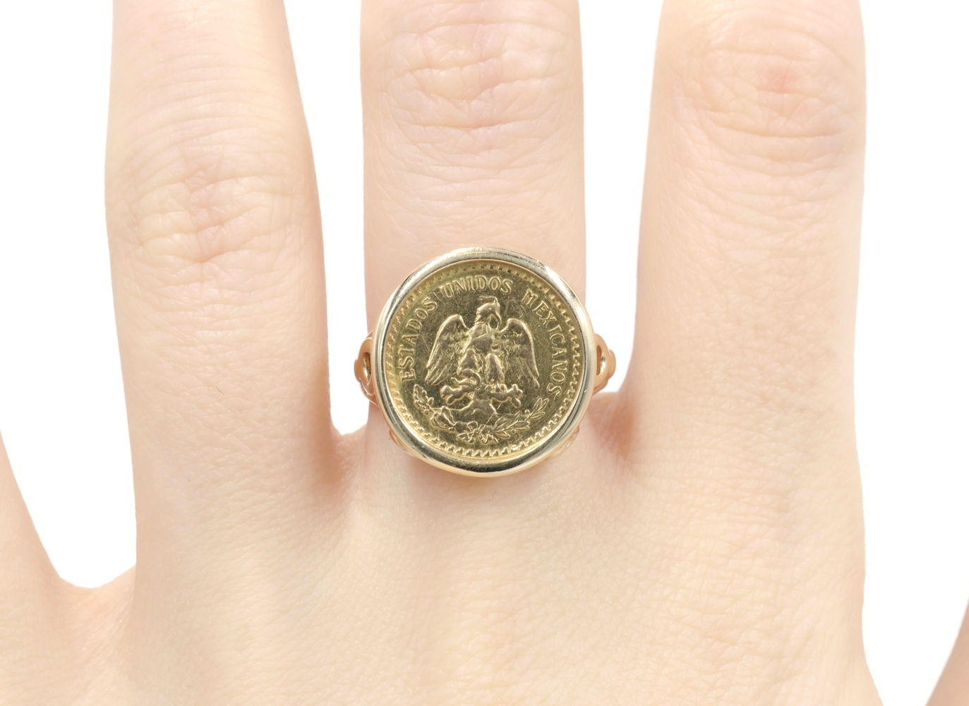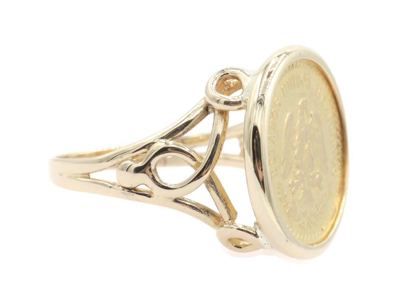 1945 Estados Unidos Mexicanos Dos y Medio Pesos Coin in 14KT Yellow Gold Ring | USA Pawn