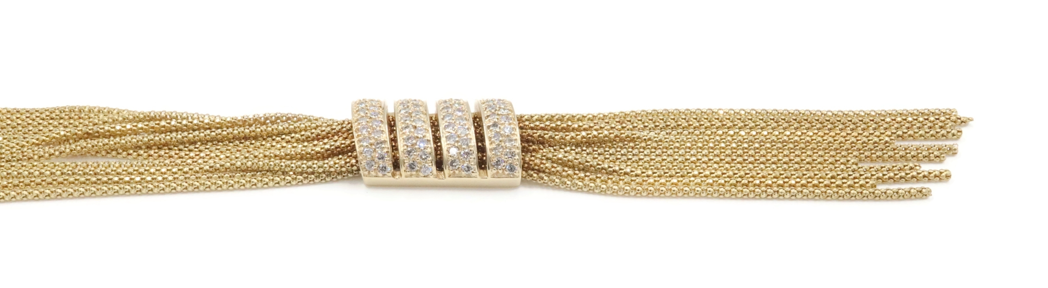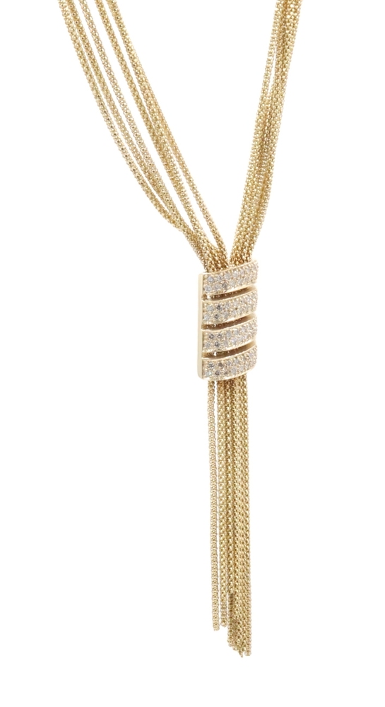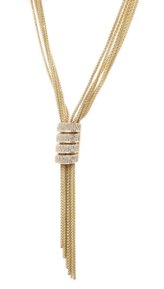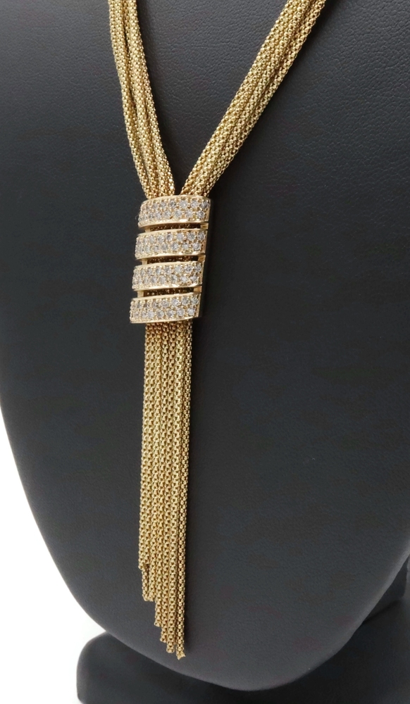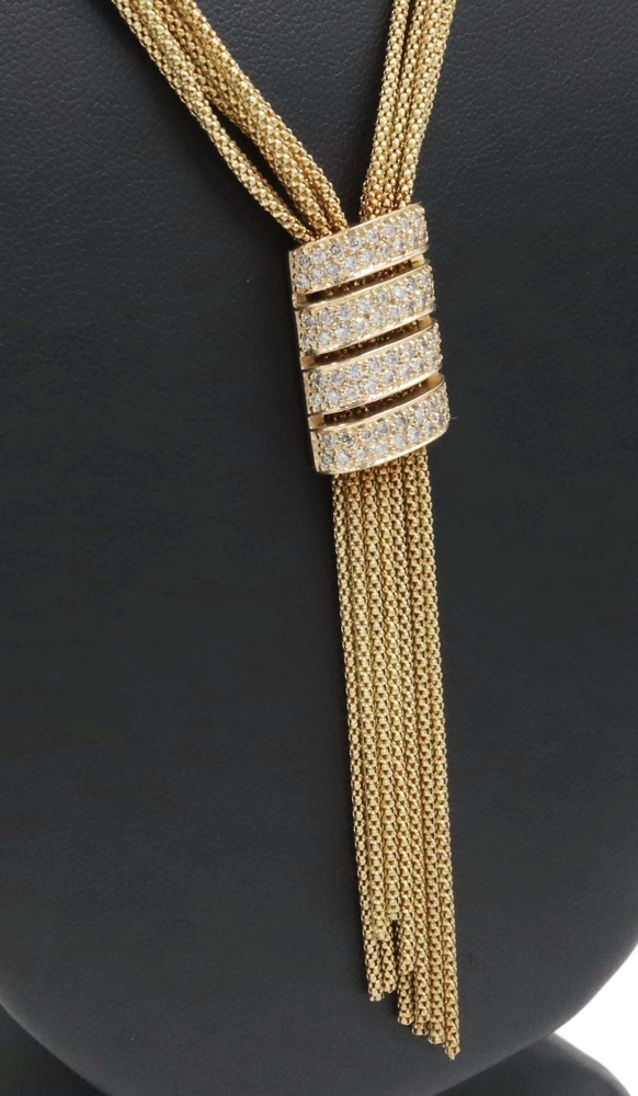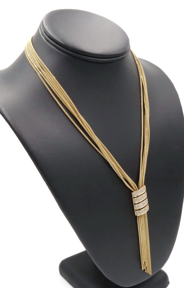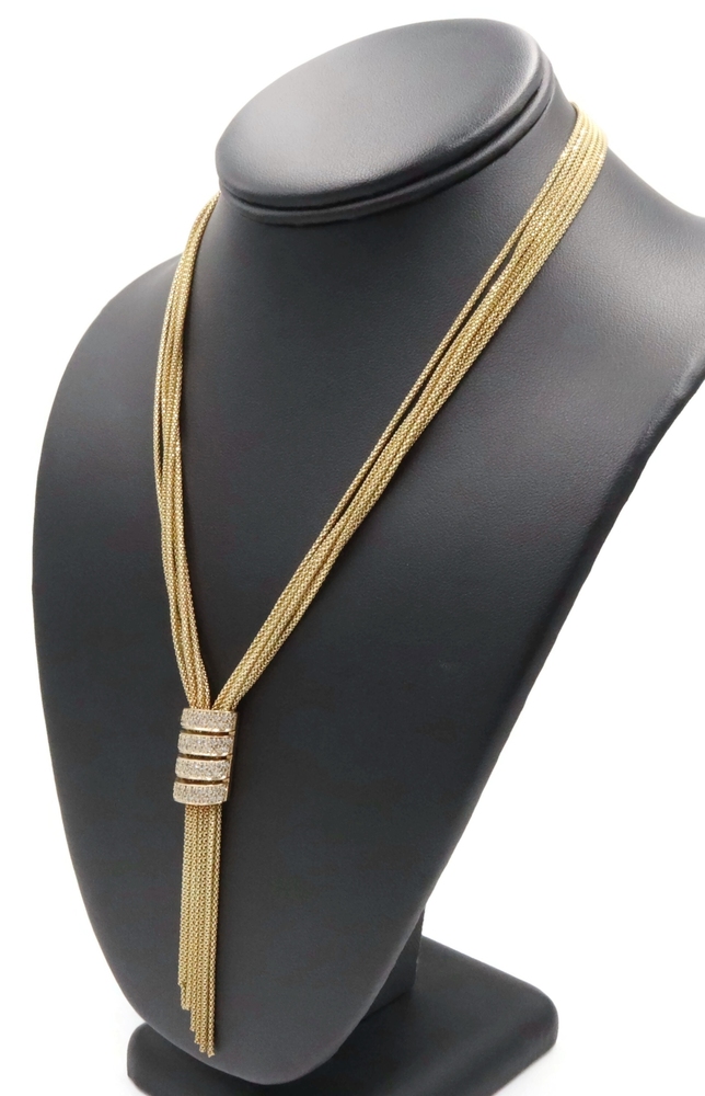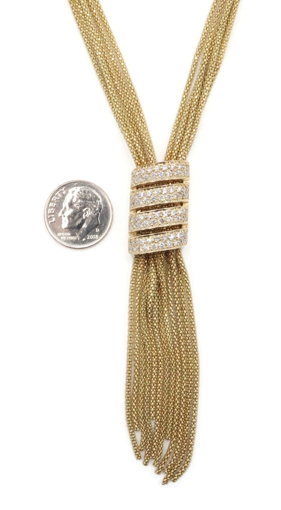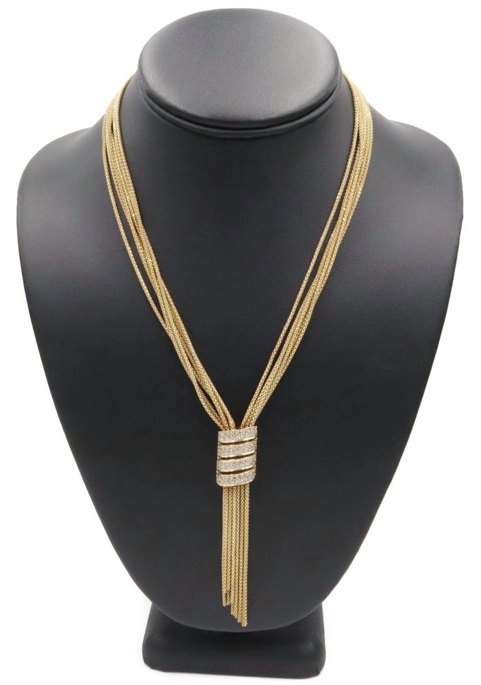 2.0 Ctw Round Diamond 14KT Yellow Gold 12-Strand 18" Lariat Tassel Necklace 32g | USA Pawn