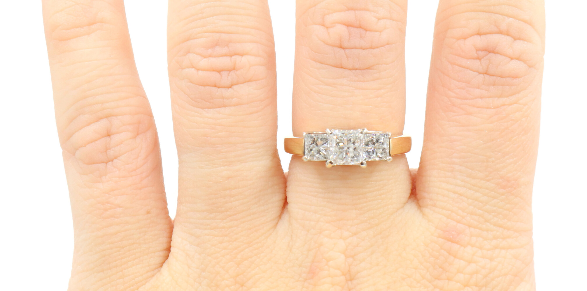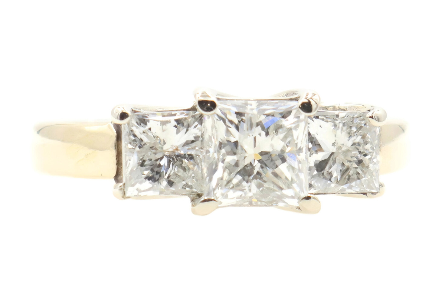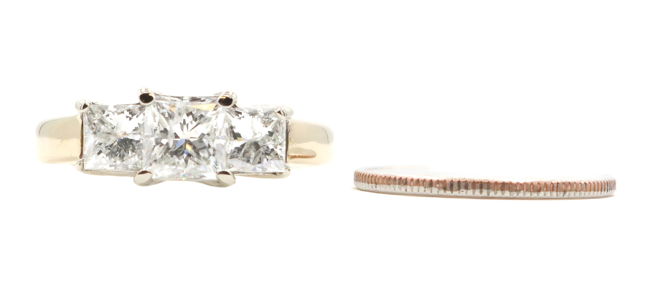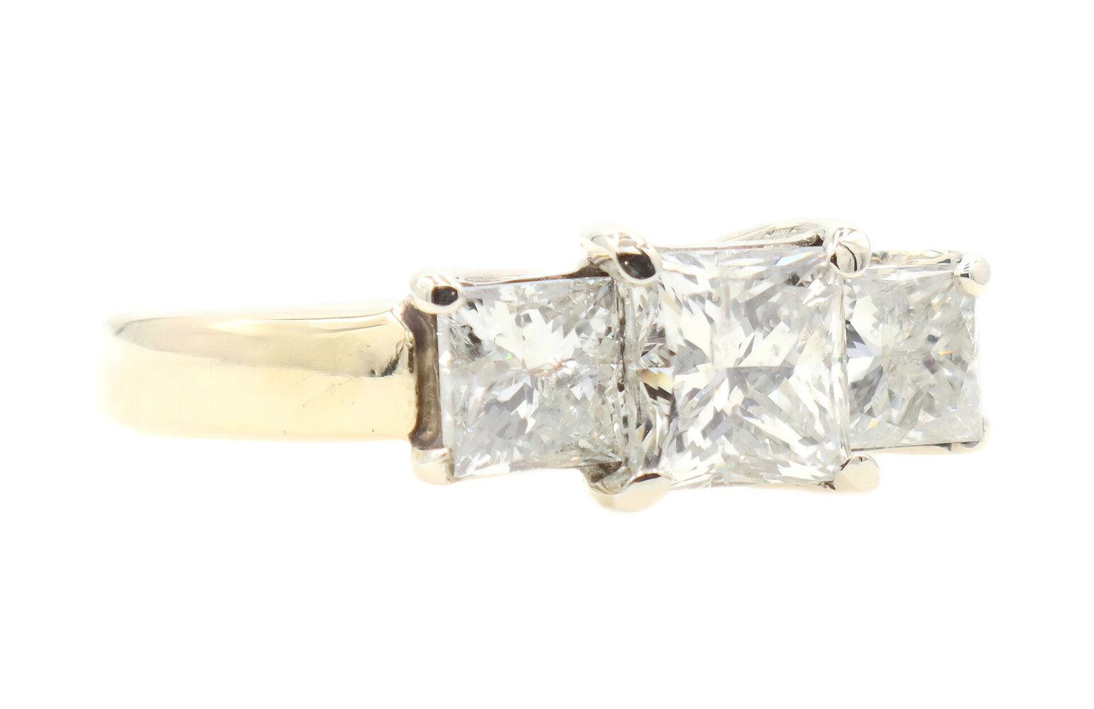 2.00 ctw Princess Cut Natural Diamond 14KT Yellow Gold Past Present Future Ring | USA Pawn