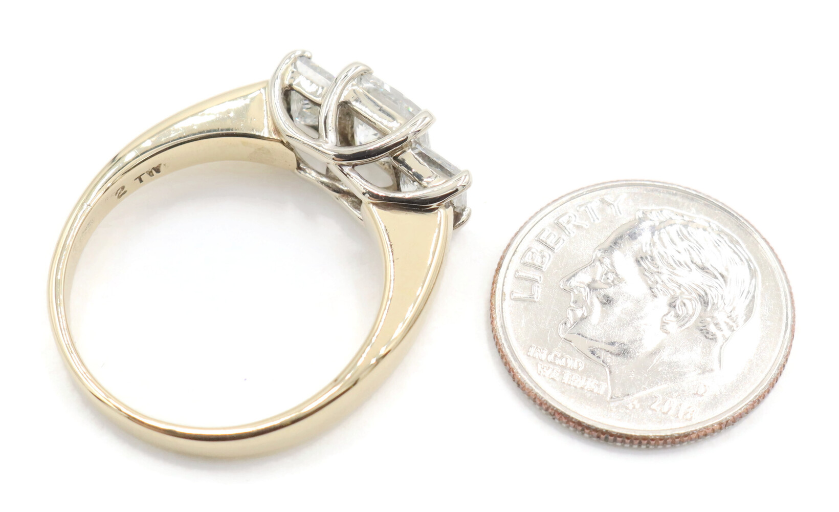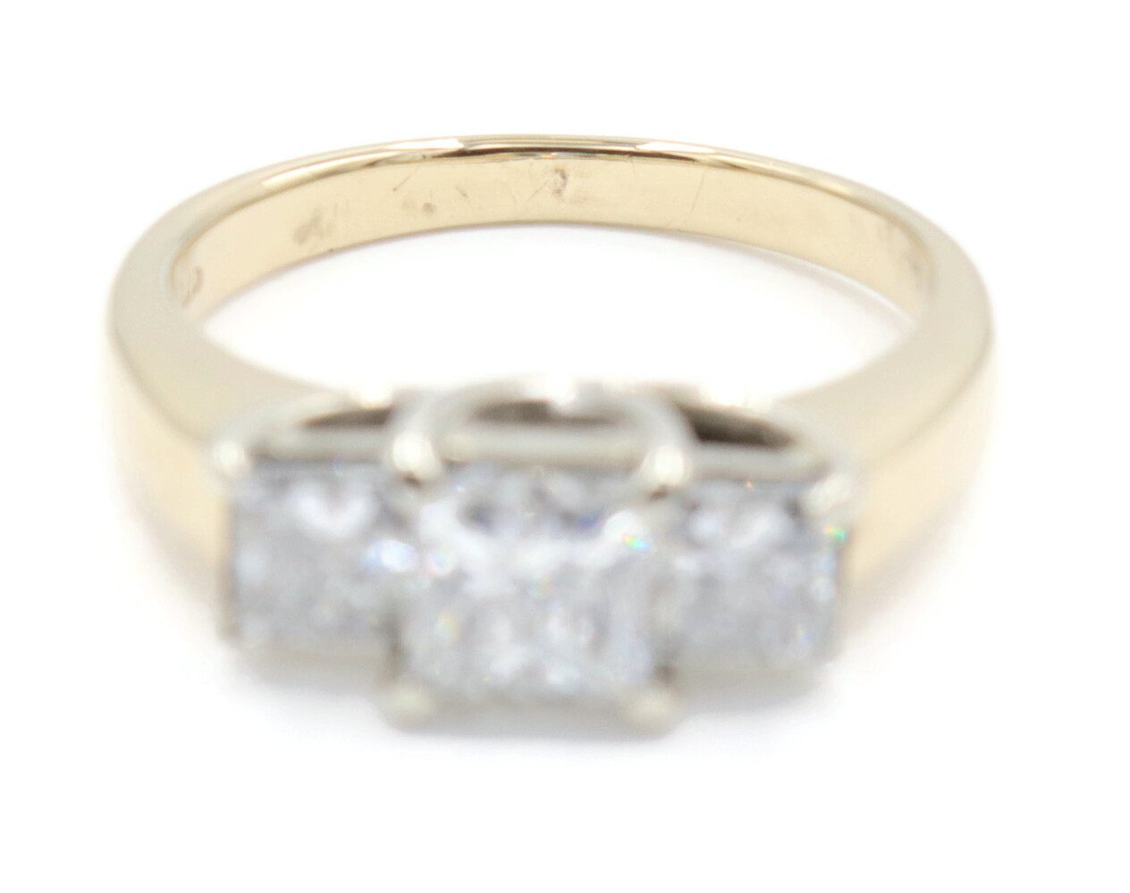 2.00 ctw Princess Cut Natural Diamond 14KT Yellow Gold Past Present Future Ring. This ring is a size 8.