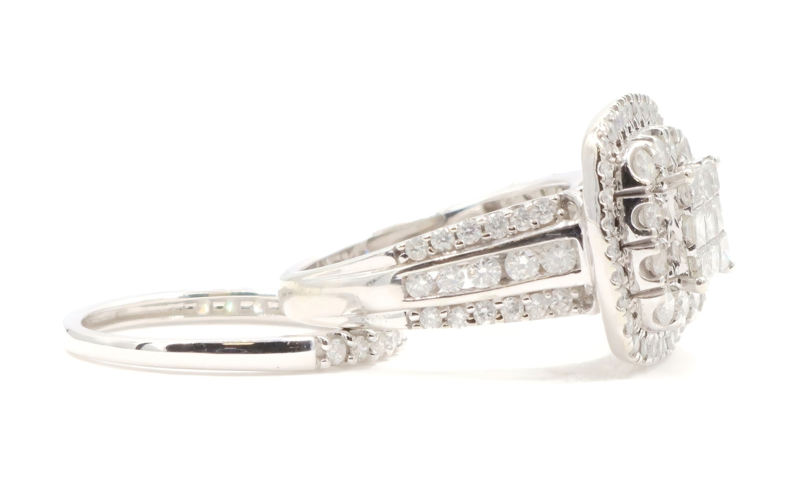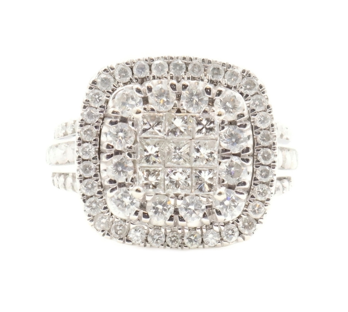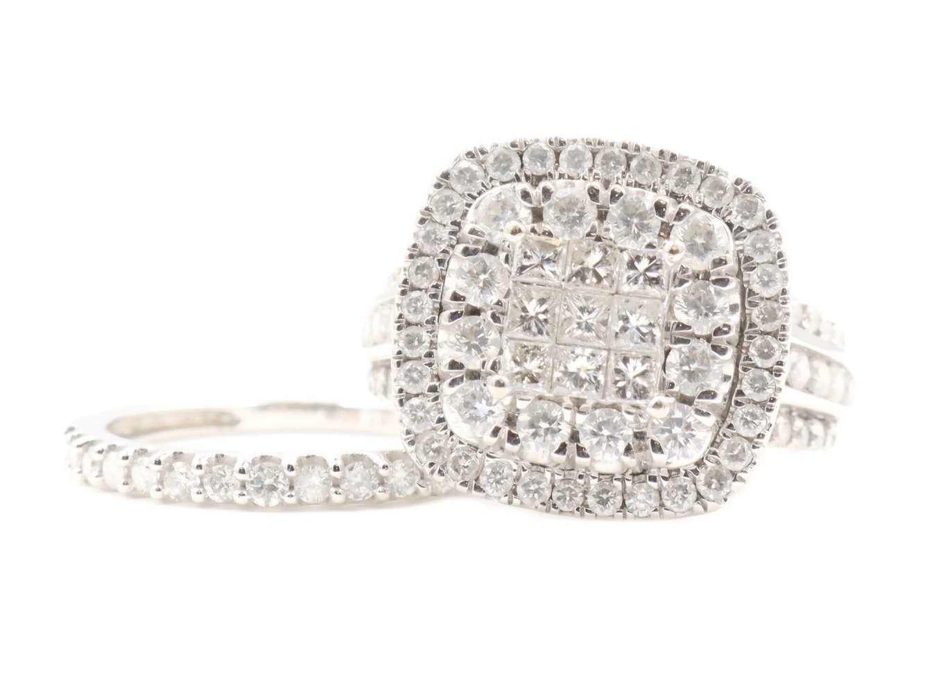 2.13 Ctw Princess & Round Diamond Cushion Halo 10KT White Gold Wedding Ring Set | USA Pawn
