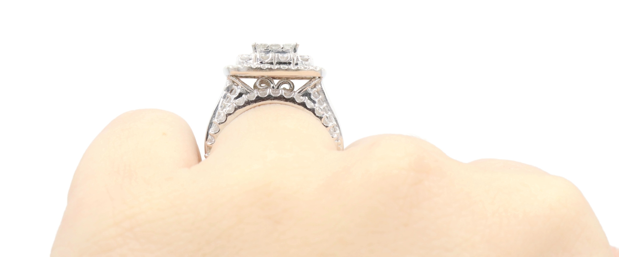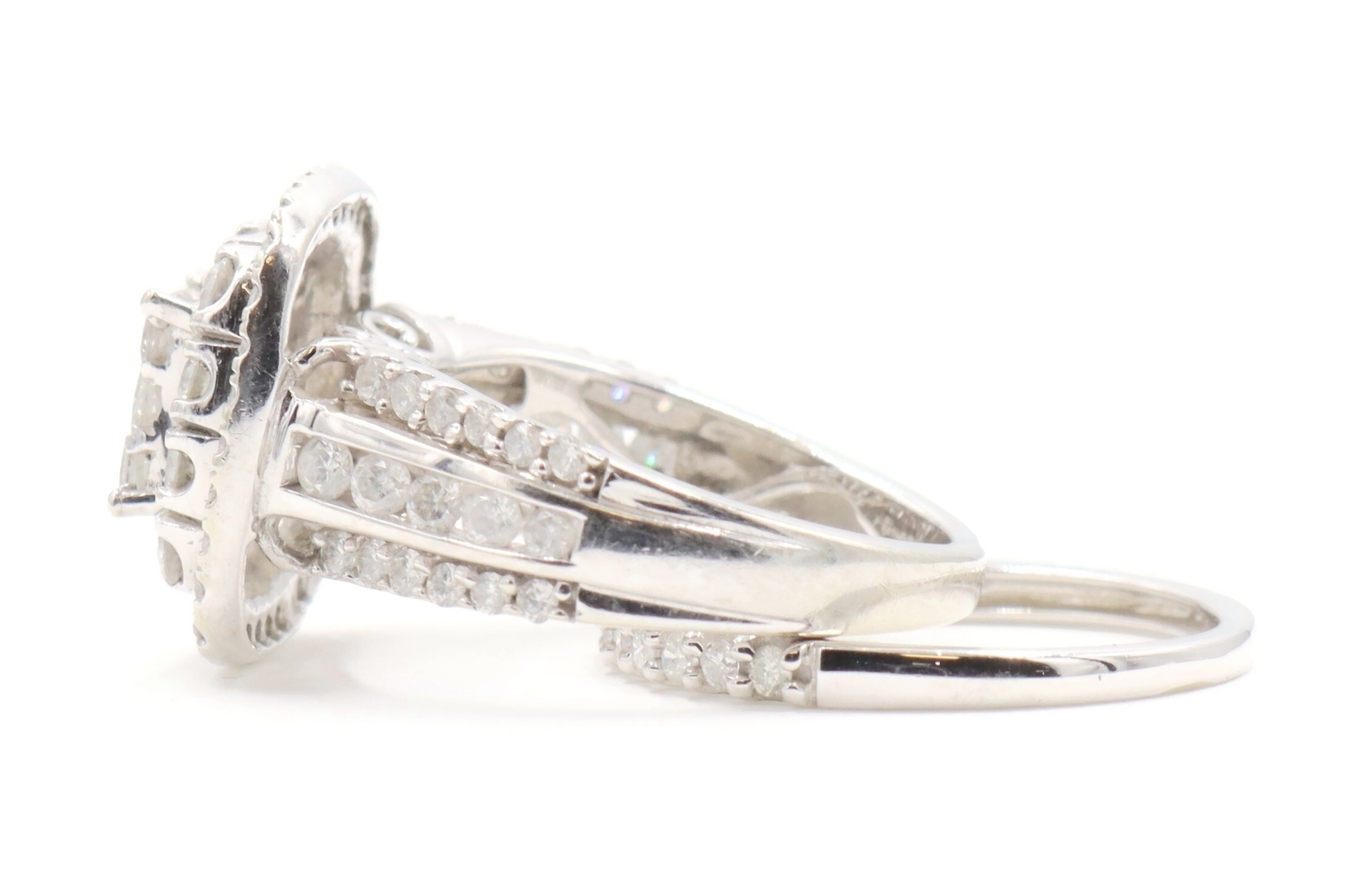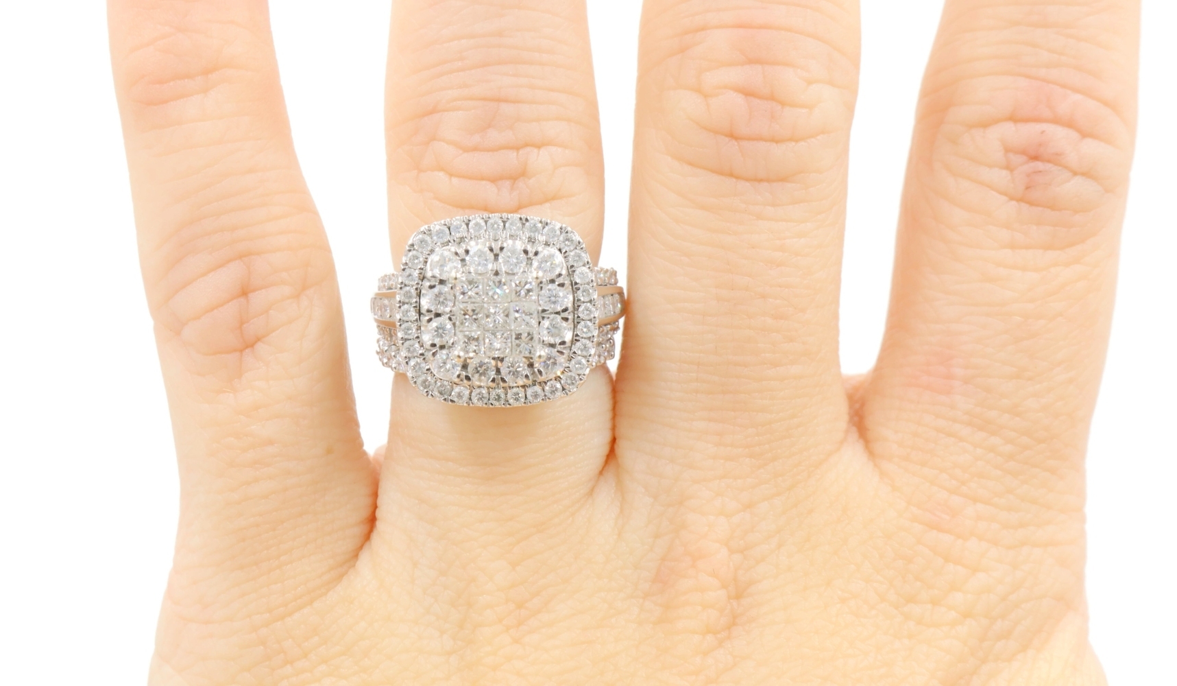 2.13 Ctw Princess & Round Diamond Cushion Halo 10KT White Gold Wedding Ring Set | USA Pawn