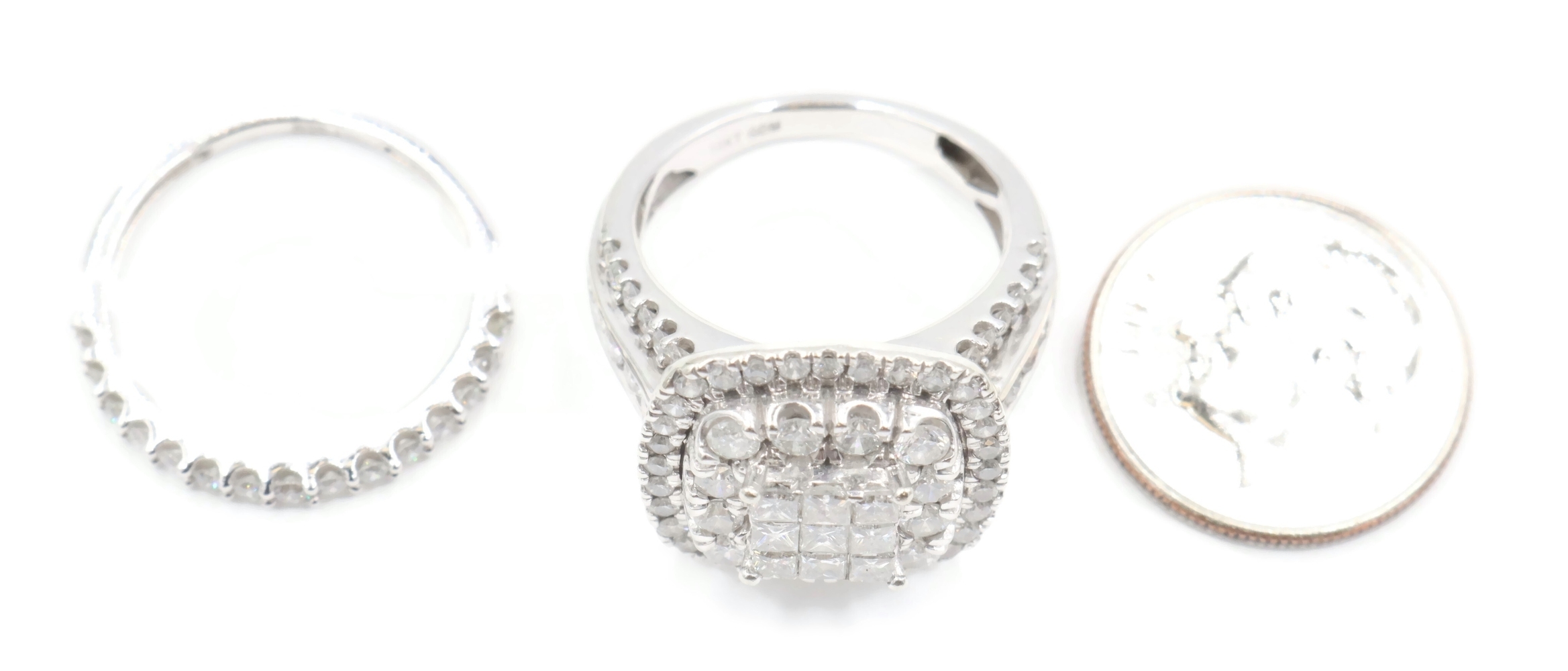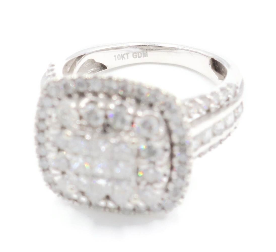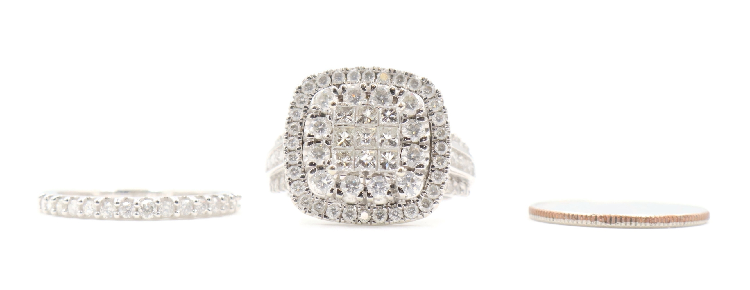 2.13 Ctw Princess & Round Diamond Cushion Halo 10KT White Gold Wedding Ring Set. Both the engagement ring and the wedding band are a size 6.