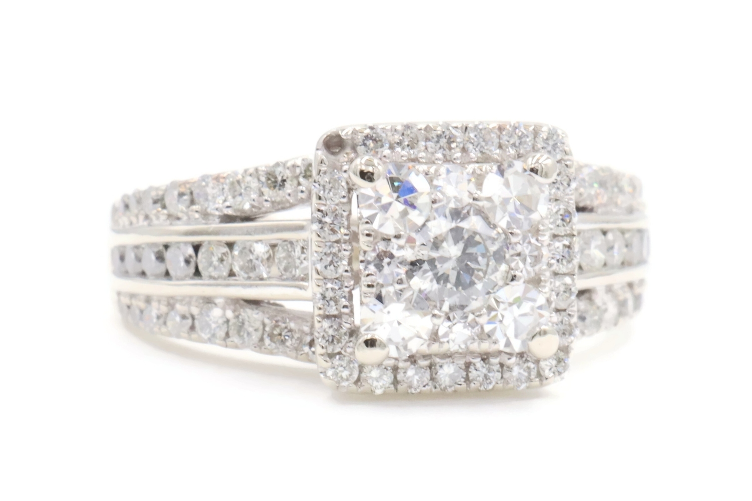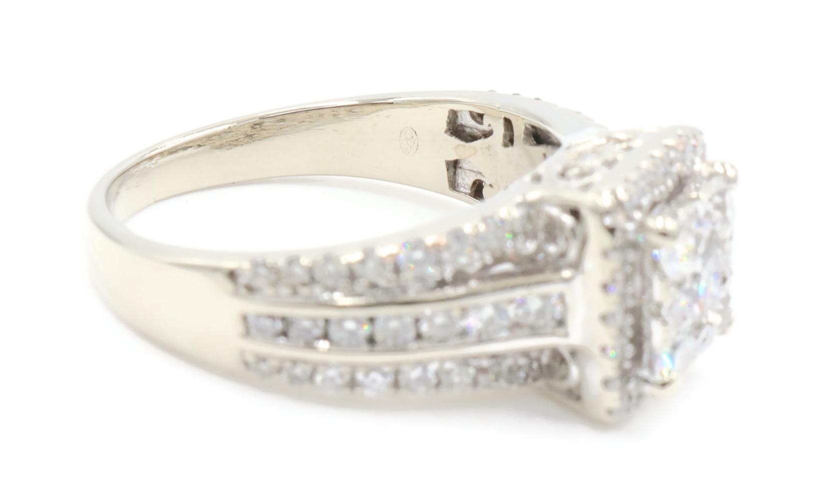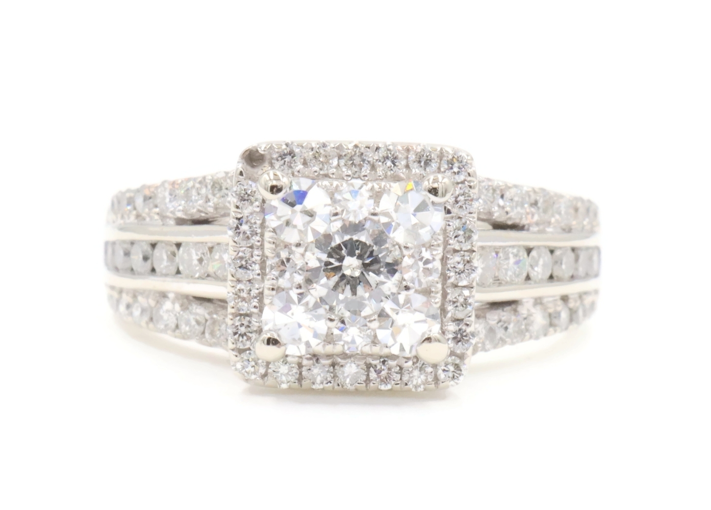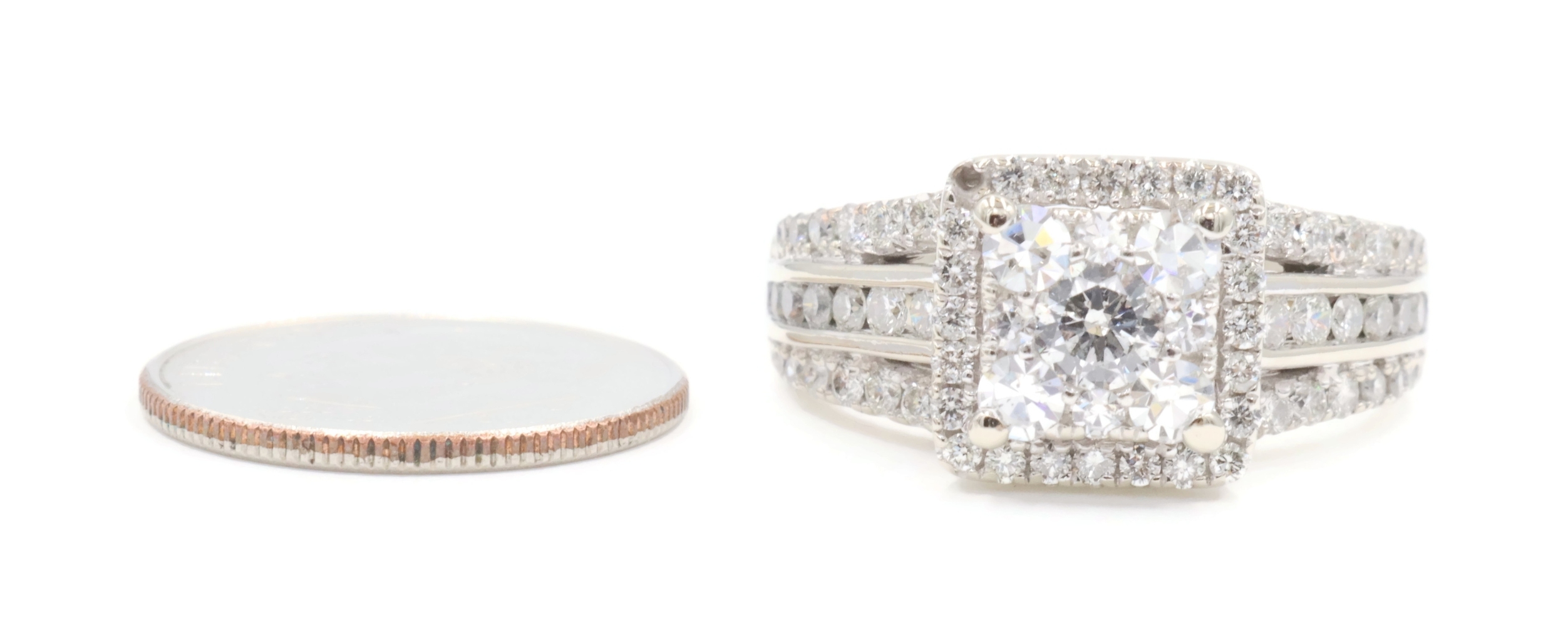 2.18 Ctw Round Diamond 14KT White Gold Square Cluster Halo Engagement Ring 6.46g | USA Pawn
