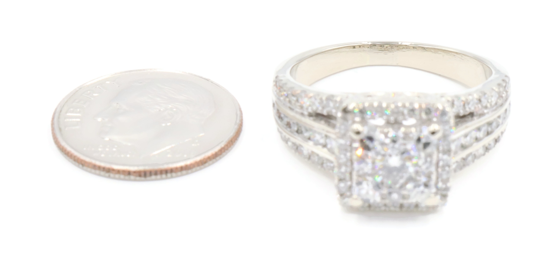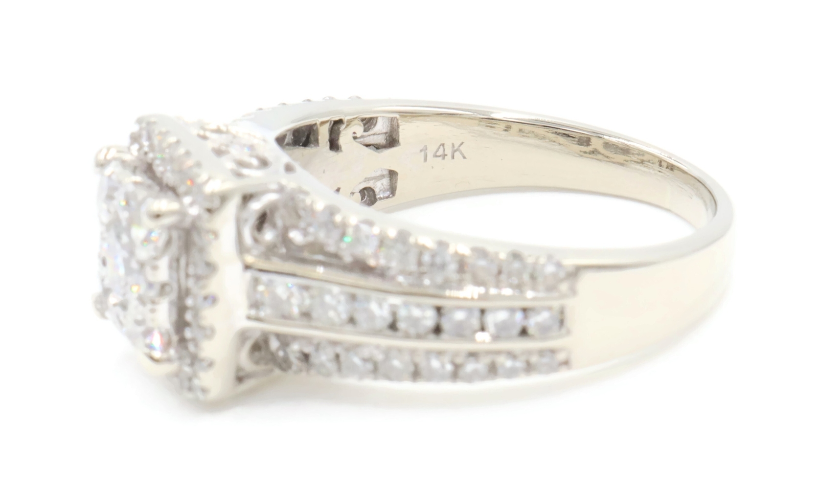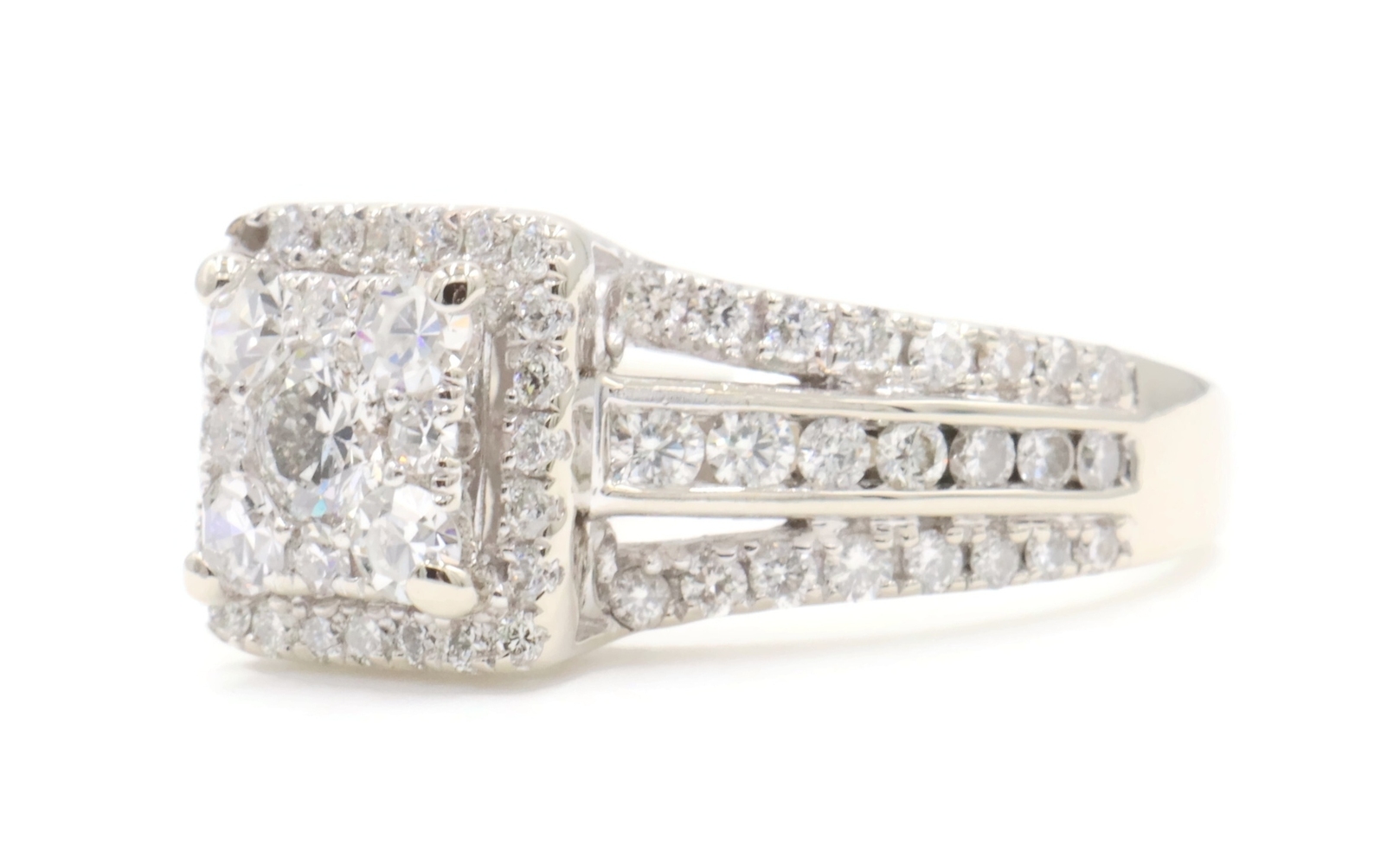 2.18 Ctw Round Diamond 14KT White Gold Square Cluster Halo Engagement Ring 6.46g | USA Pawn