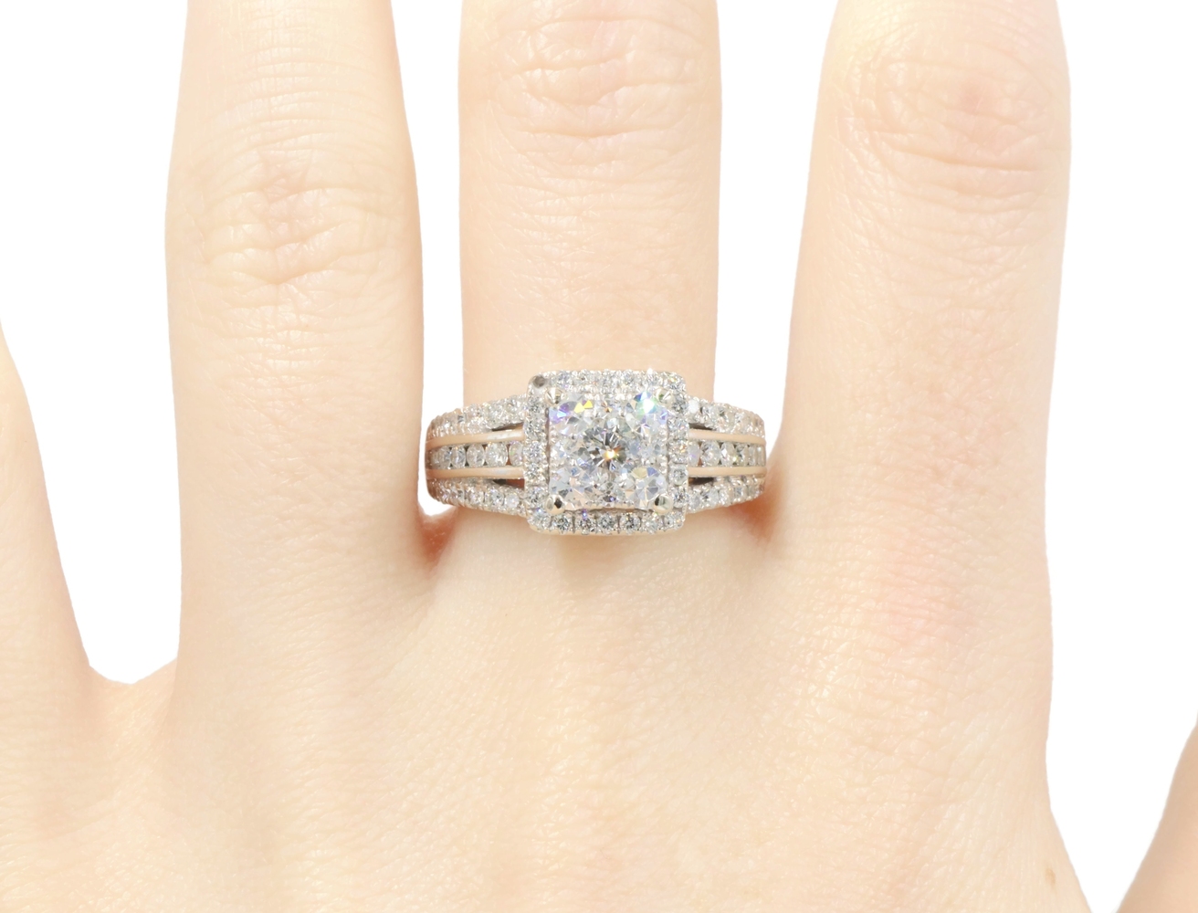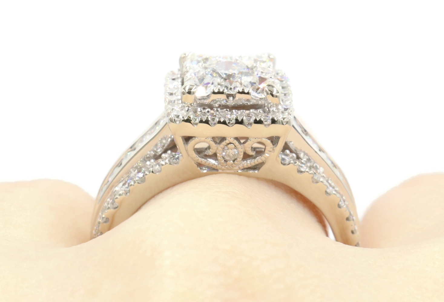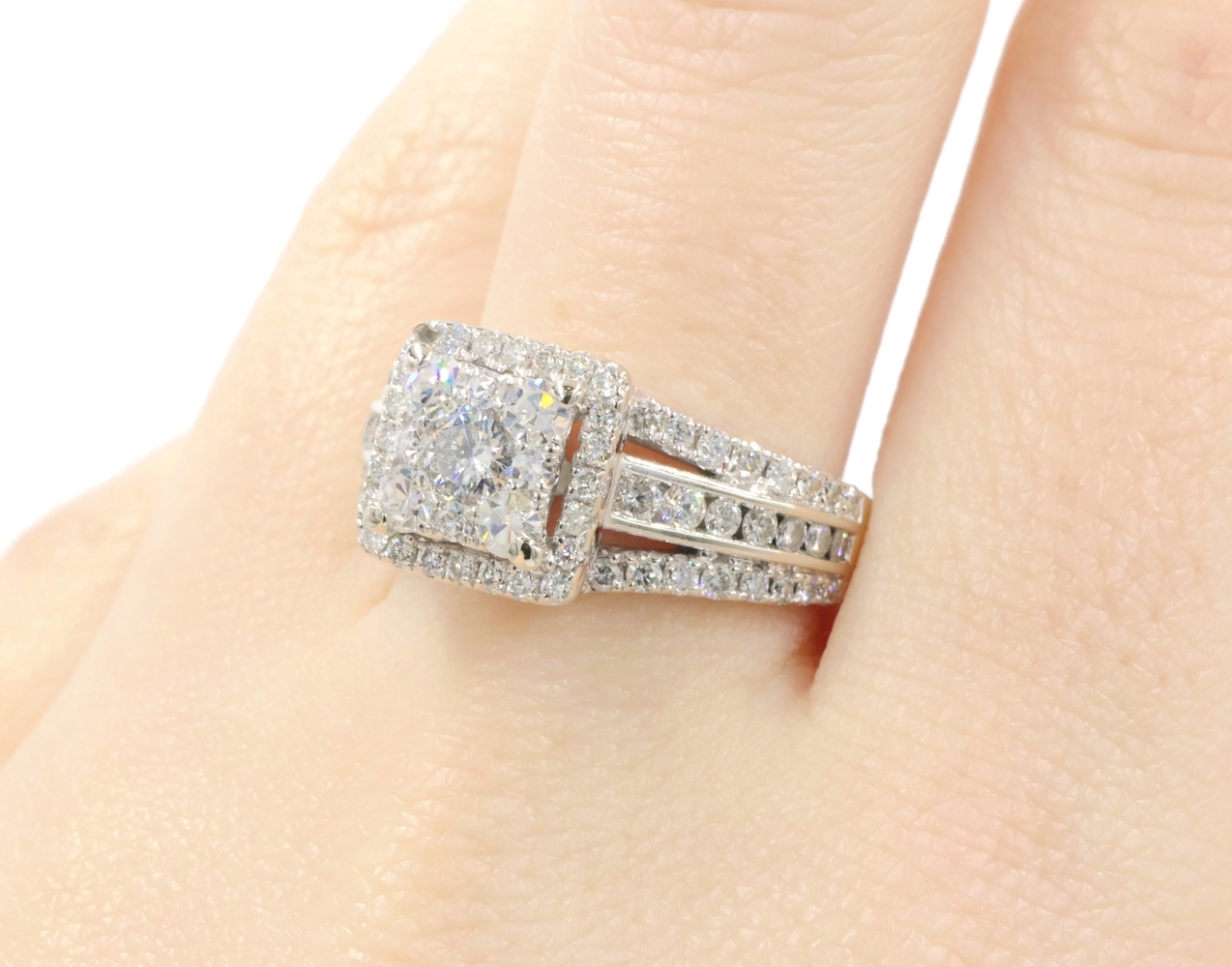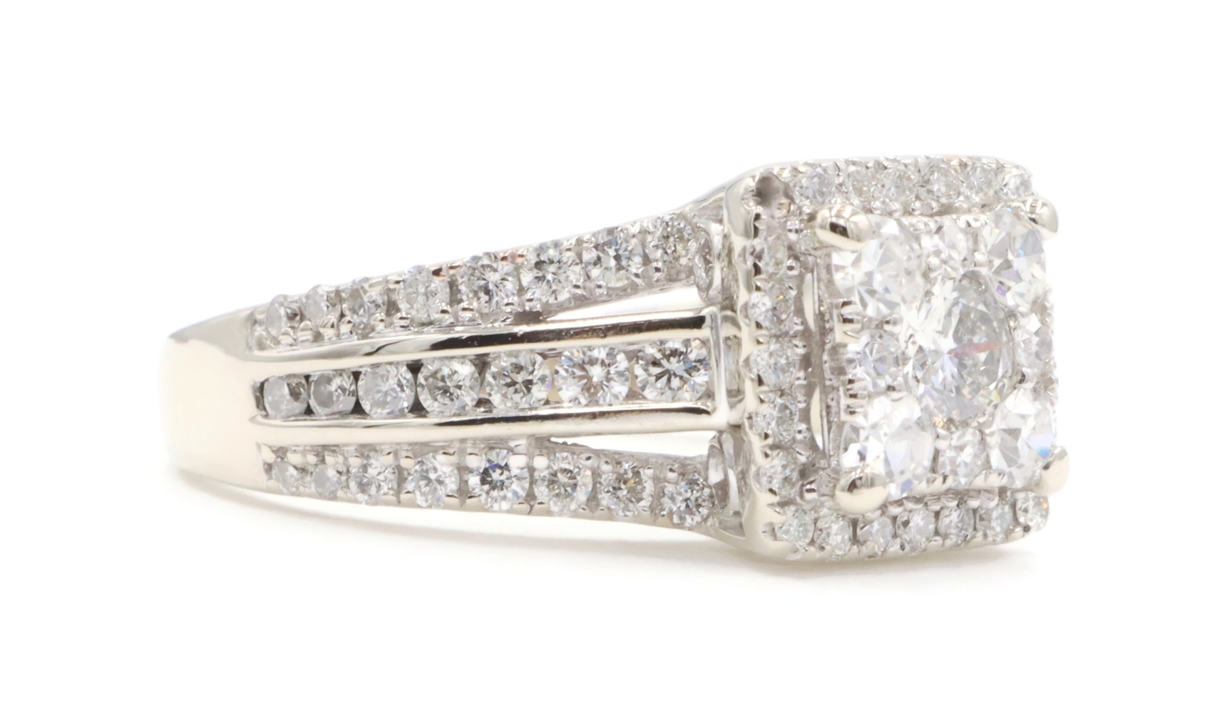 2.18 Ctw Round Diamond 14KT White Gold Square Cluster Halo Engagement Ring 6.46g | USA Pawn