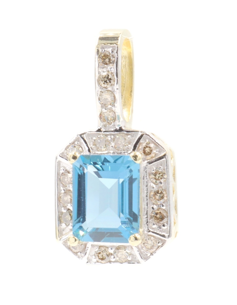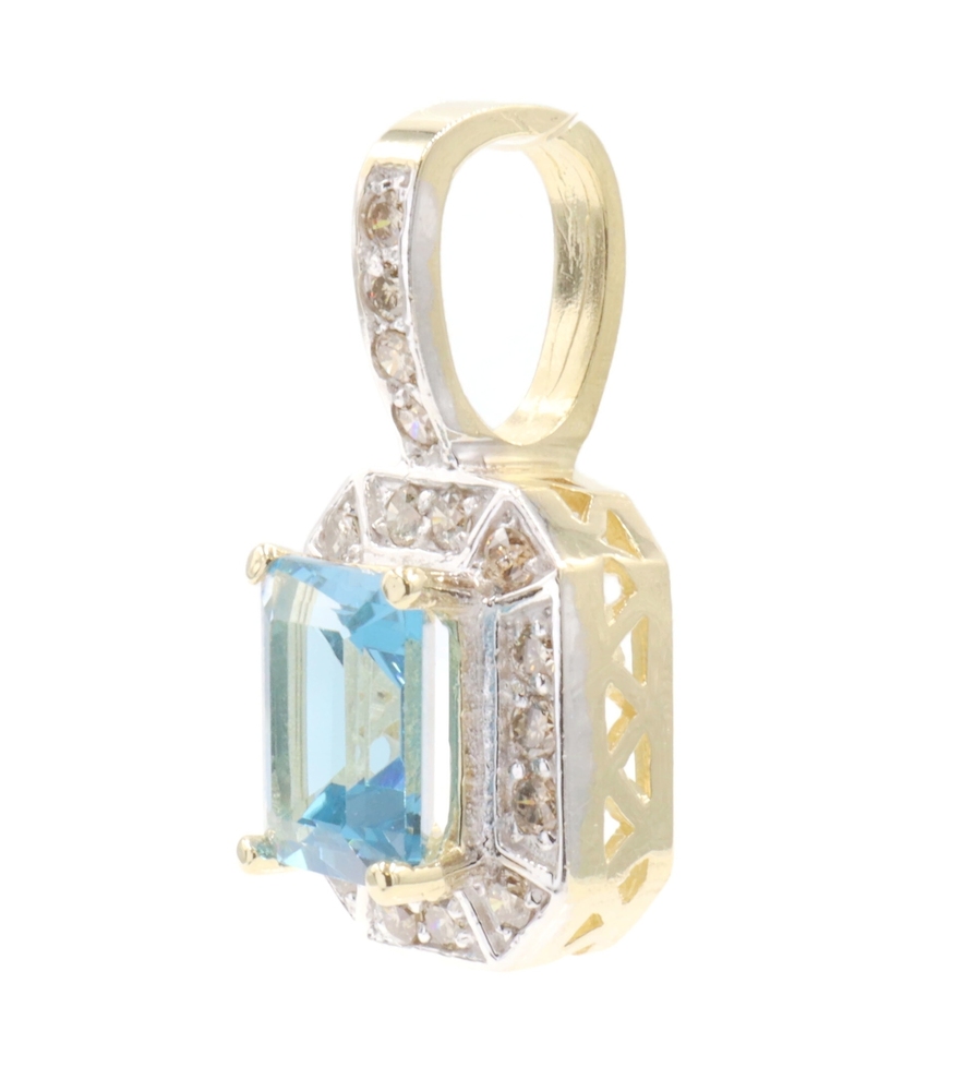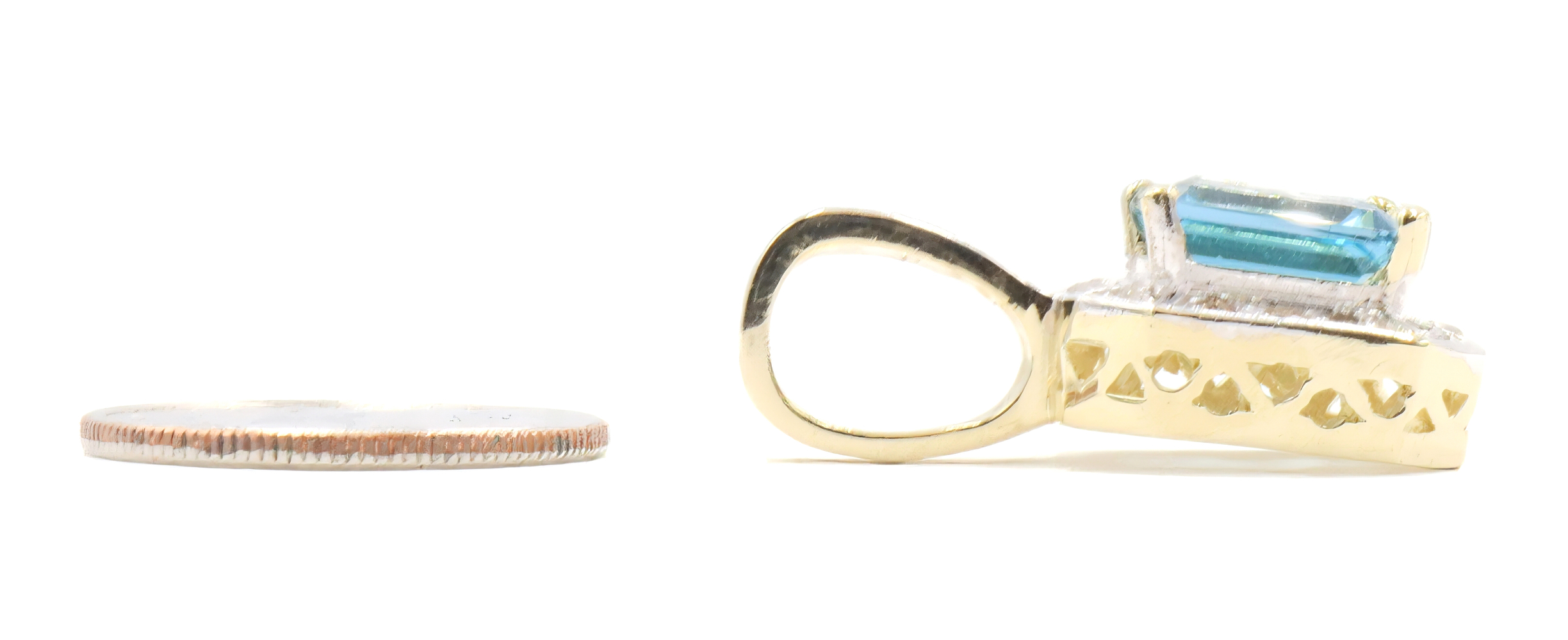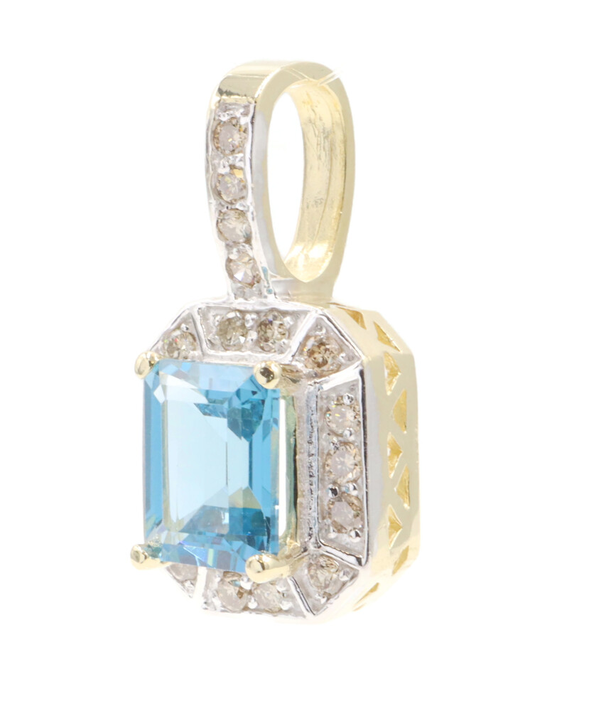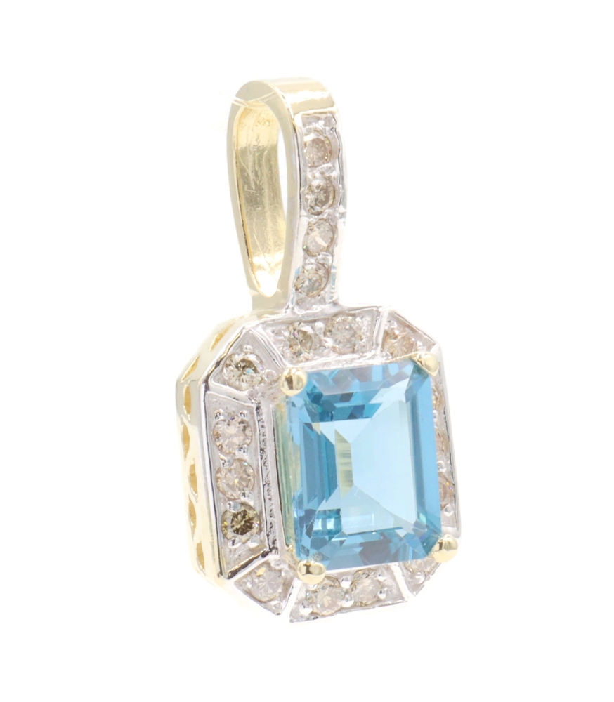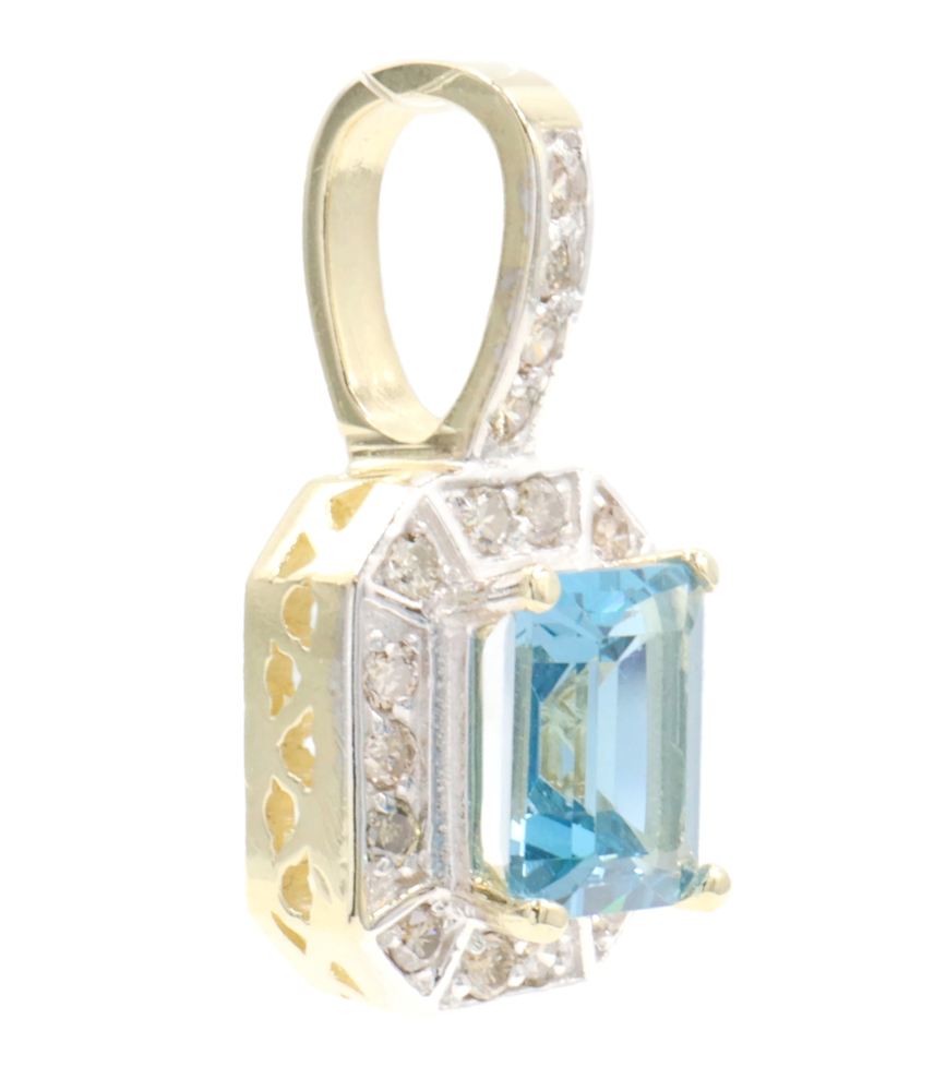 2.25 ctw Emerald Cut Blue Topaz & 0.45 ctw Round Diamond 14KT Gold Pendant | USA Pawn