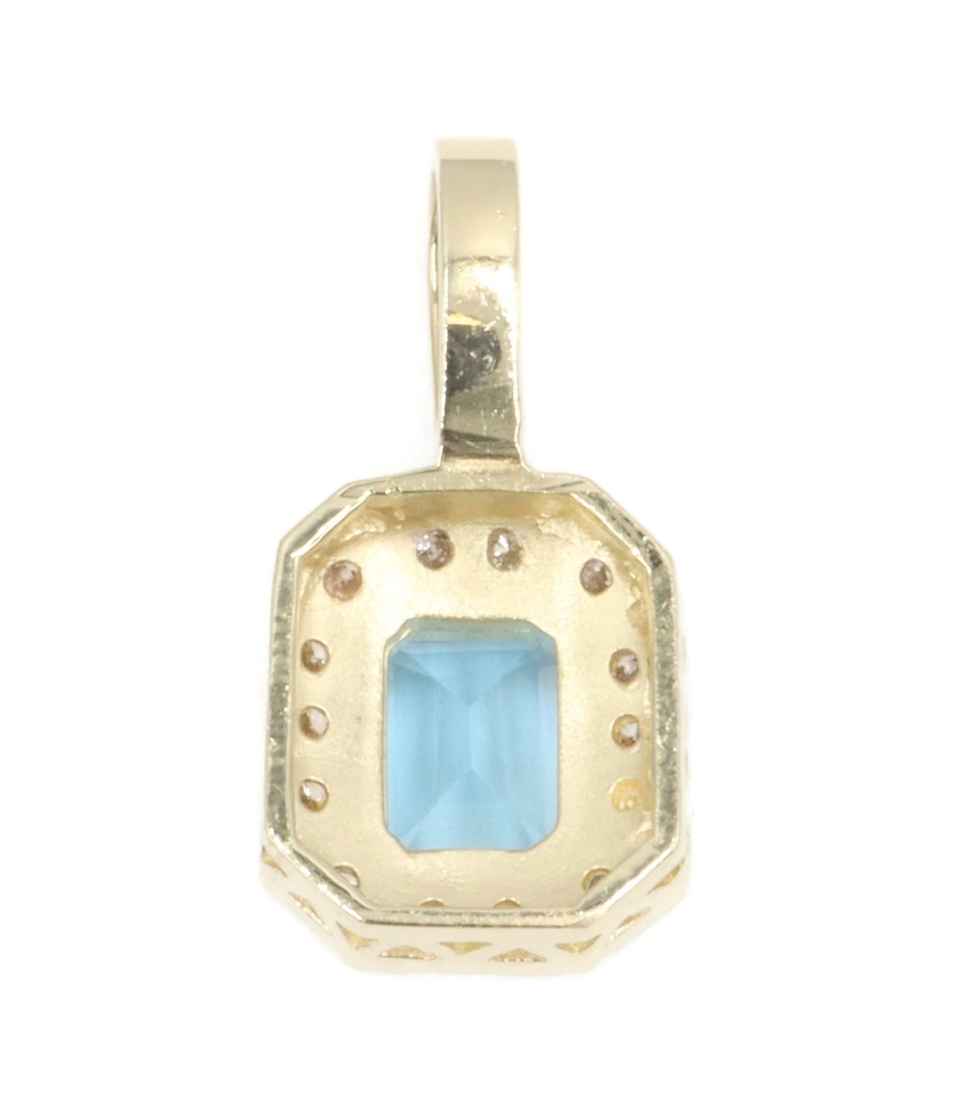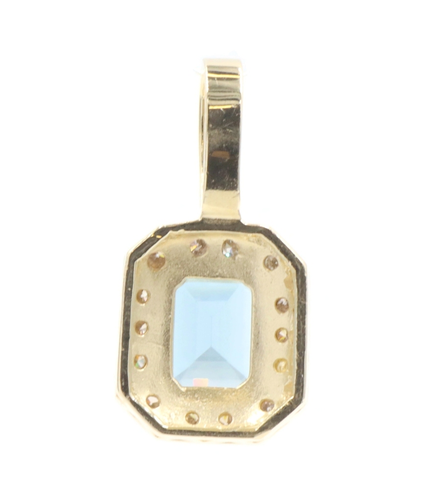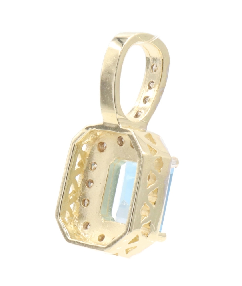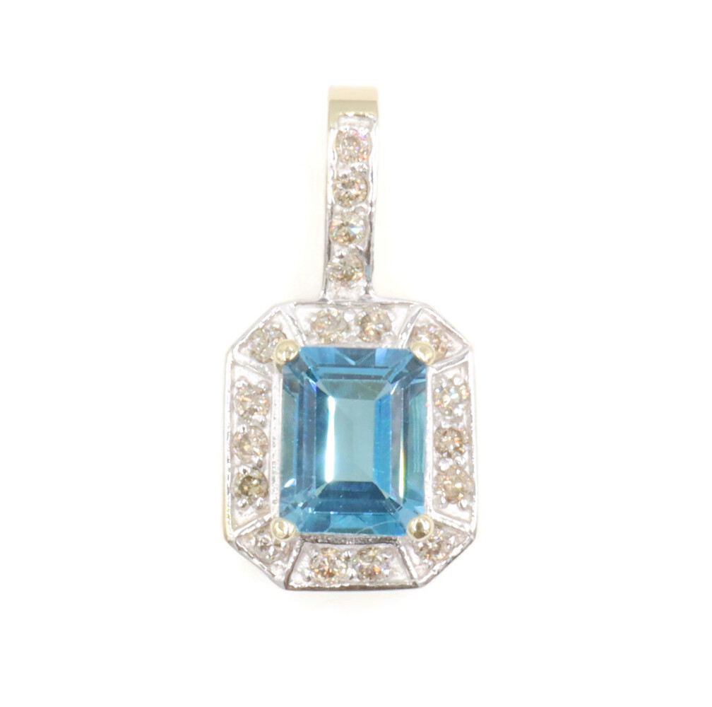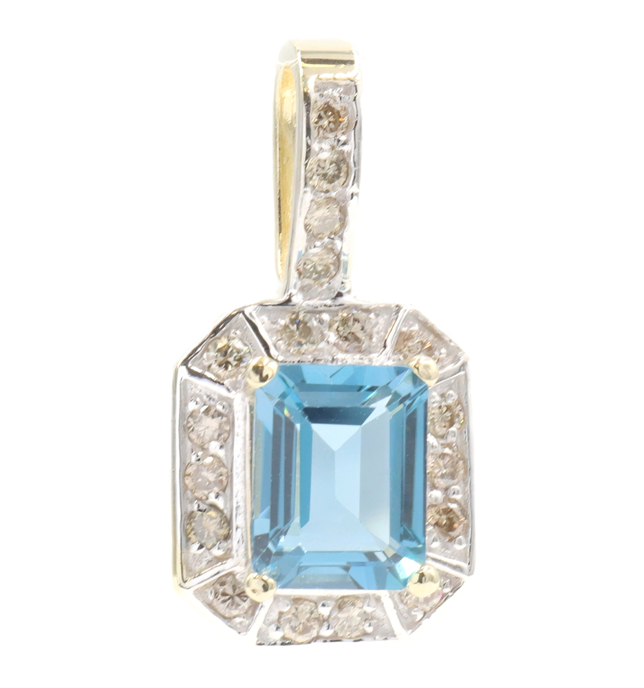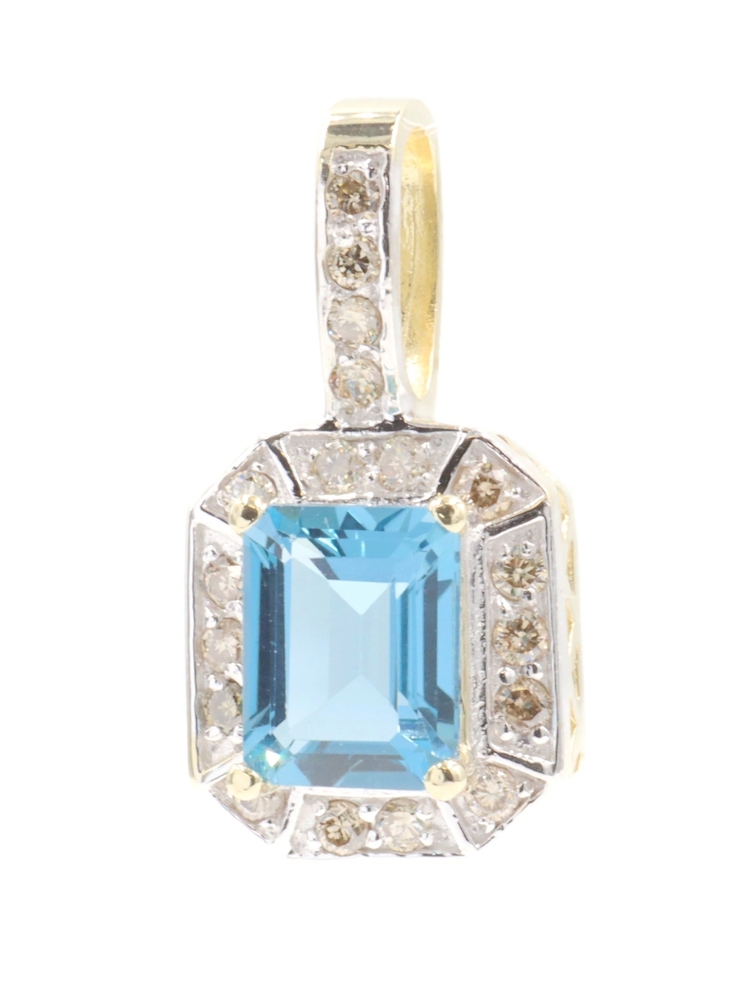 2.25 ctw Emerald Cut Blue Topaz & 0.45 ctw Round Diamond 14KT Gold Pendant | USA Pawn