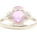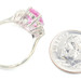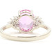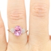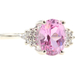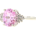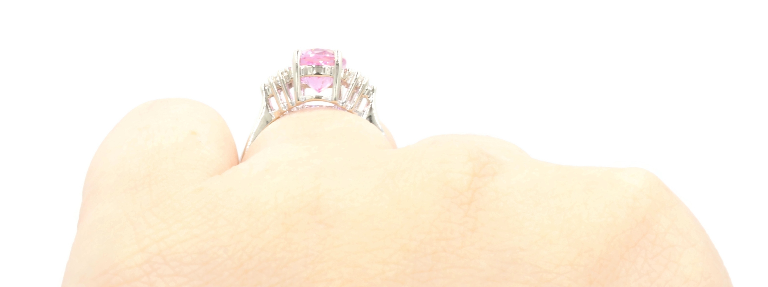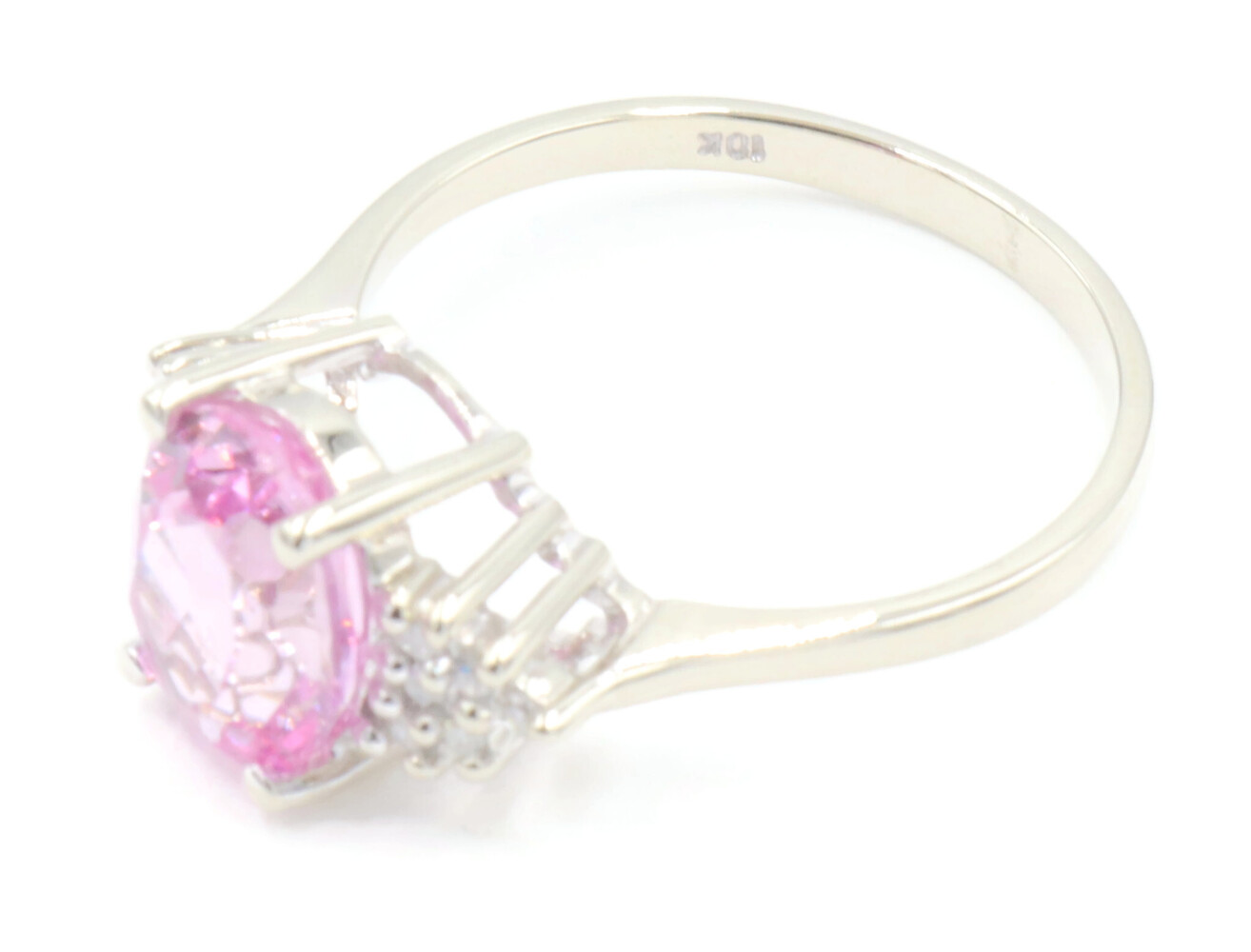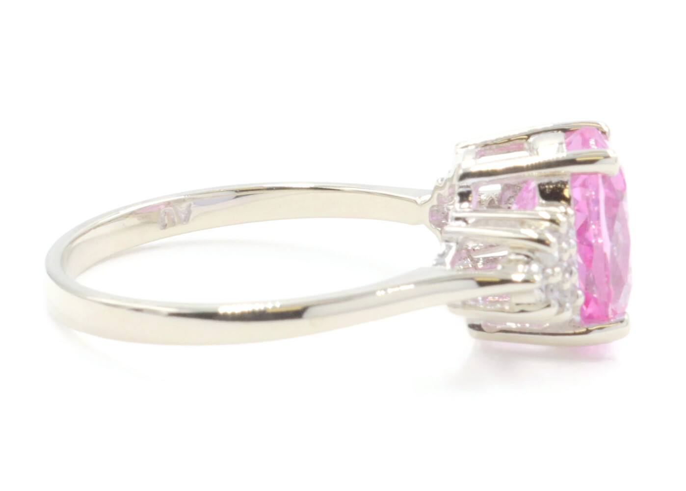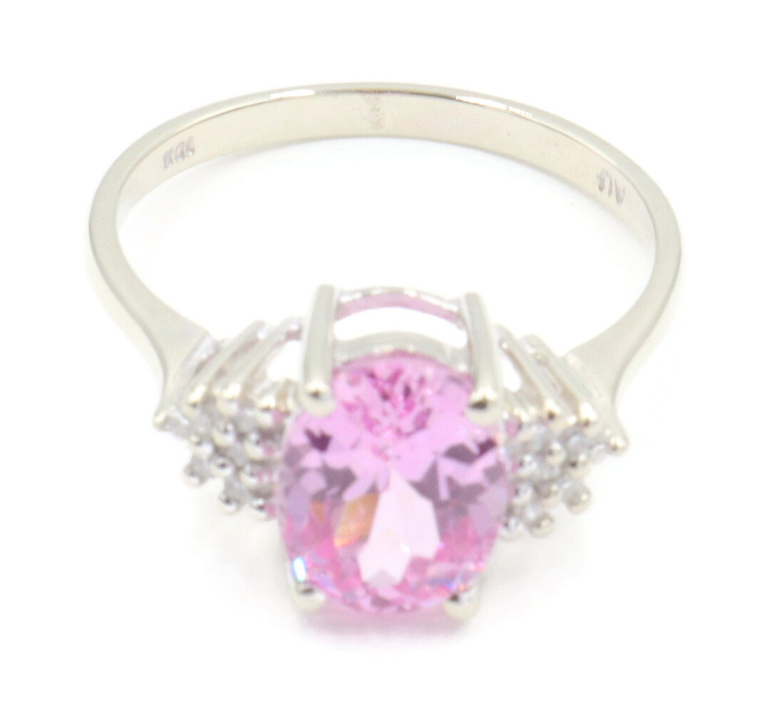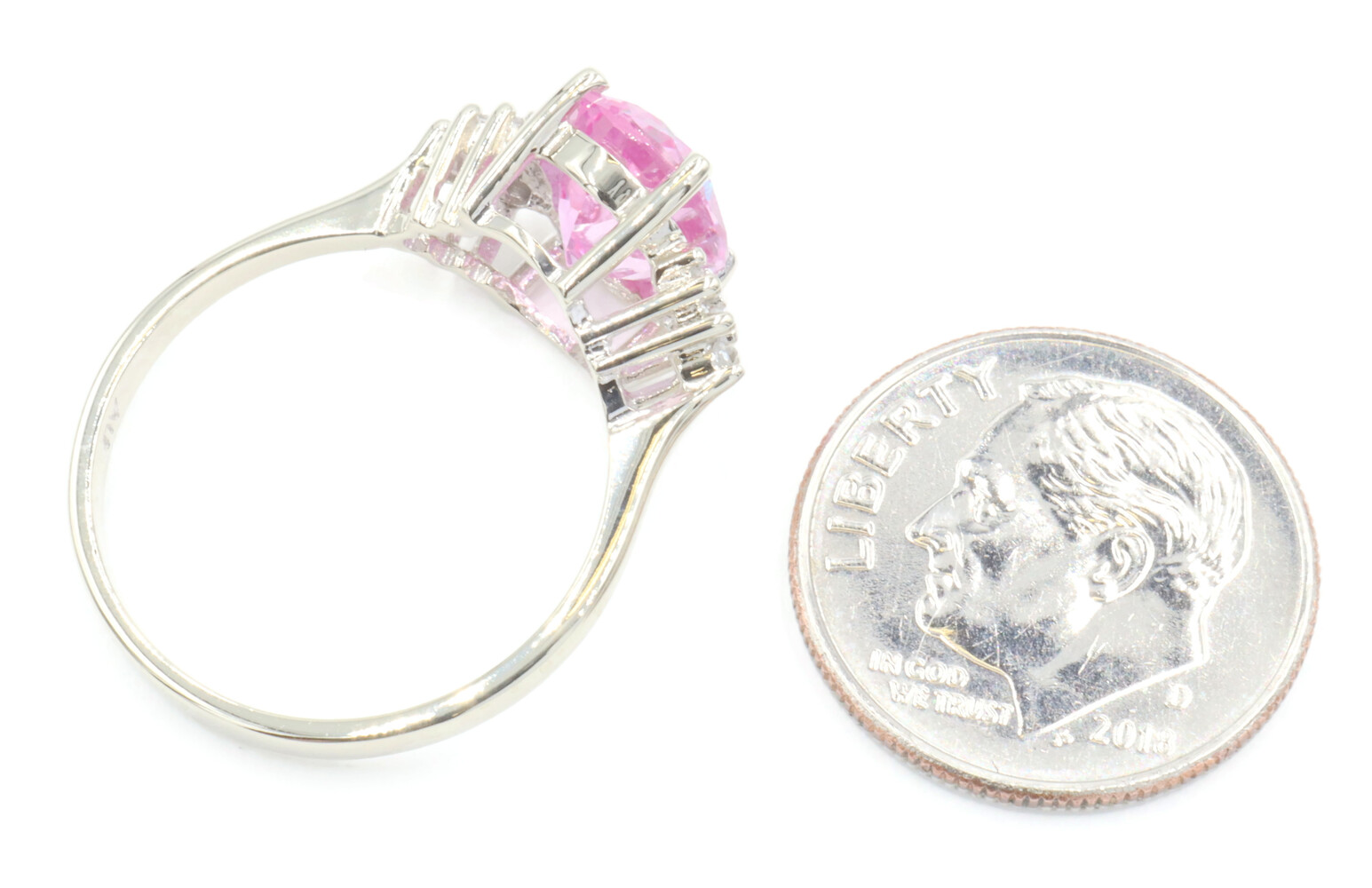 2.50 ctw Oval Pink Lab Created Sapphire & 0.10 ctw Diamond 10KT White Gold Ring. This ring is a size 7.
