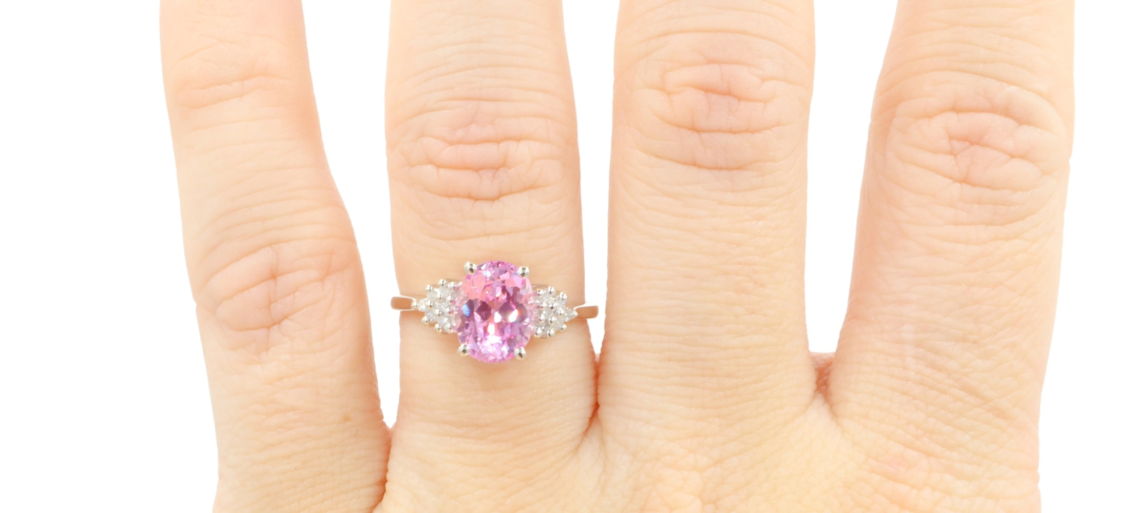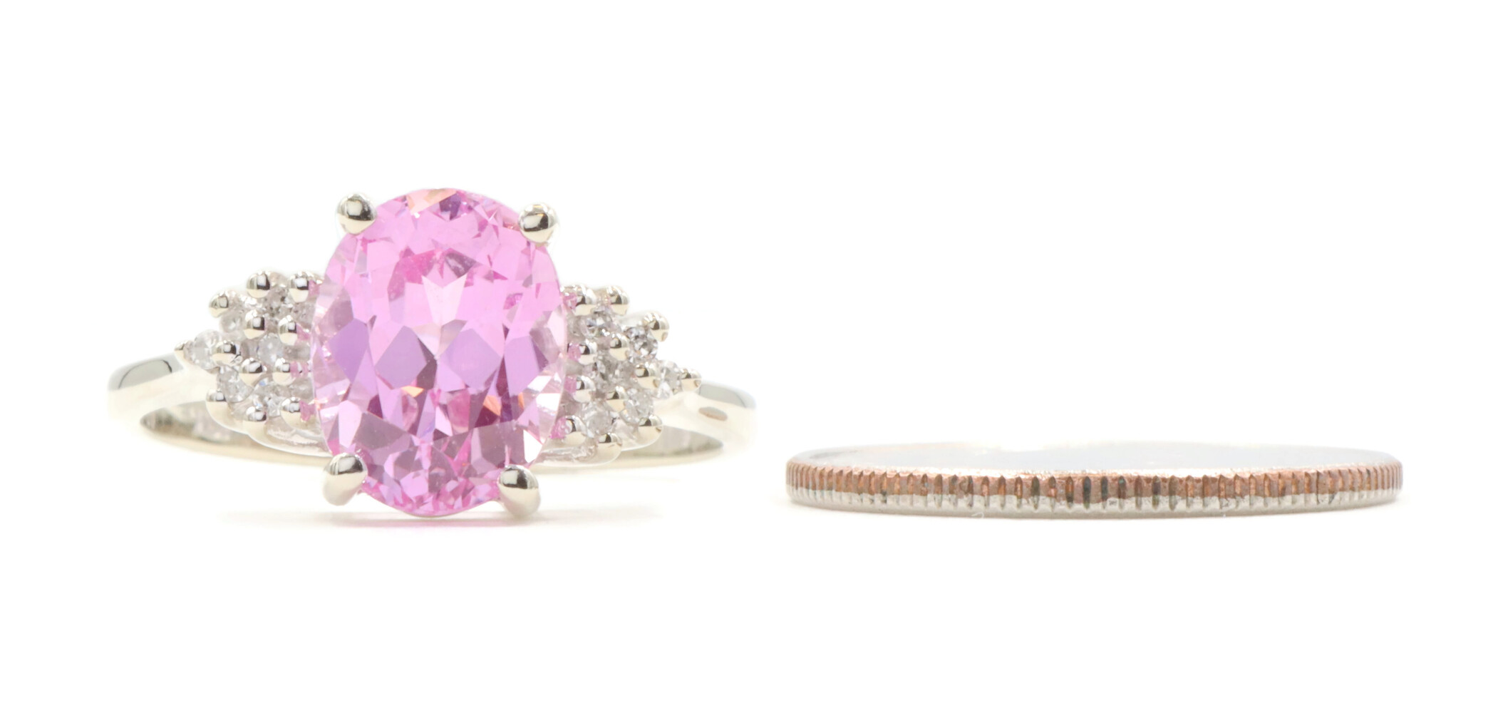 2.50 ctw Oval Pink Lab Created Sapphire & 0.10 ctw Diamond 10KT White Gold Ring | USA Pawn