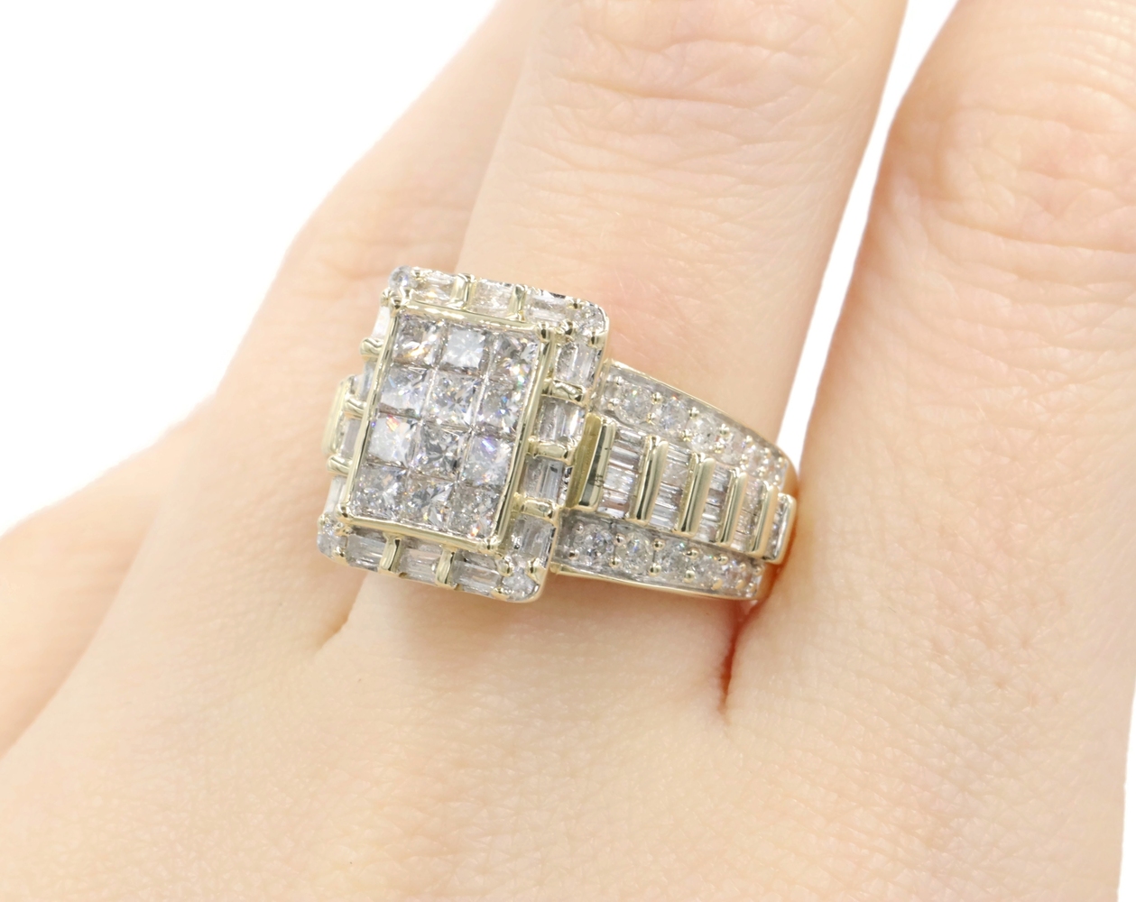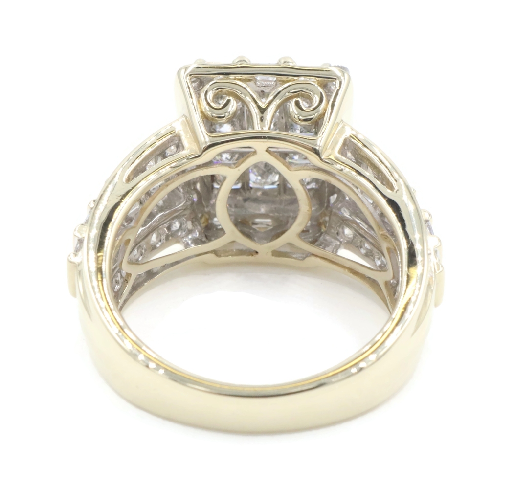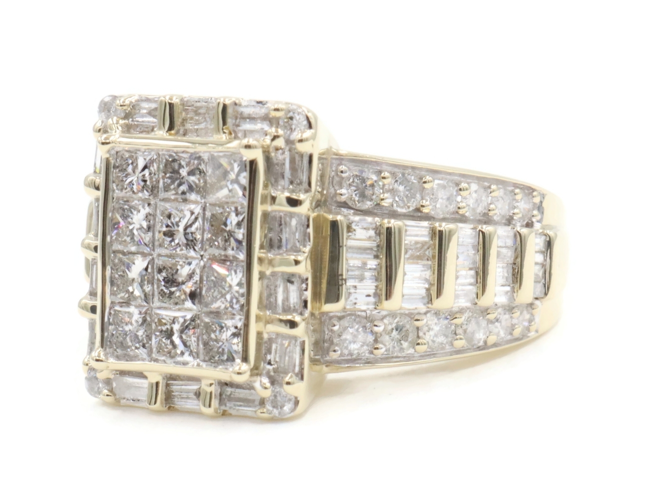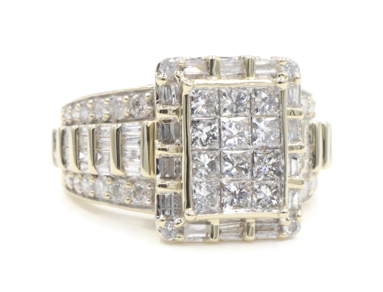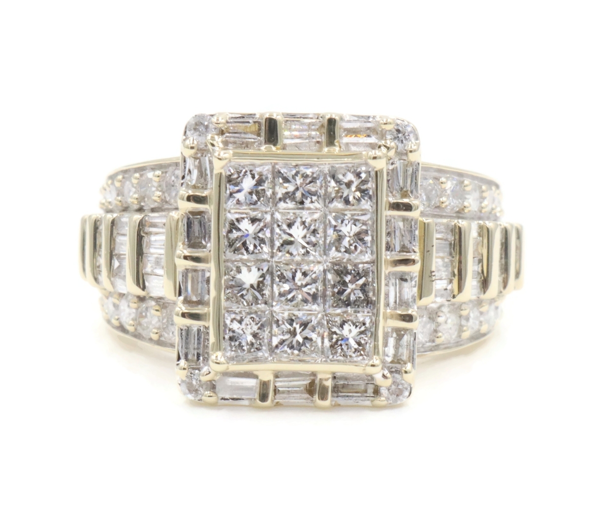 2.52 Ctw Princess, Round & Baguette Diamond 10KT Gold Rectangular Cluster Ring | USA Pawn