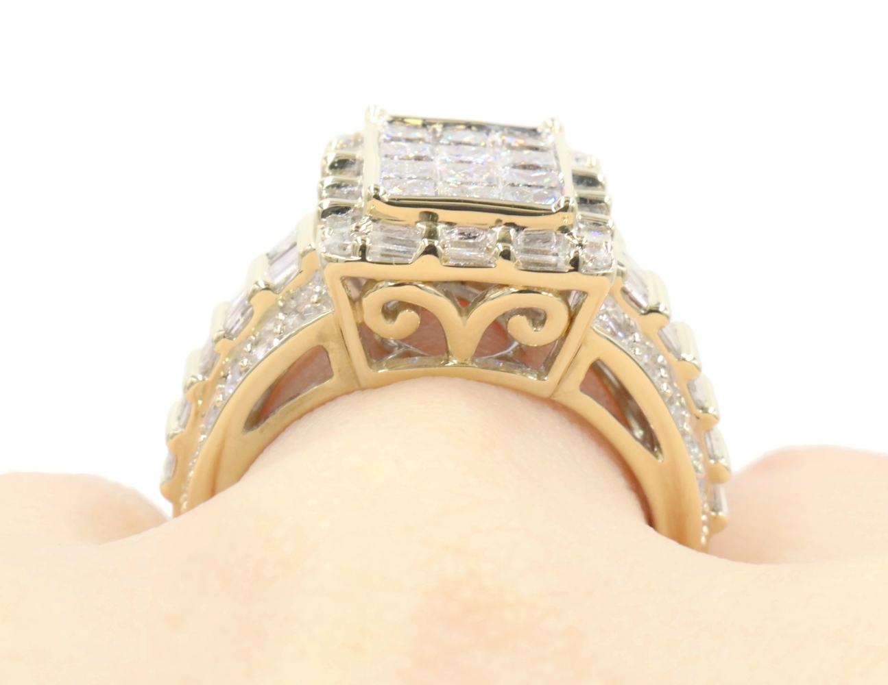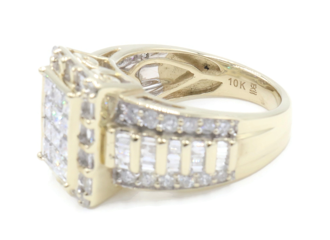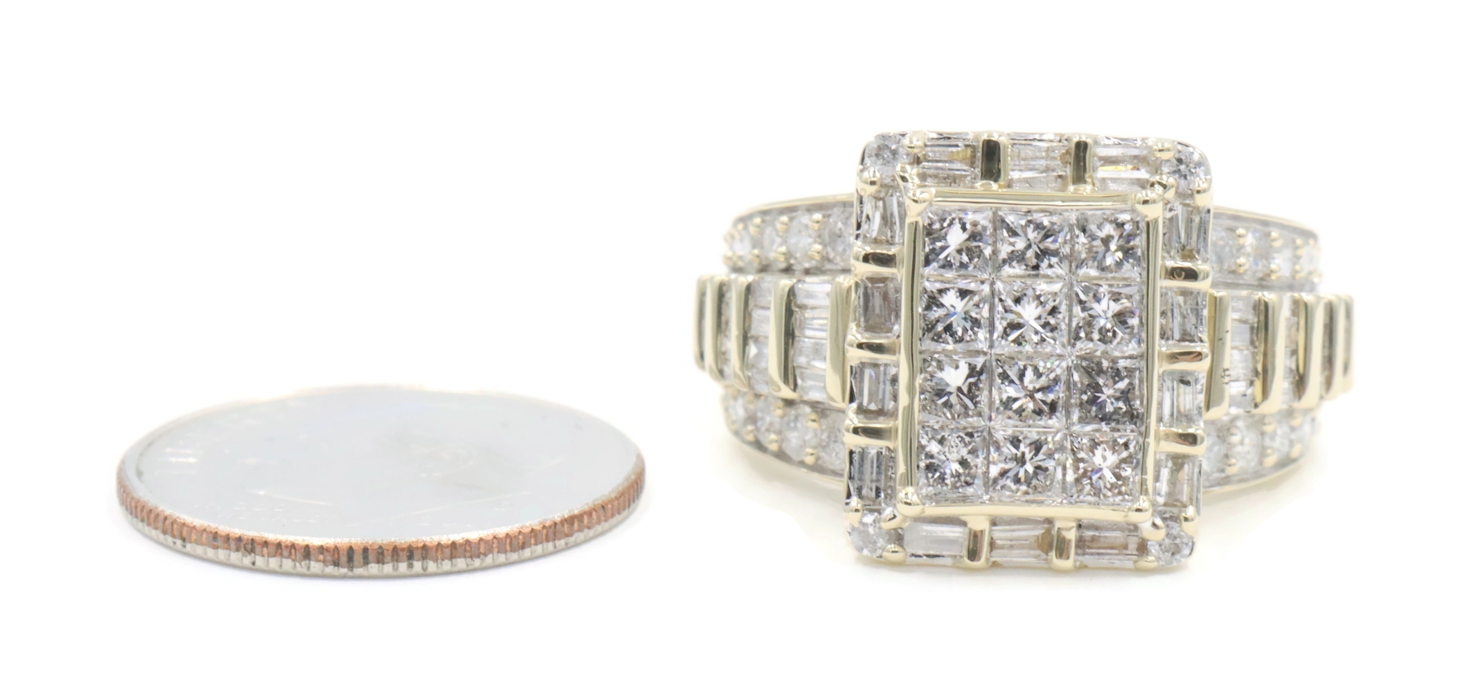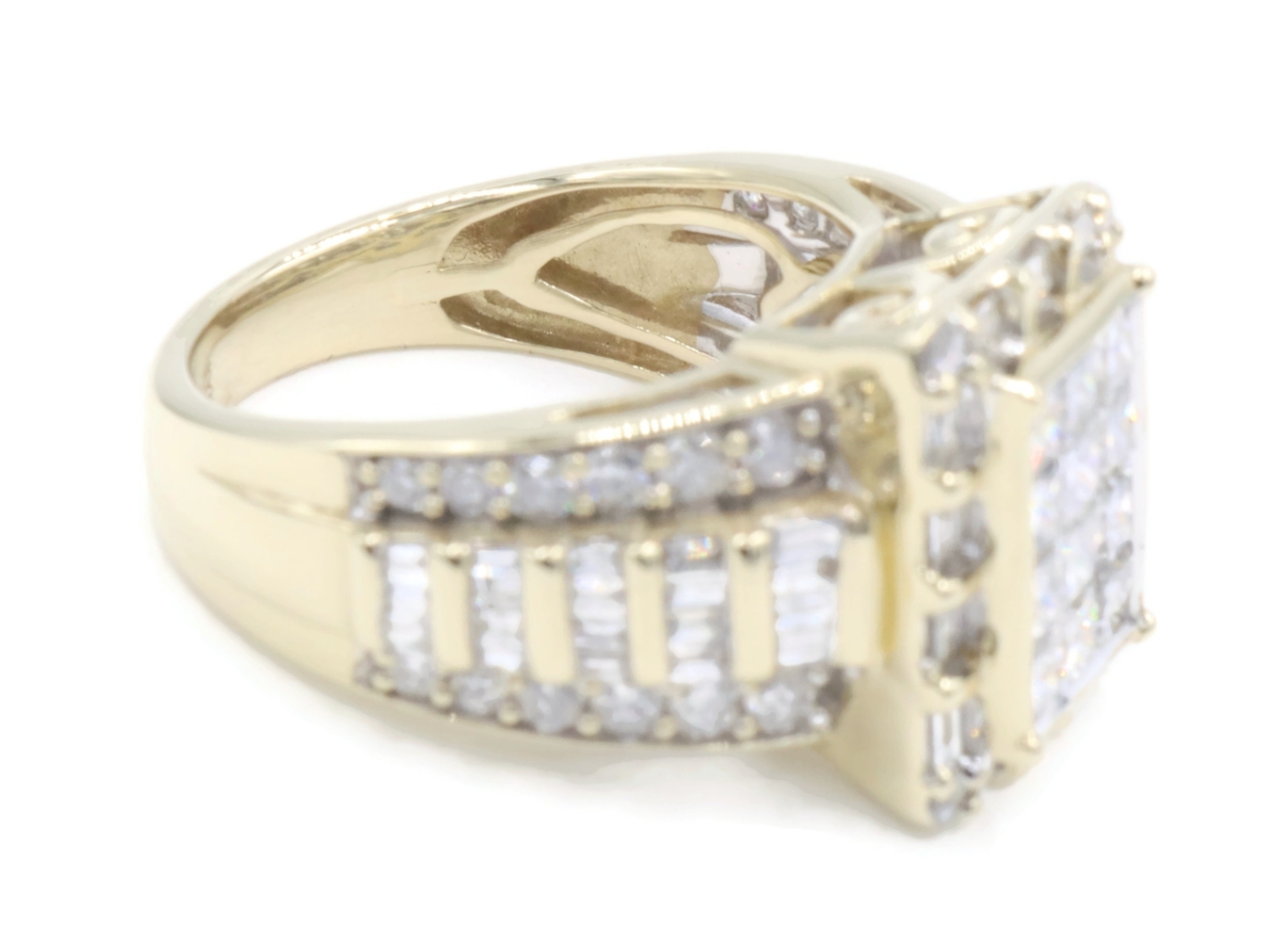 2.52 Ctw Princess, Round & Baguette Diamond 10KT Gold Rectangular Cluster Ring | USA Pawn
