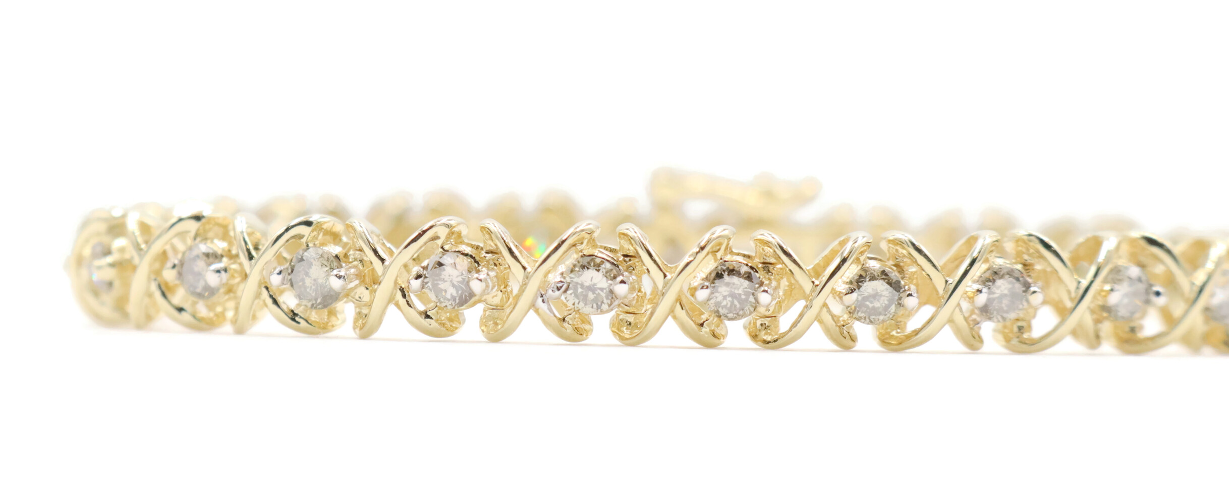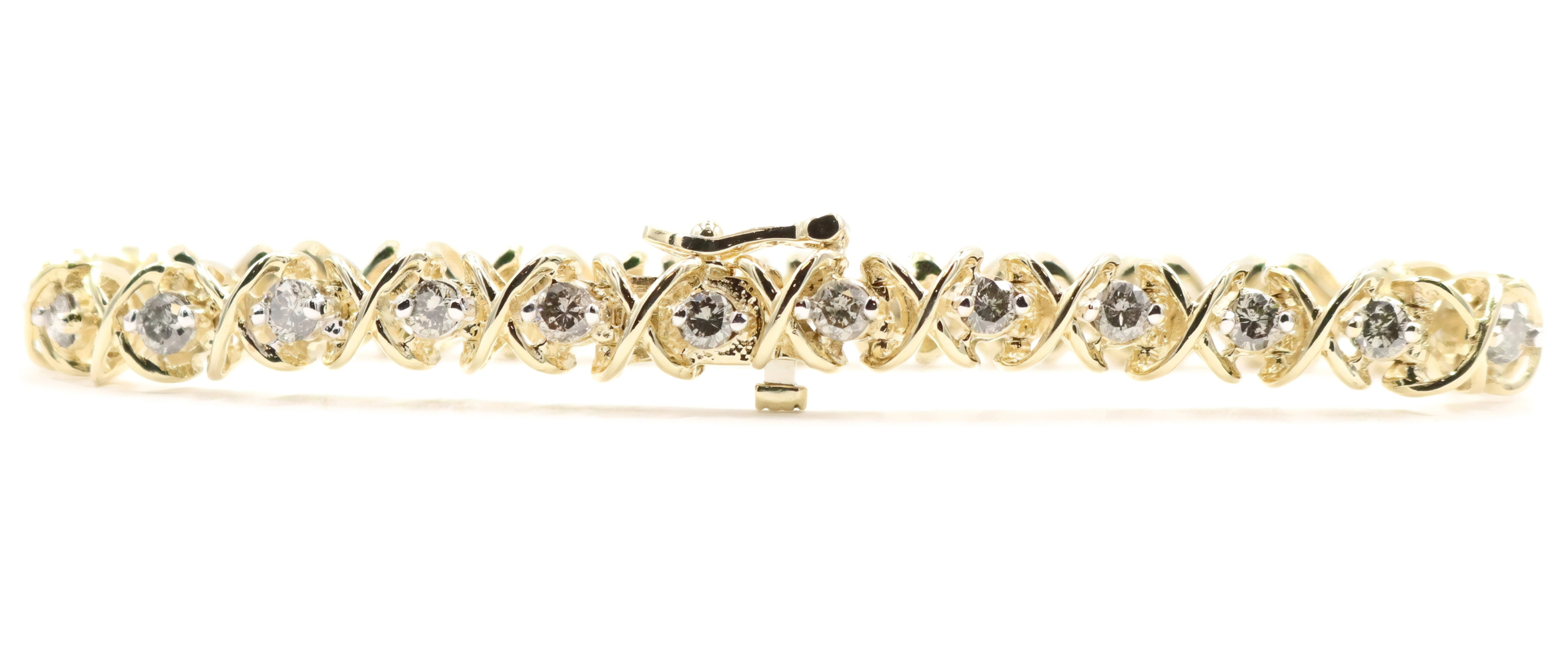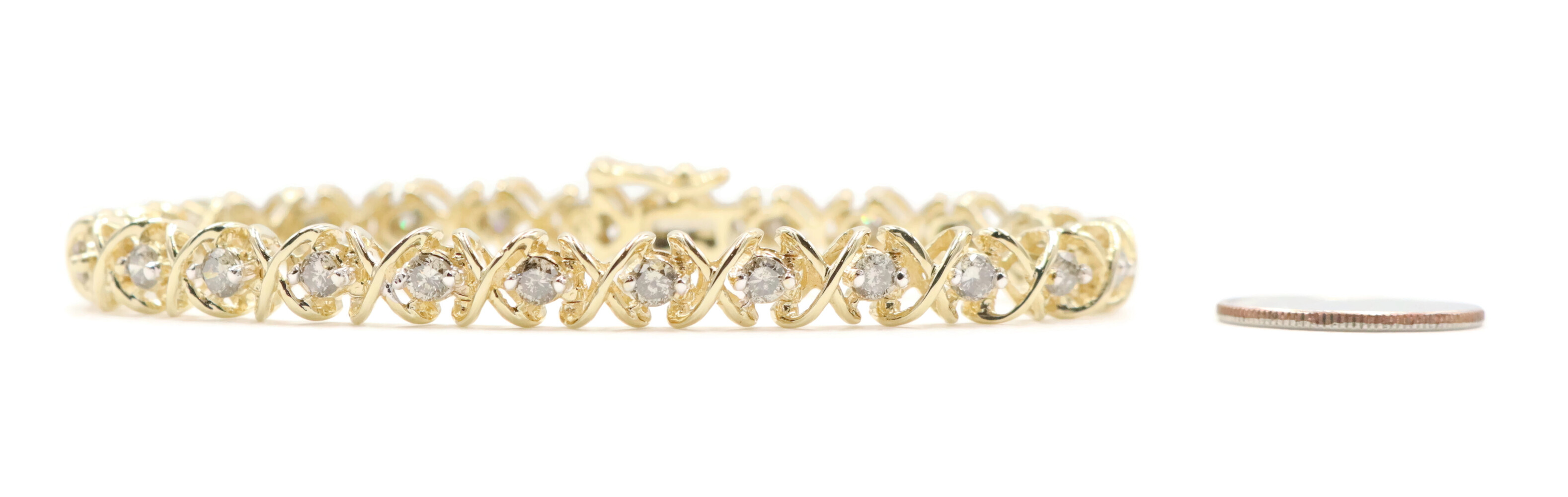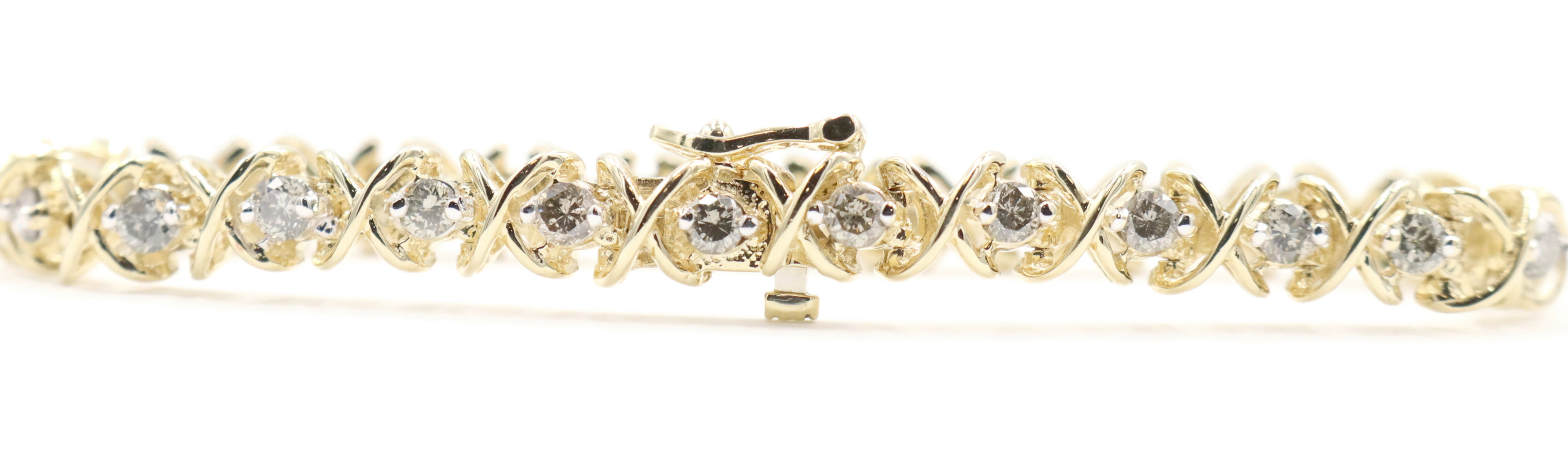 2.65 Ctw Round Diamond 14KT Yellow Gold XOXO Link Tennis Bracelet 7" - 14.63g | USA Pawn