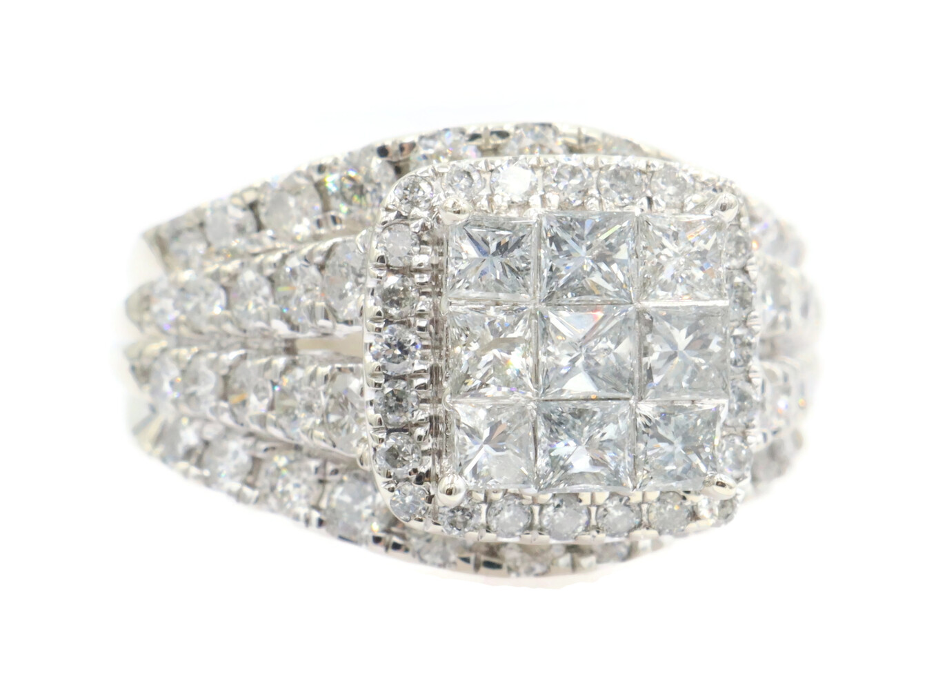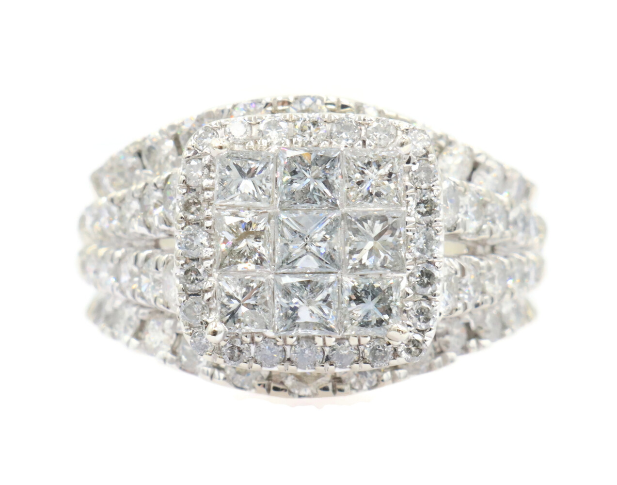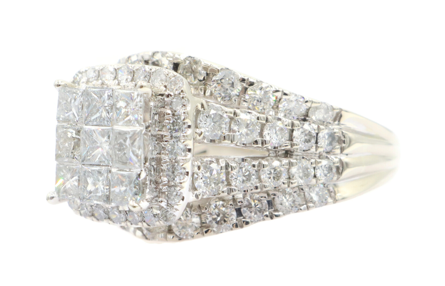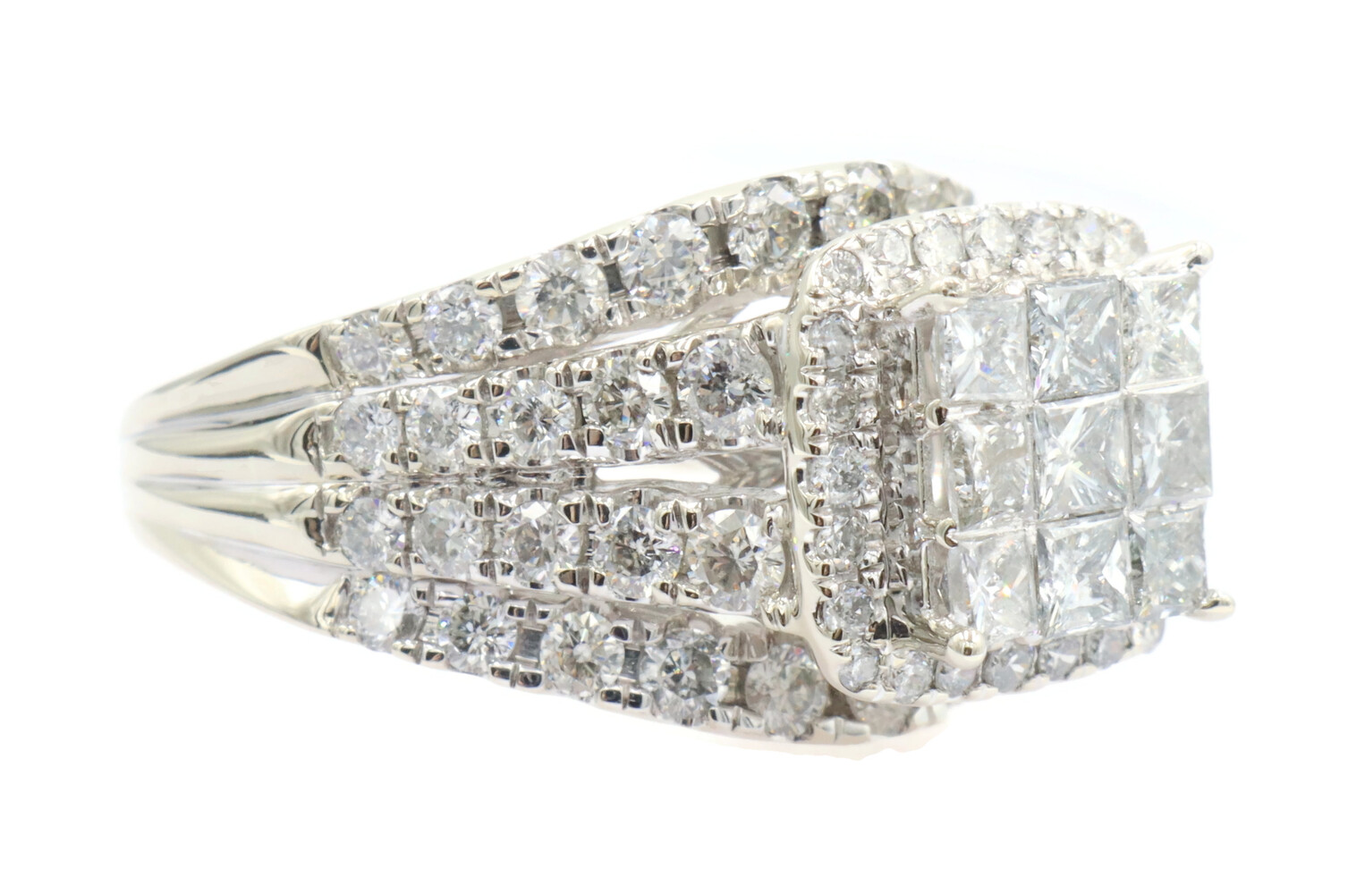 2.82 Ctw Princess & Round Diamond Square Halo 14KT White Gold Cluster Ring 7.31g. This ring is a size 8 3/4.
