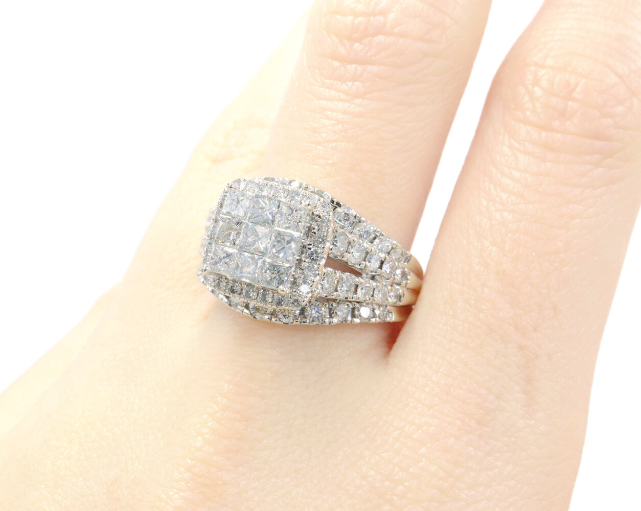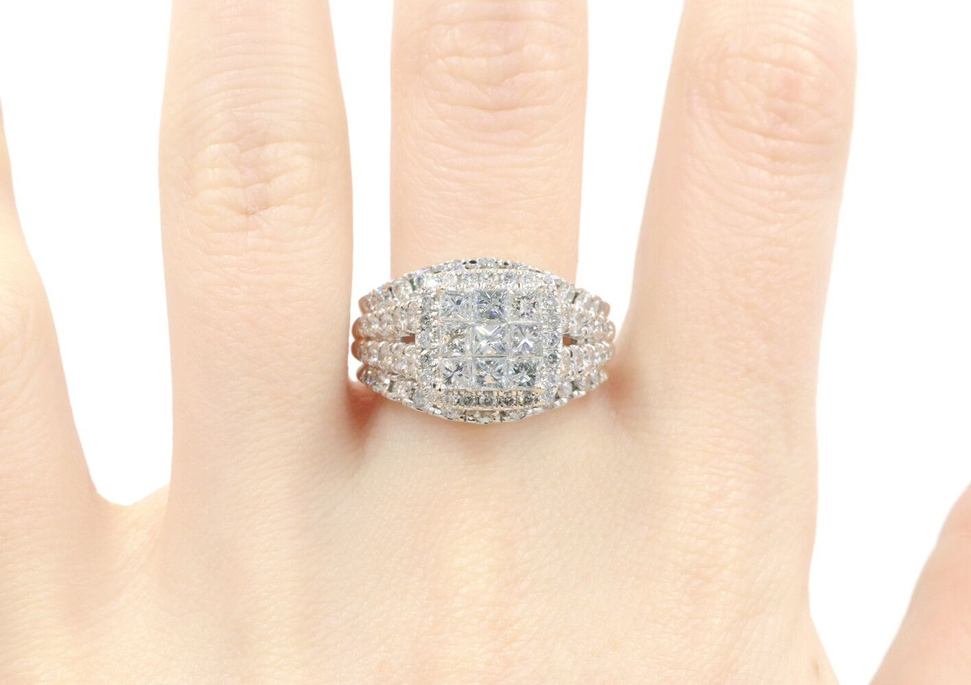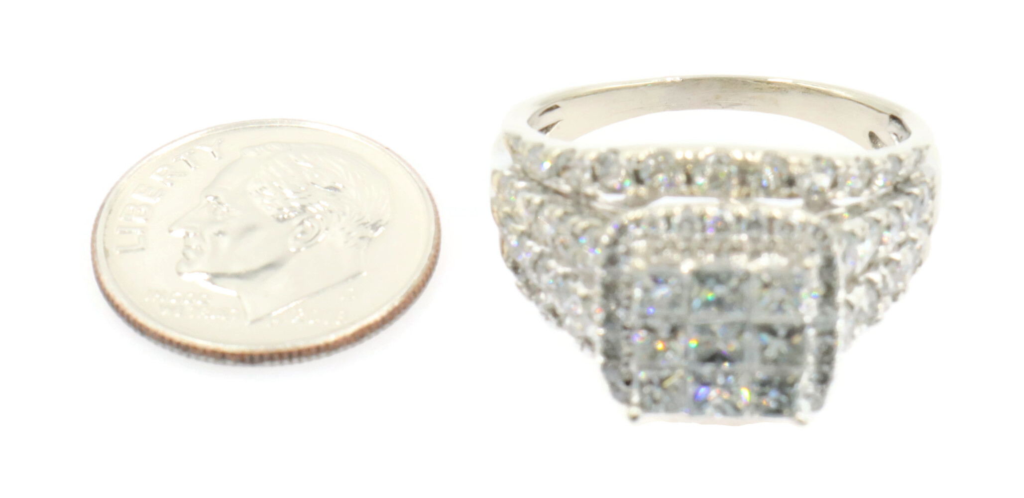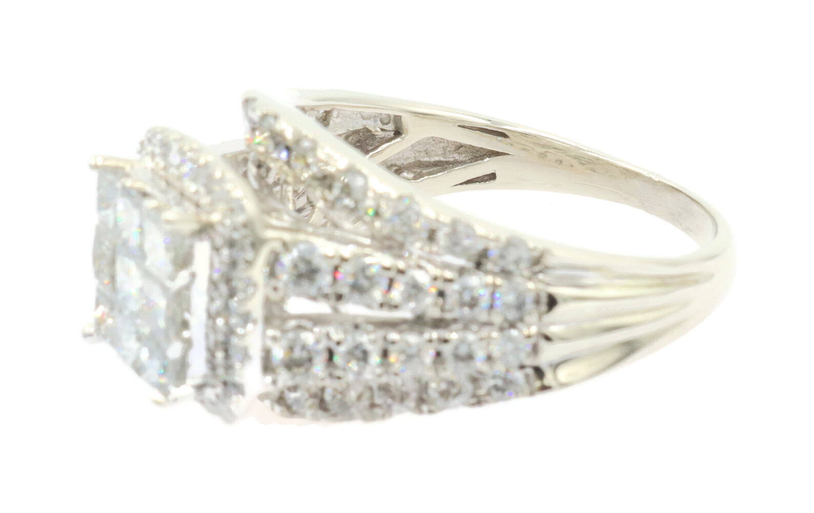 2.82 Ctw Princess & Round Diamond Square Halo 14KT White Gold Cluster Ring 7.31g. This ring is a size 8 3/4.