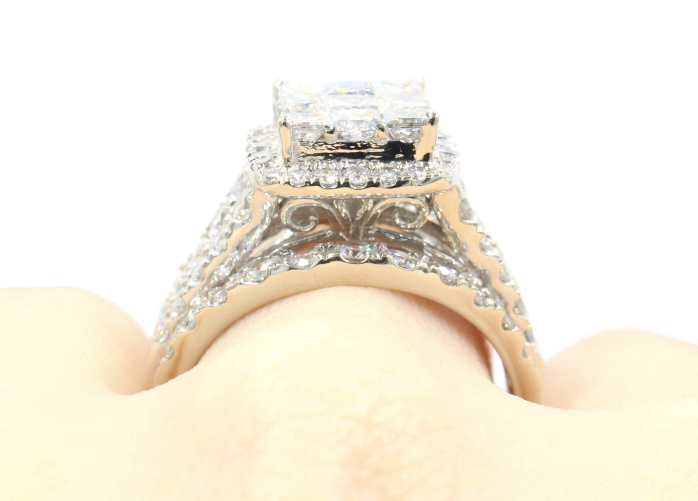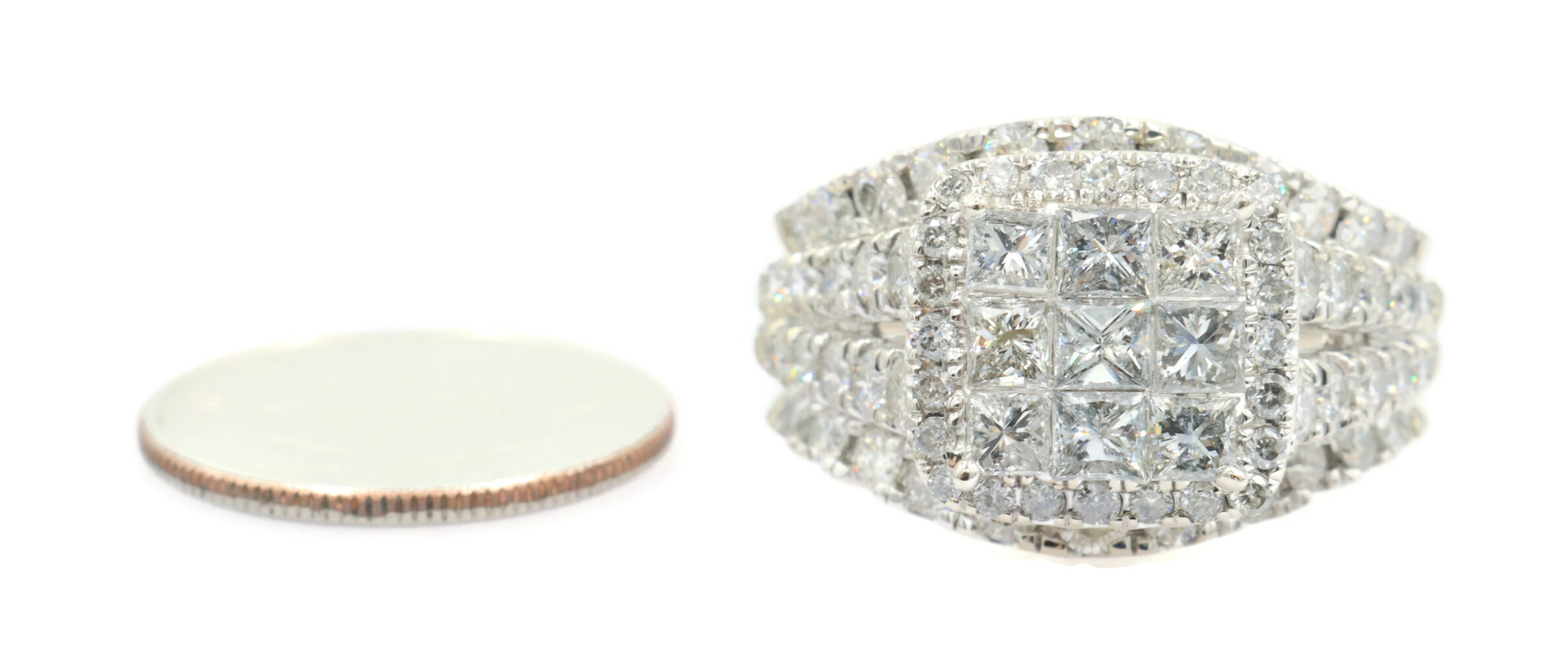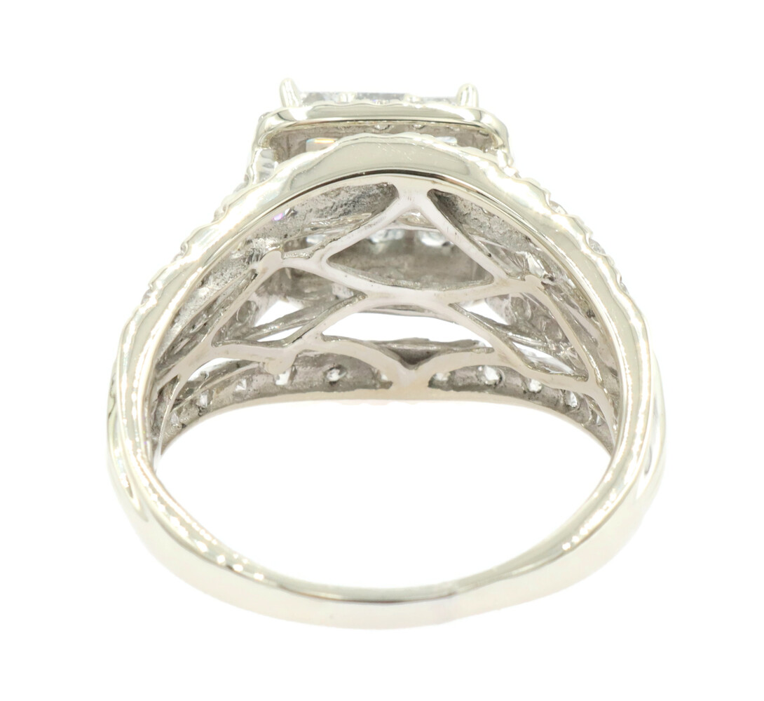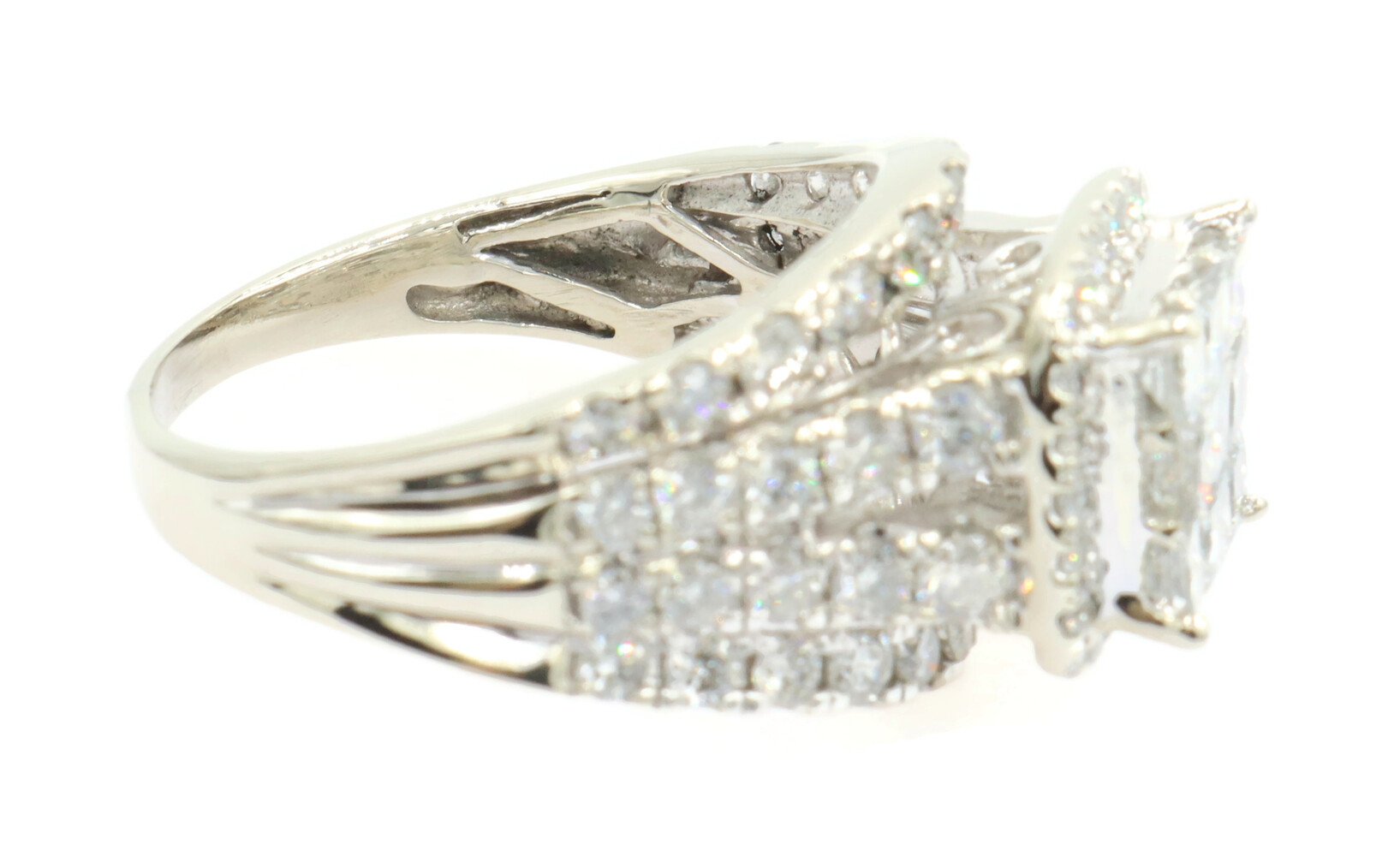 2.82 Ctw Princess & Round Diamond Square Halo 14KT White Gold Cluster Ring 7.31g | USA Pawn