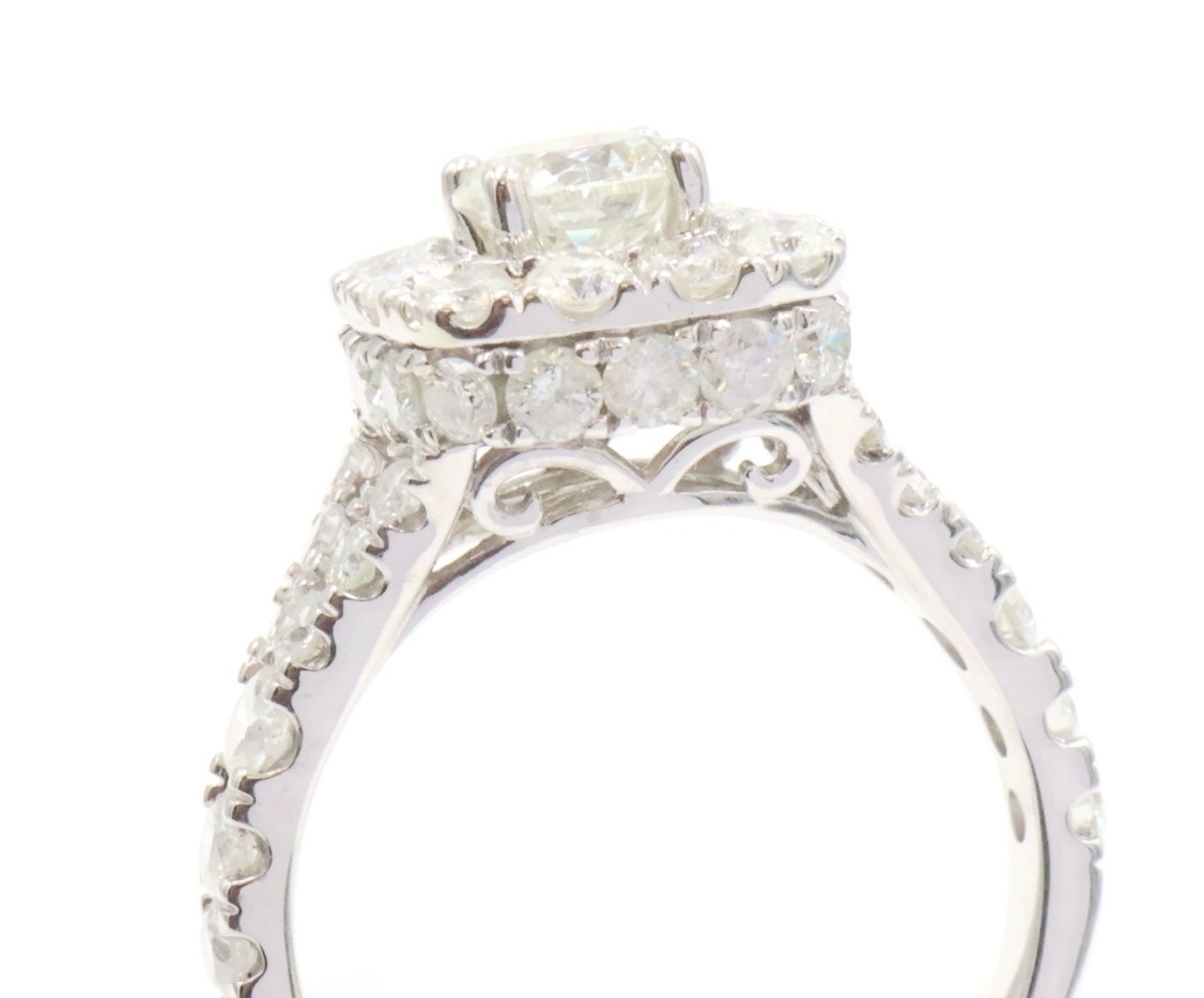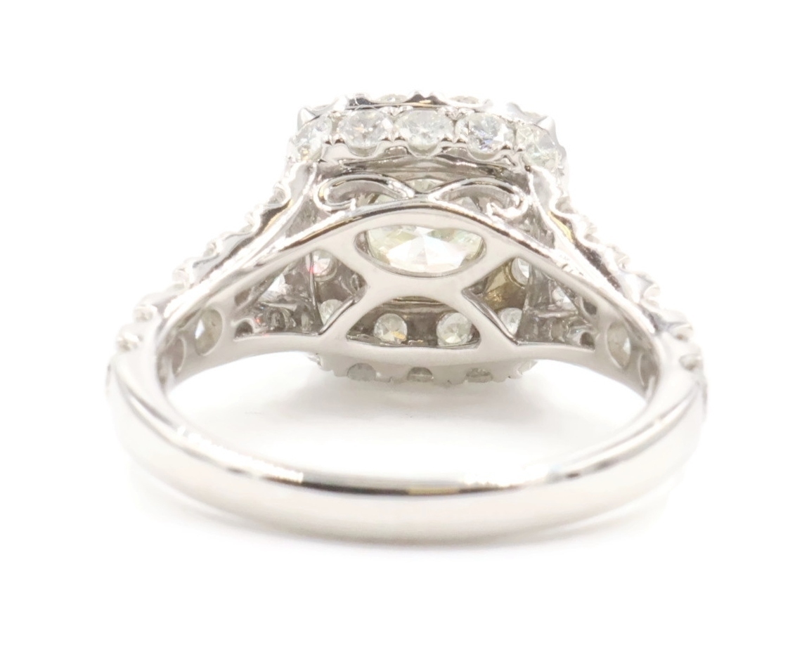 2.95 ctw Round Diamond Halo with Hidden Halo 14KT White Gold Engagement Ring. This ring is a size 7.