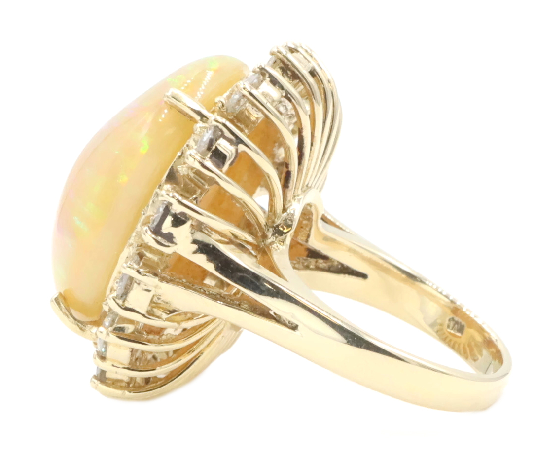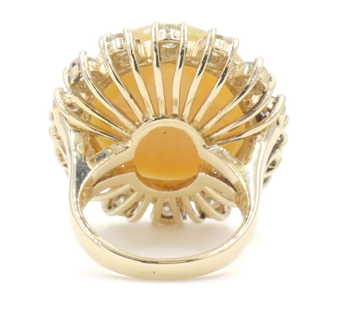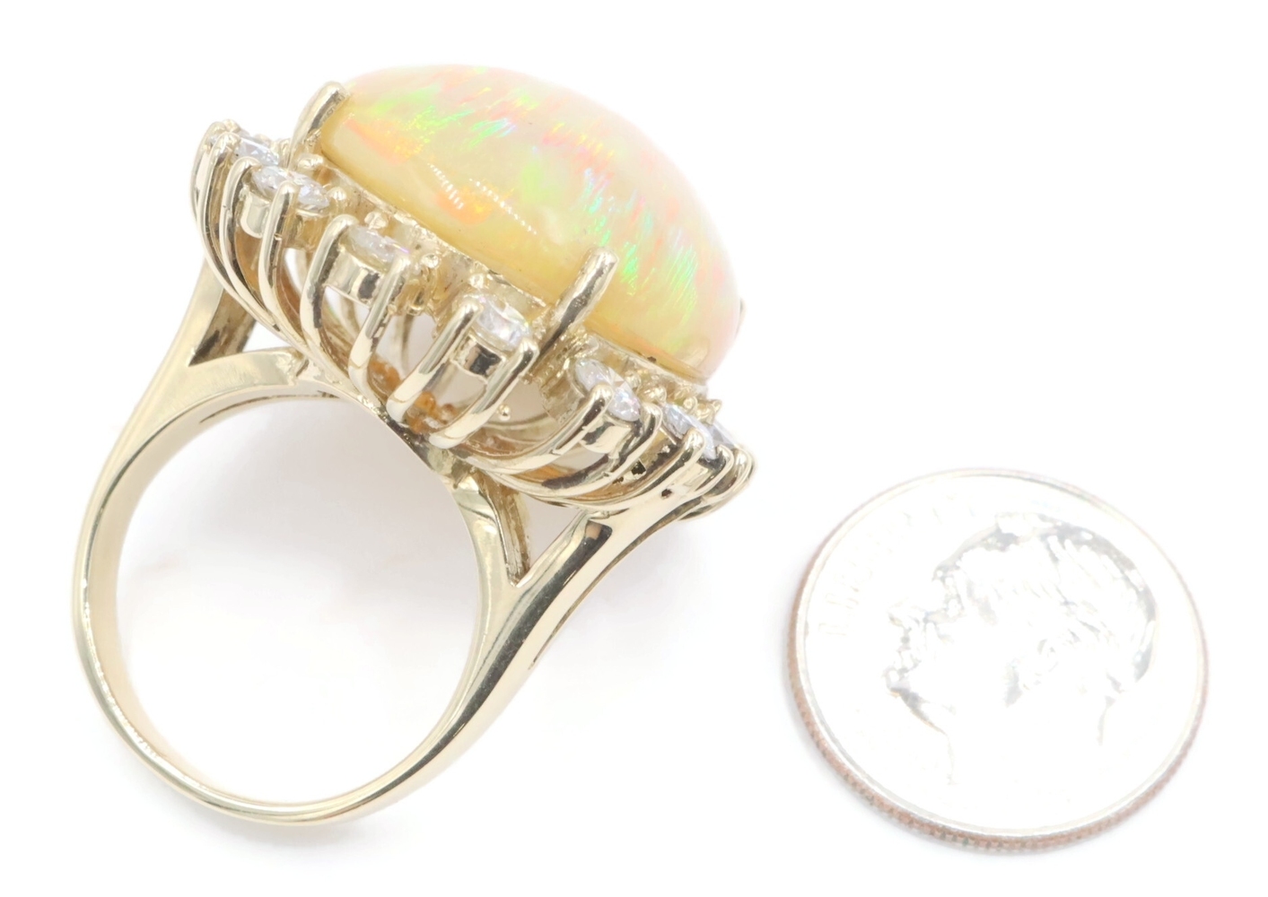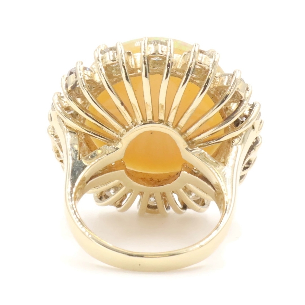 26.20 ctw Oval Cabochon Synthetic Fire Opal & Round Diamond 14K Yellow Gold Ring | USA Pawn