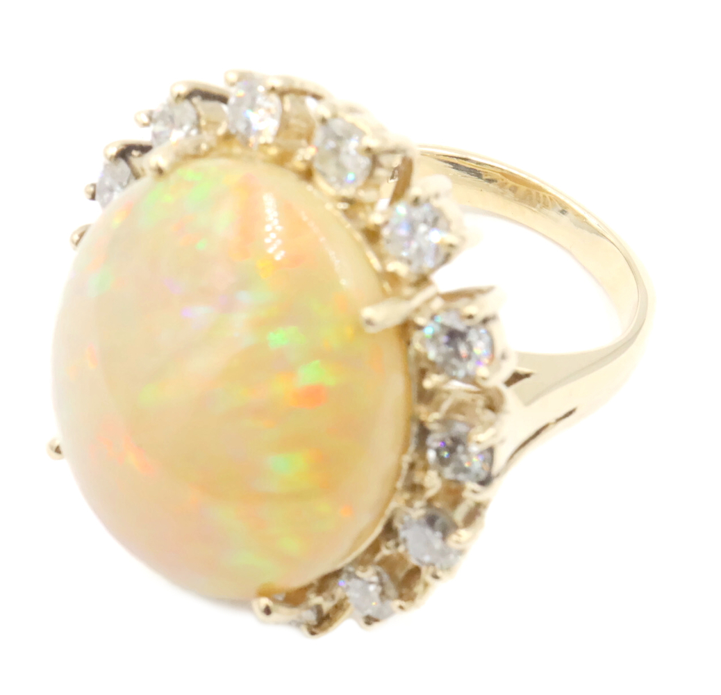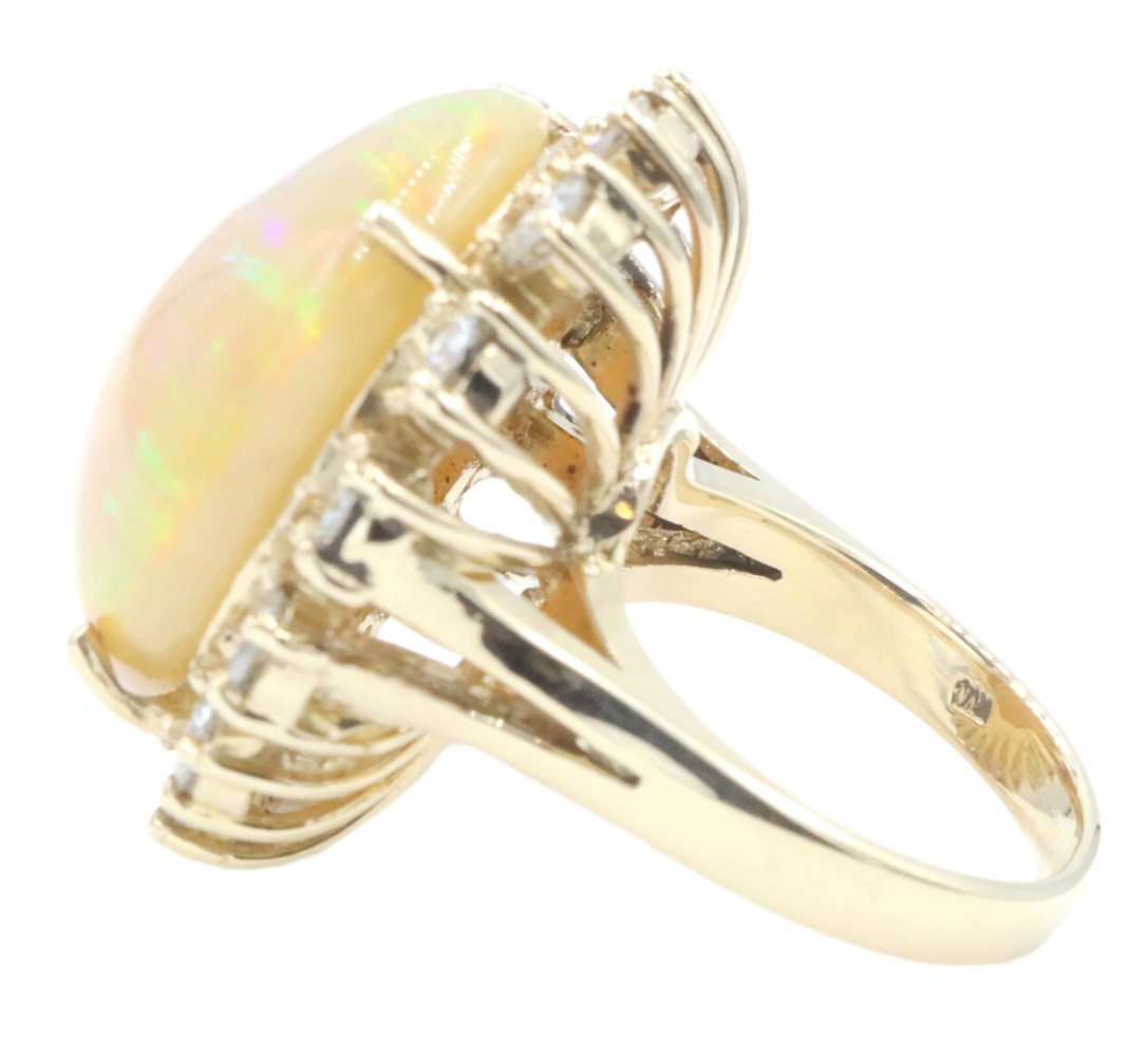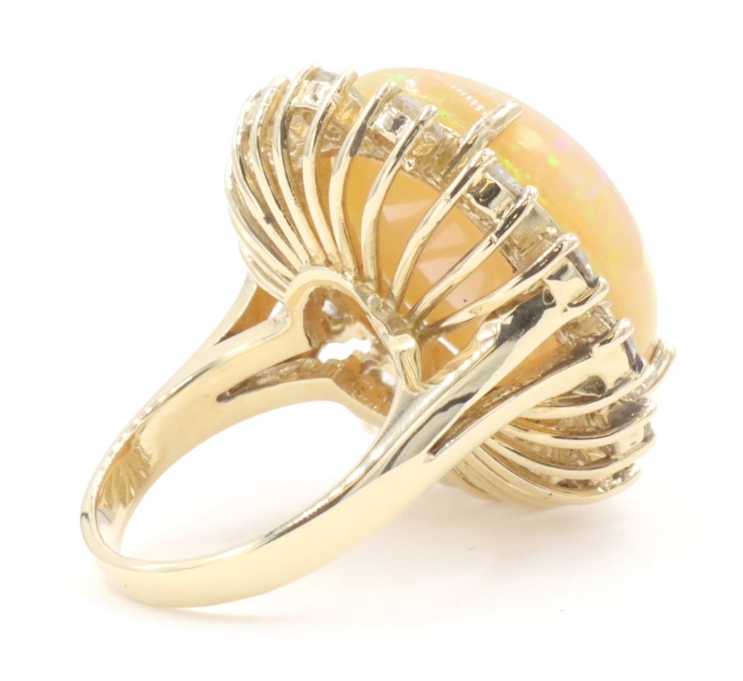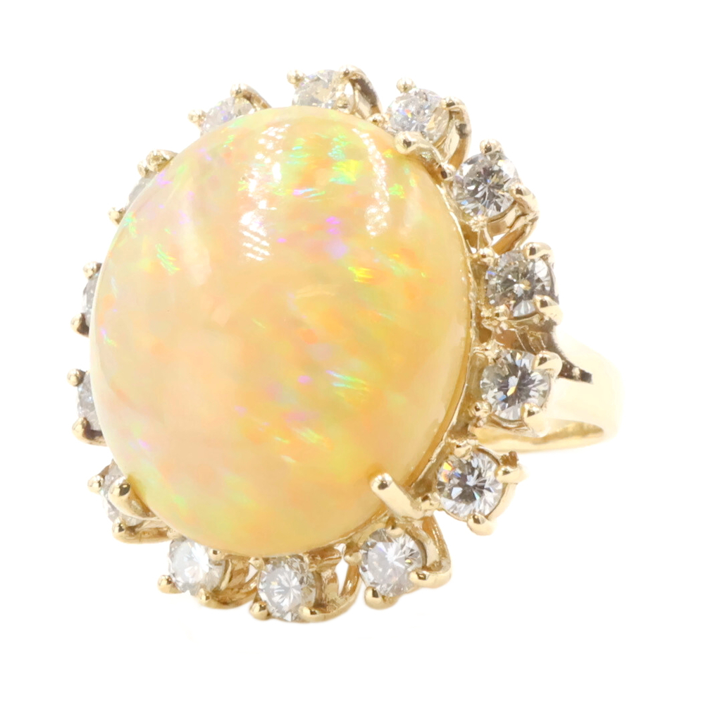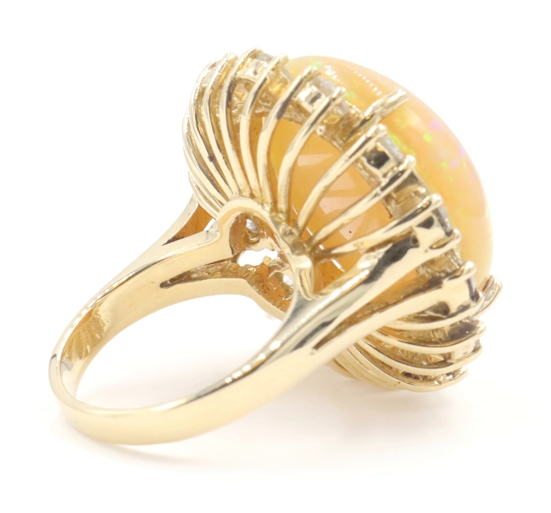 26.20 ctw Oval Cabochon Synthetic Fire Opal & Round Diamond 14K Yellow Gold Ring | USA Pawn