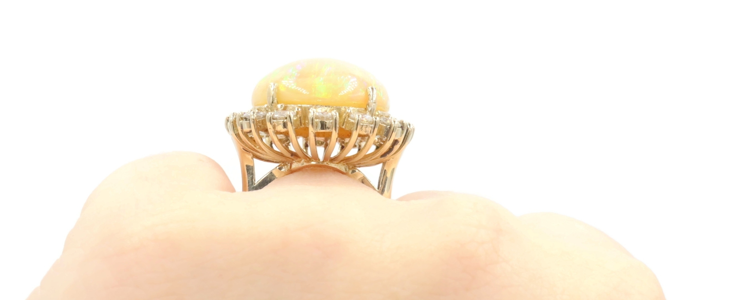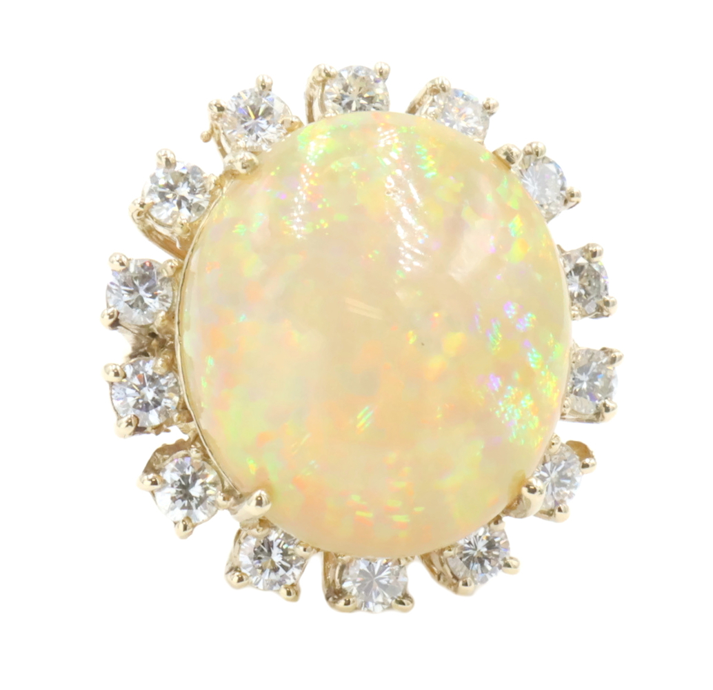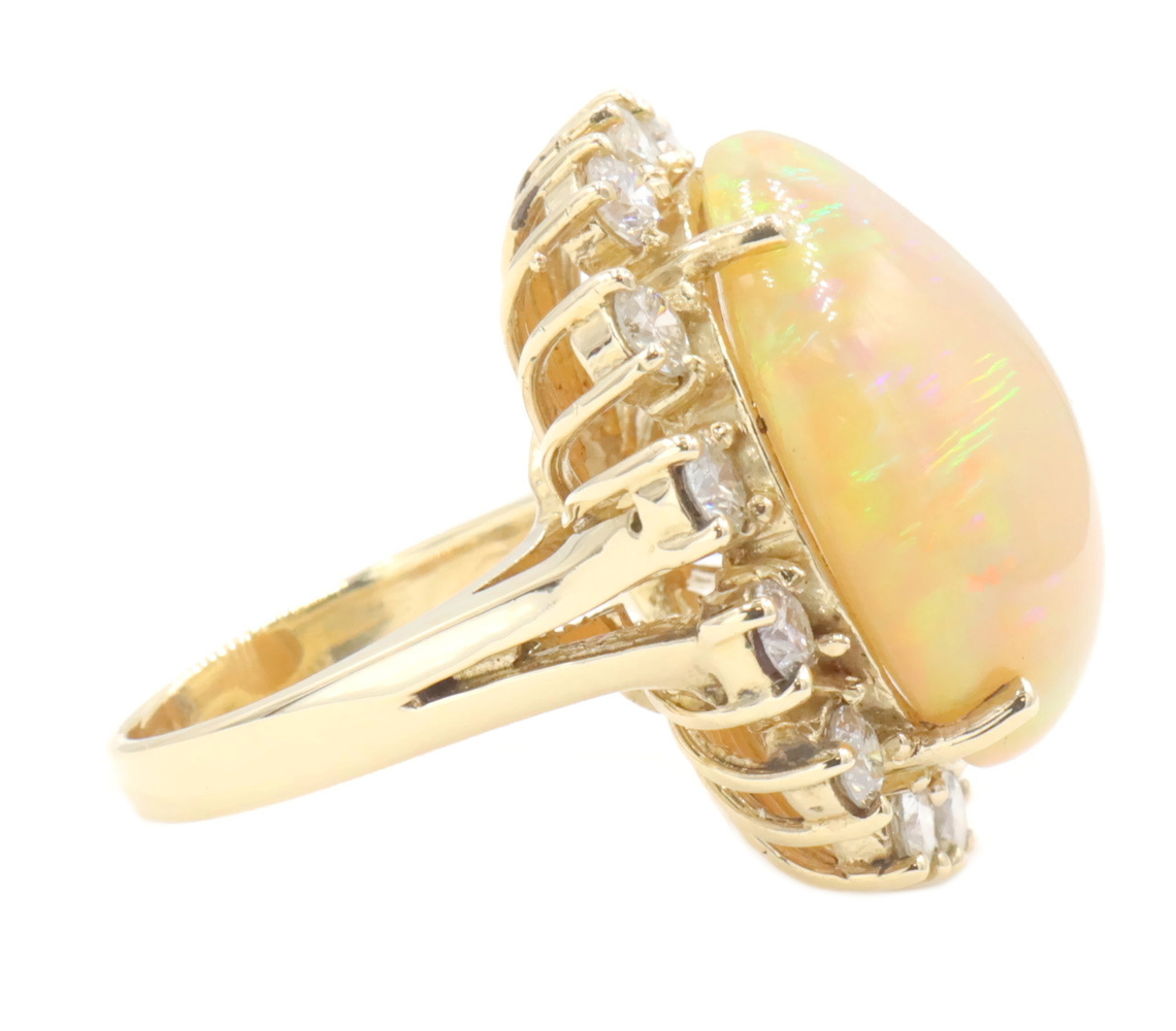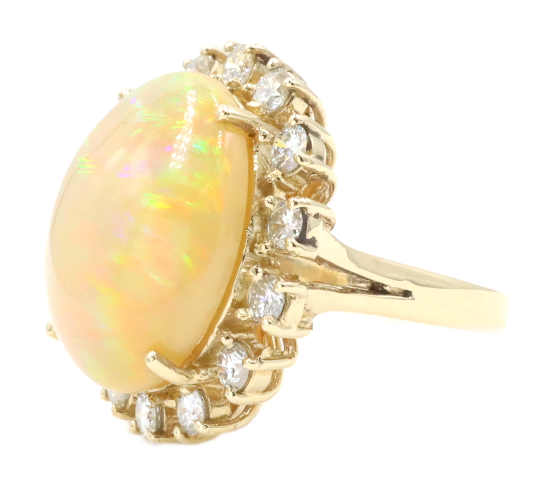 26.20 ctw Oval Cabochon Synthetic Fire Opal & Round Diamond 14K Yellow Gold Ring | USA Pawn