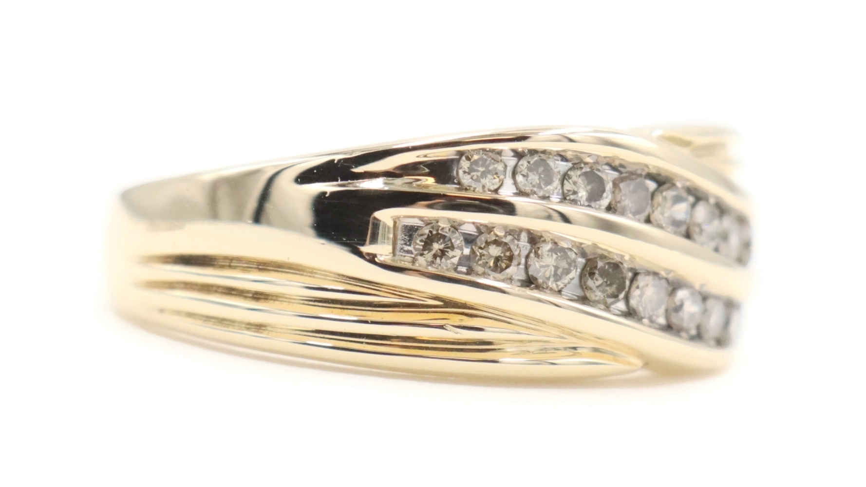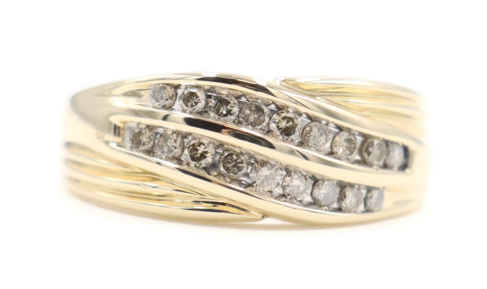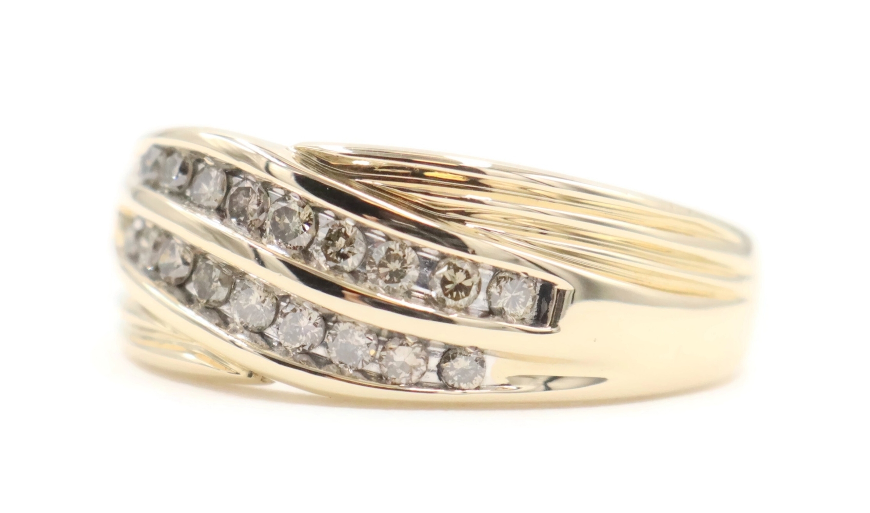 2-Row 0.36 Ctw Round Diamond 10KT Yellow Gold Curved Channel Wedding Band FG 6g | USA Pawn