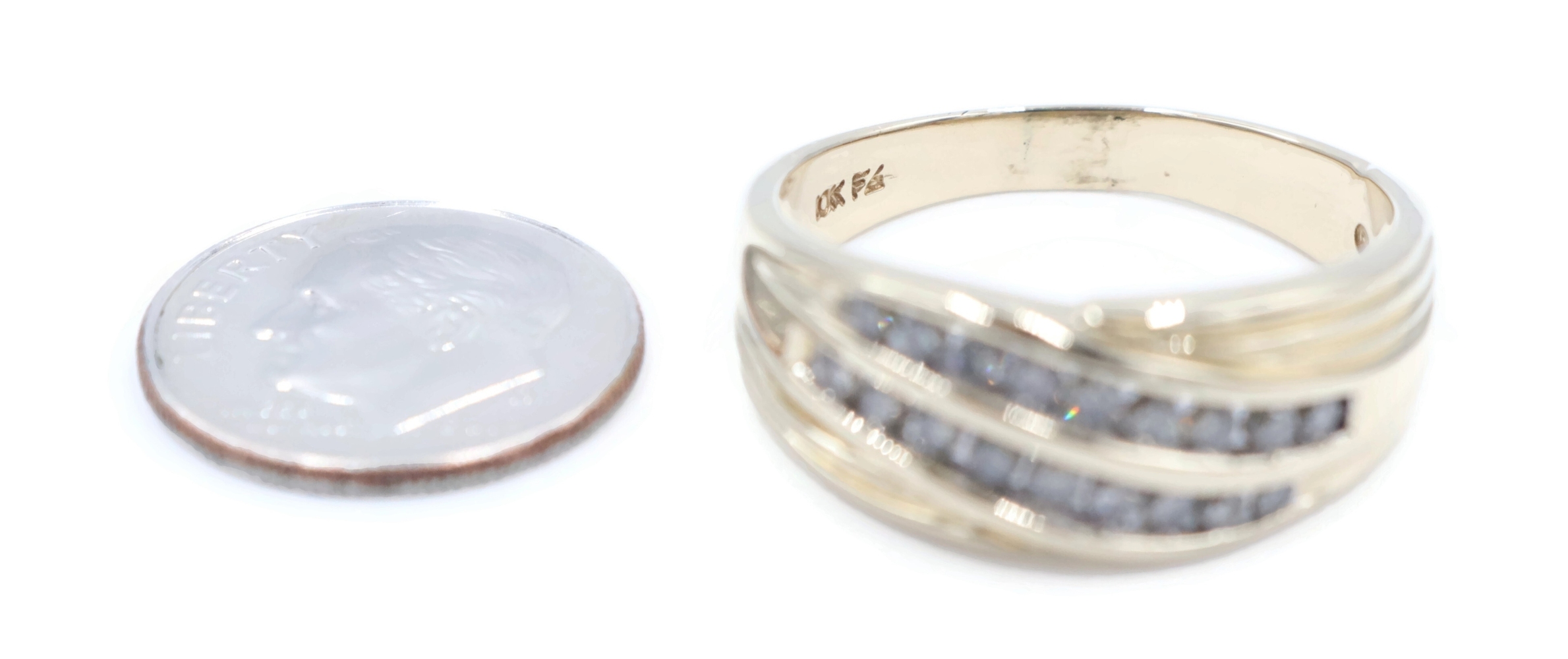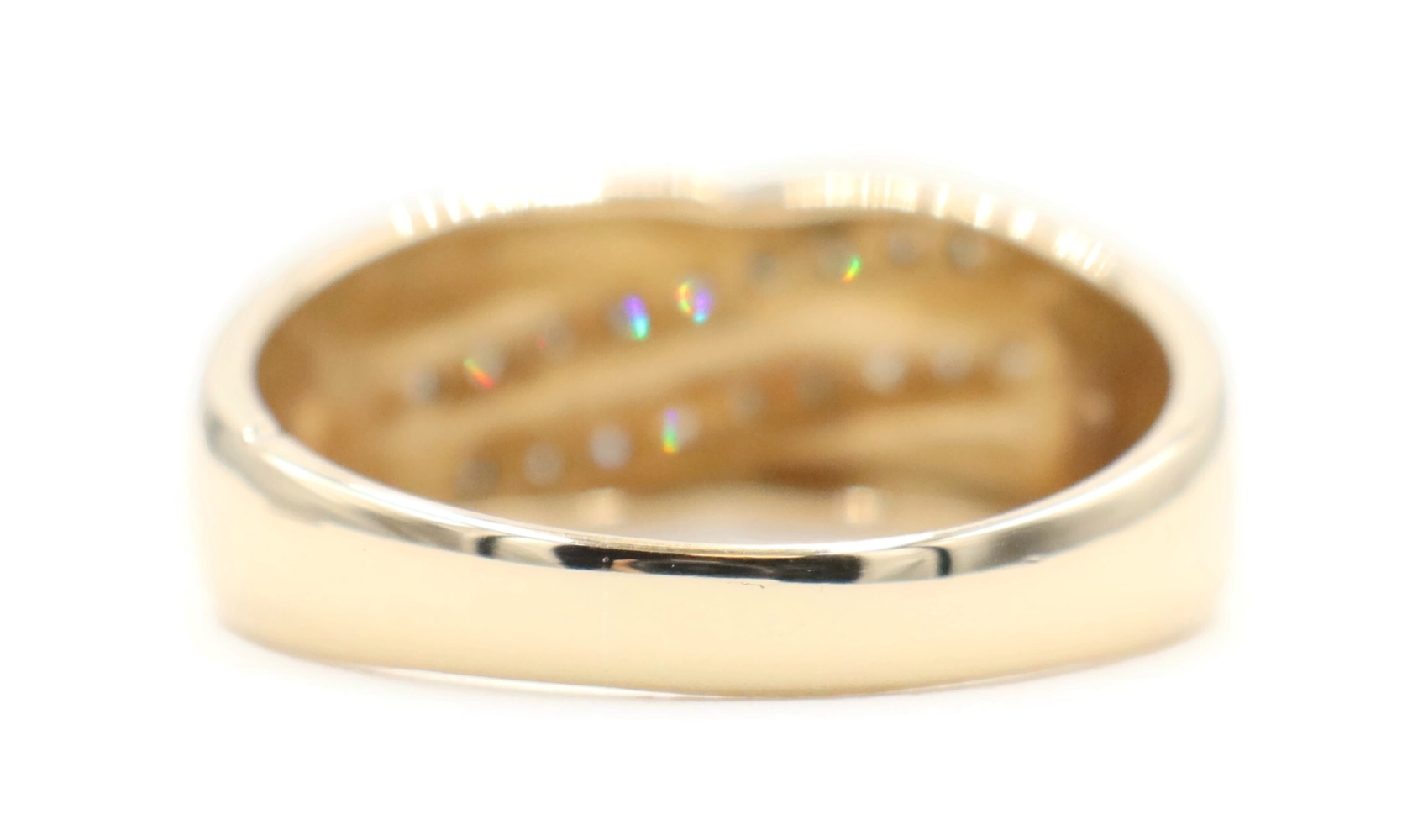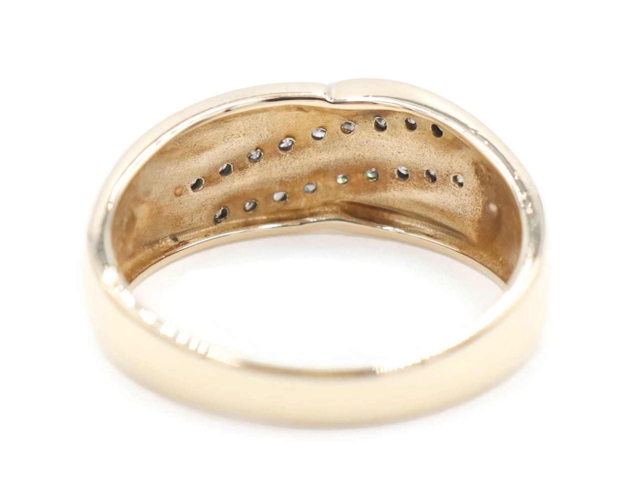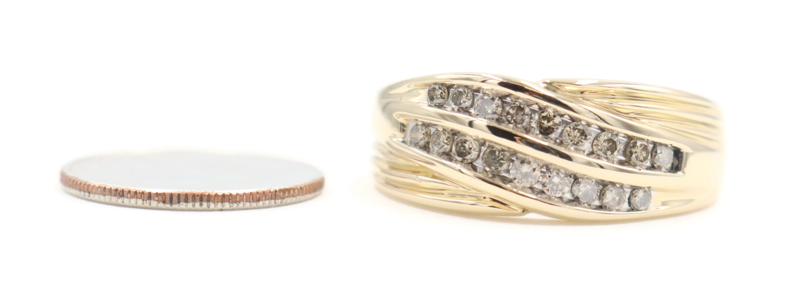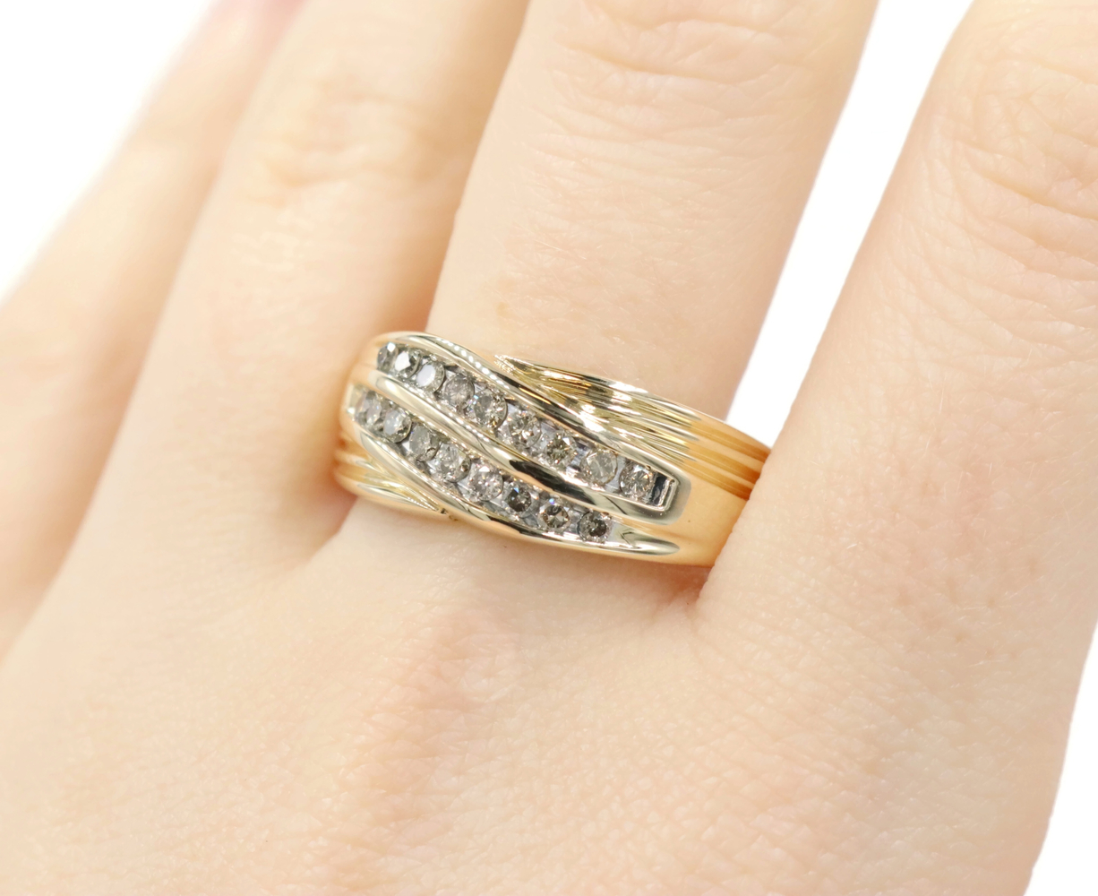2-Row 0.36 Ctw Round Diamond 10KT Yellow Gold Curved Channel Wedding Band FG 6g. This ring is a size 11 3/4.