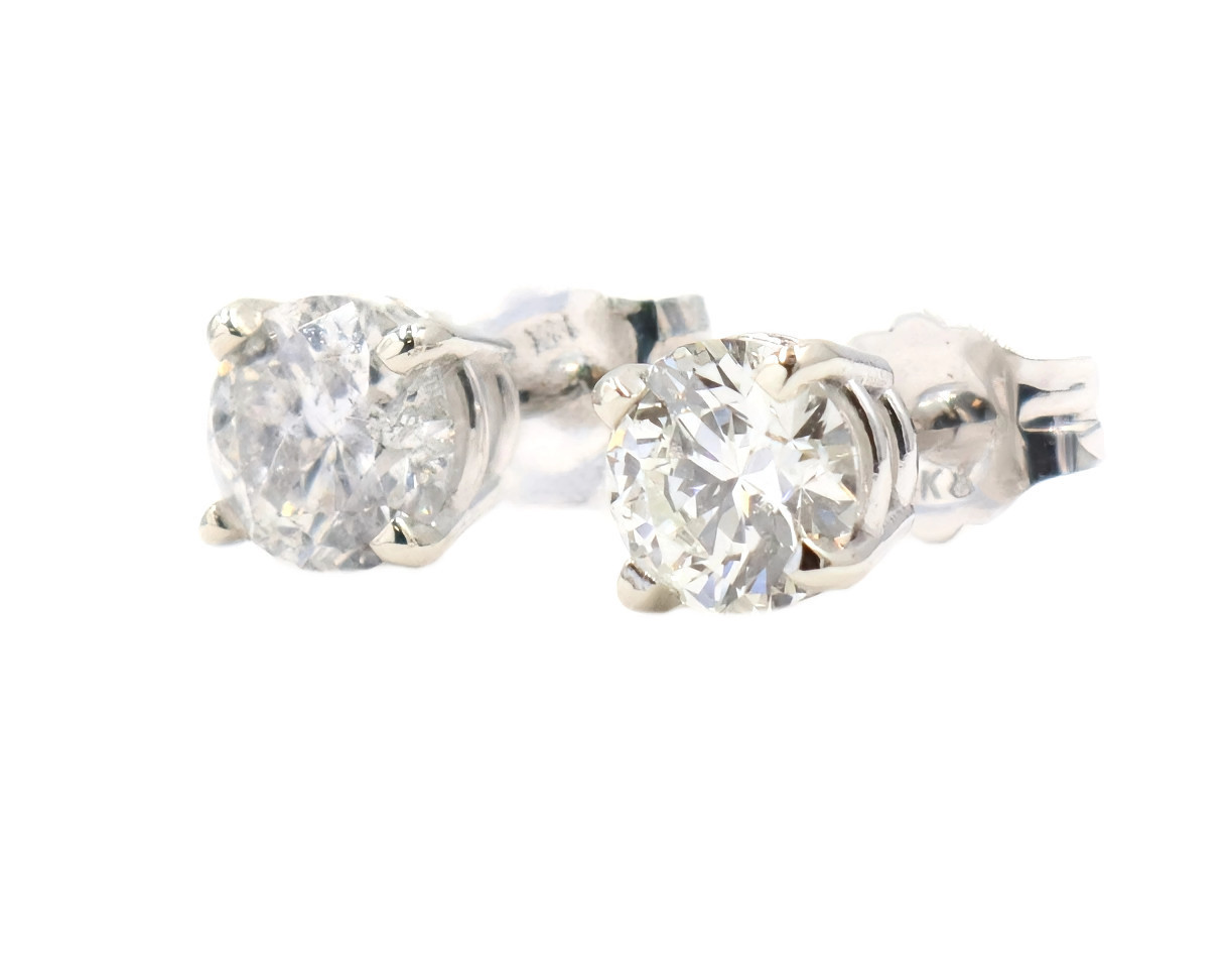 3/4 3/4 cttw Round Brilliant Cut Diamond 14KT White Gold Solitaire Stud Earrings | USA Pawn