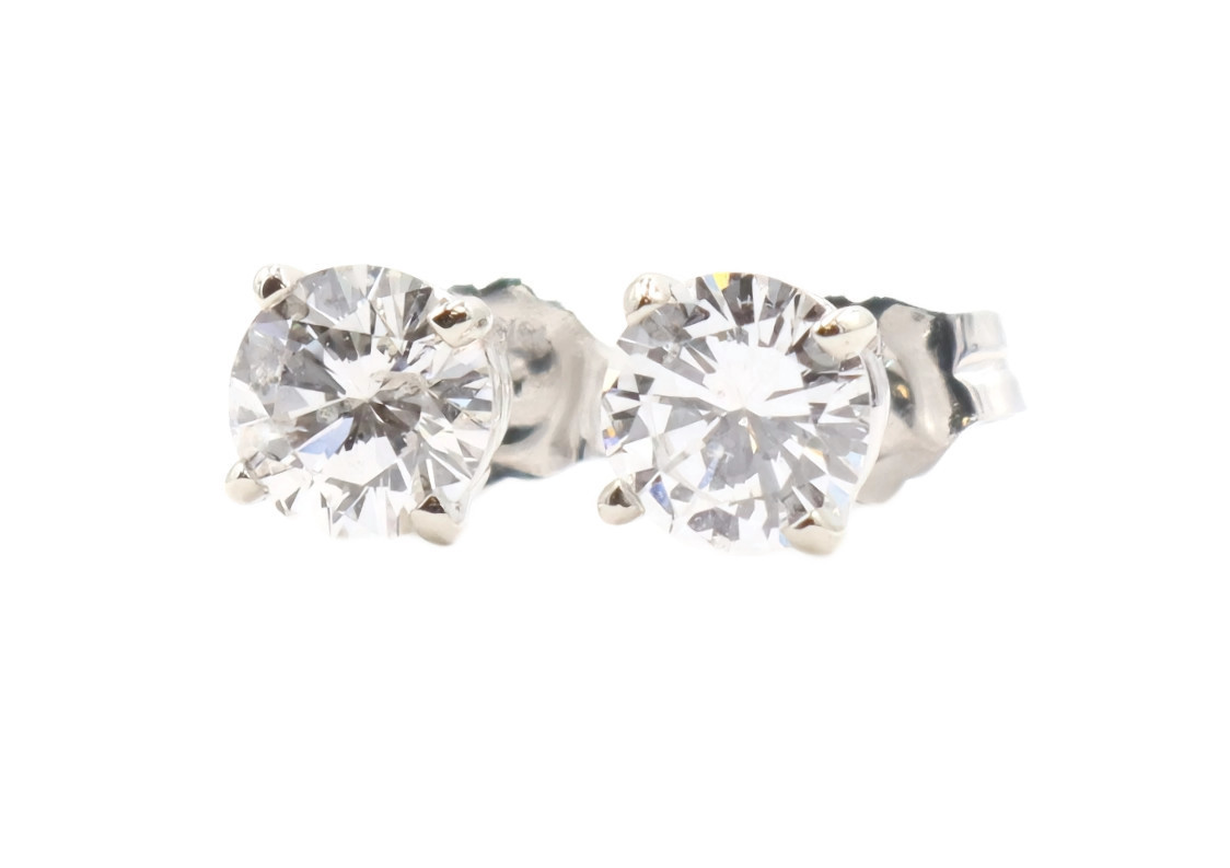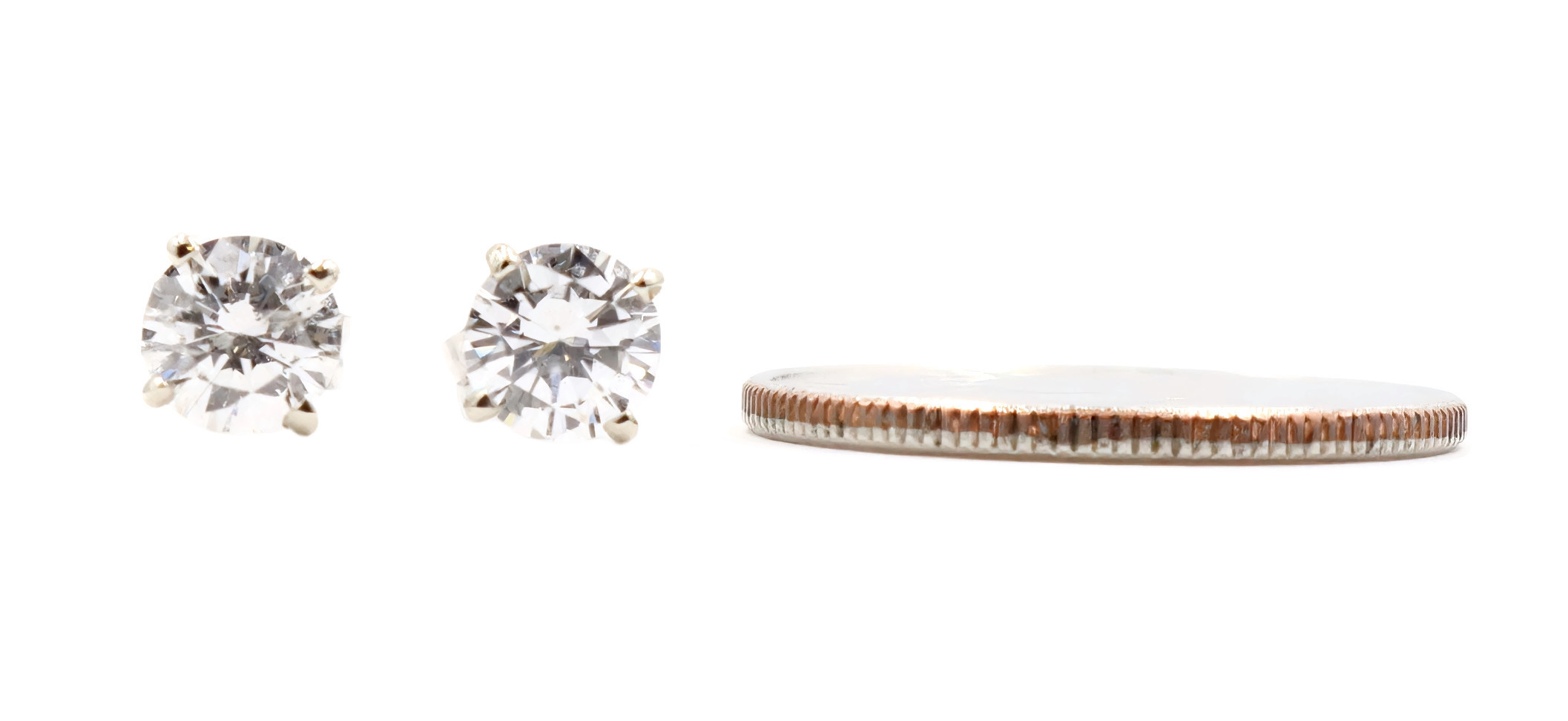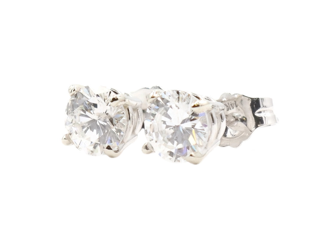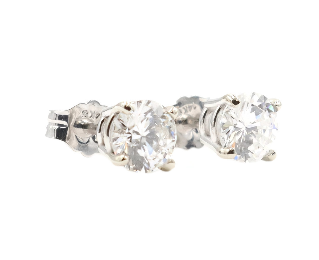 3/4 cttw Round Brilliant Cut Diamond 14KT White Gold Solitaire Stud Earrings | USA Pawn