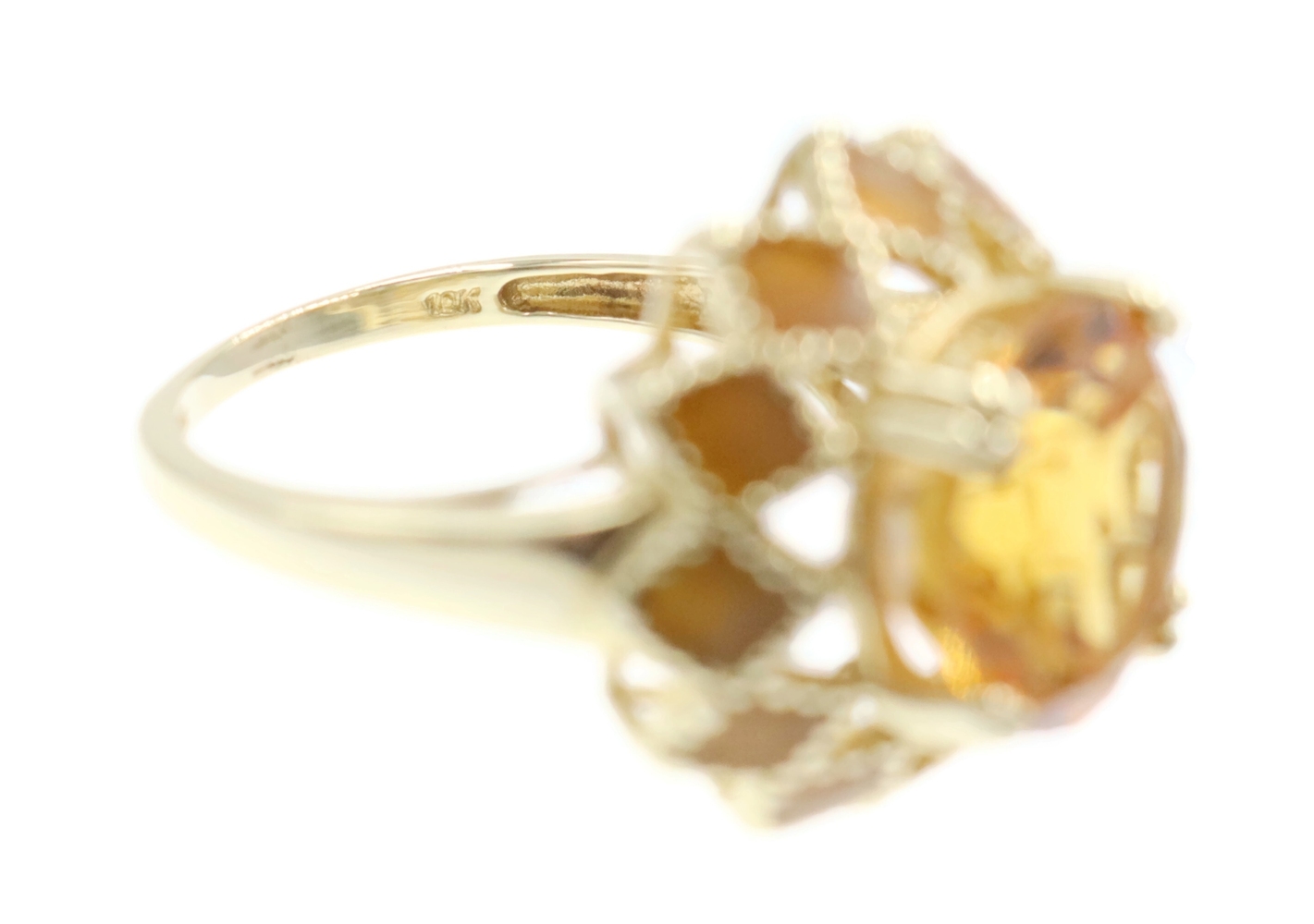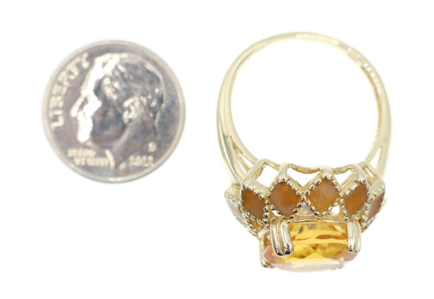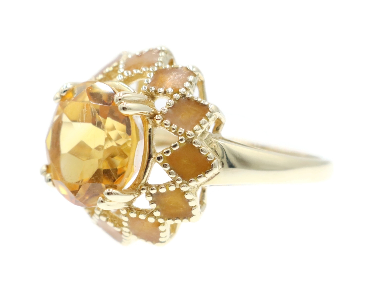 4.42 Ct Round Cut Citrine & Orange Enamel 18.6mm 10KT Yellow Gold Cocktail Ring | USA Pawn
