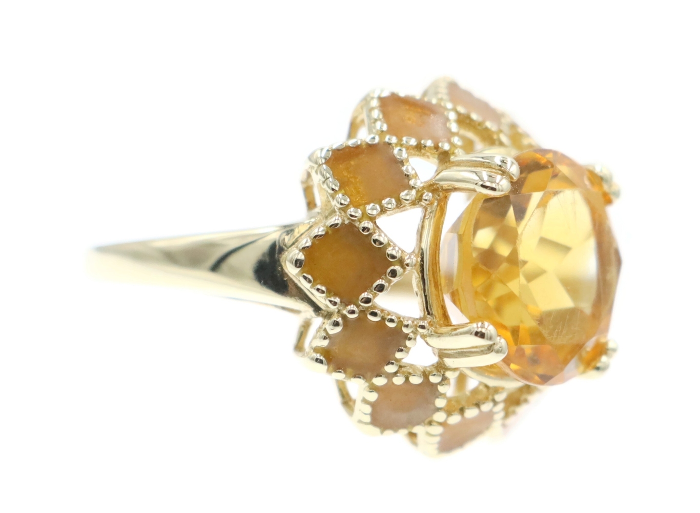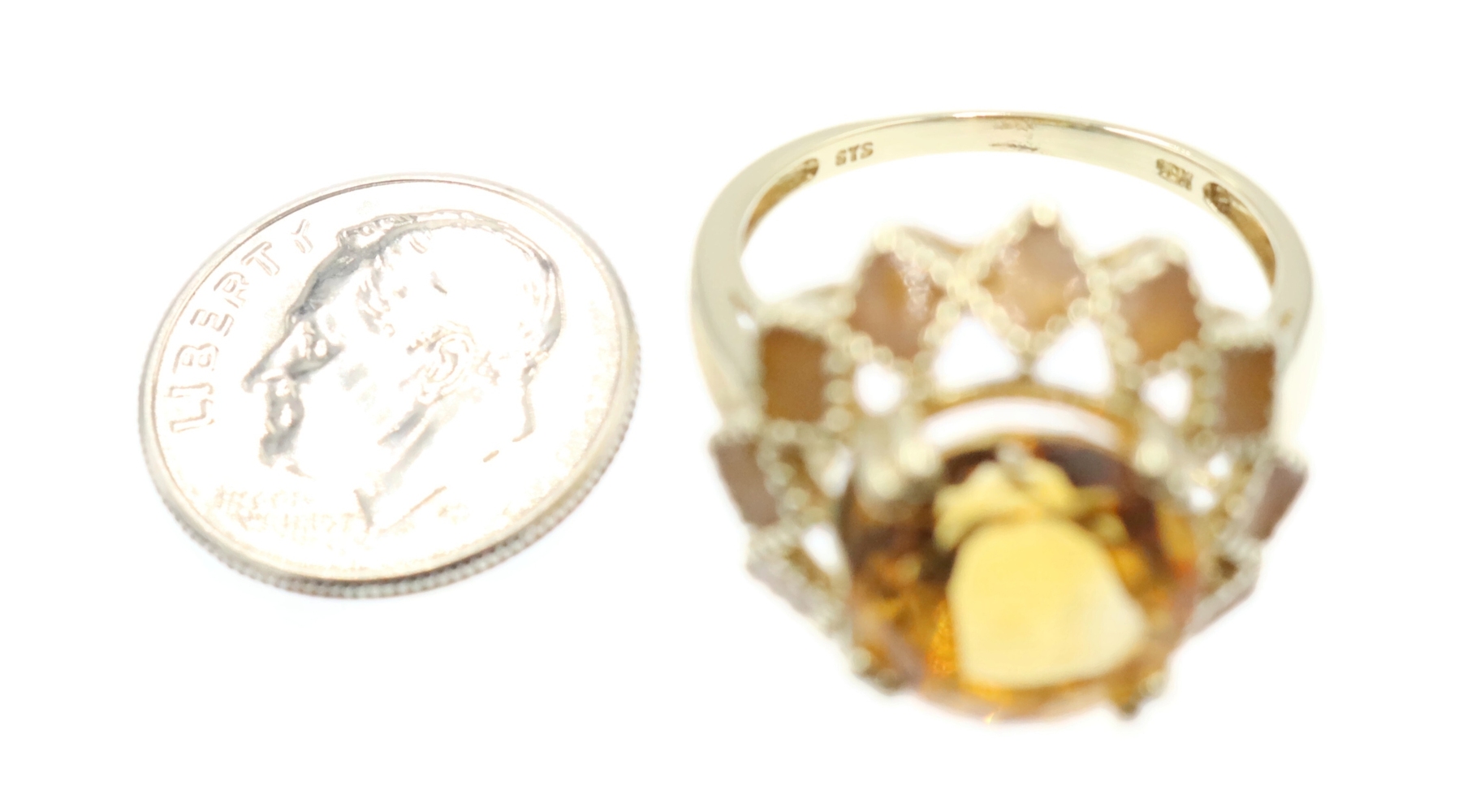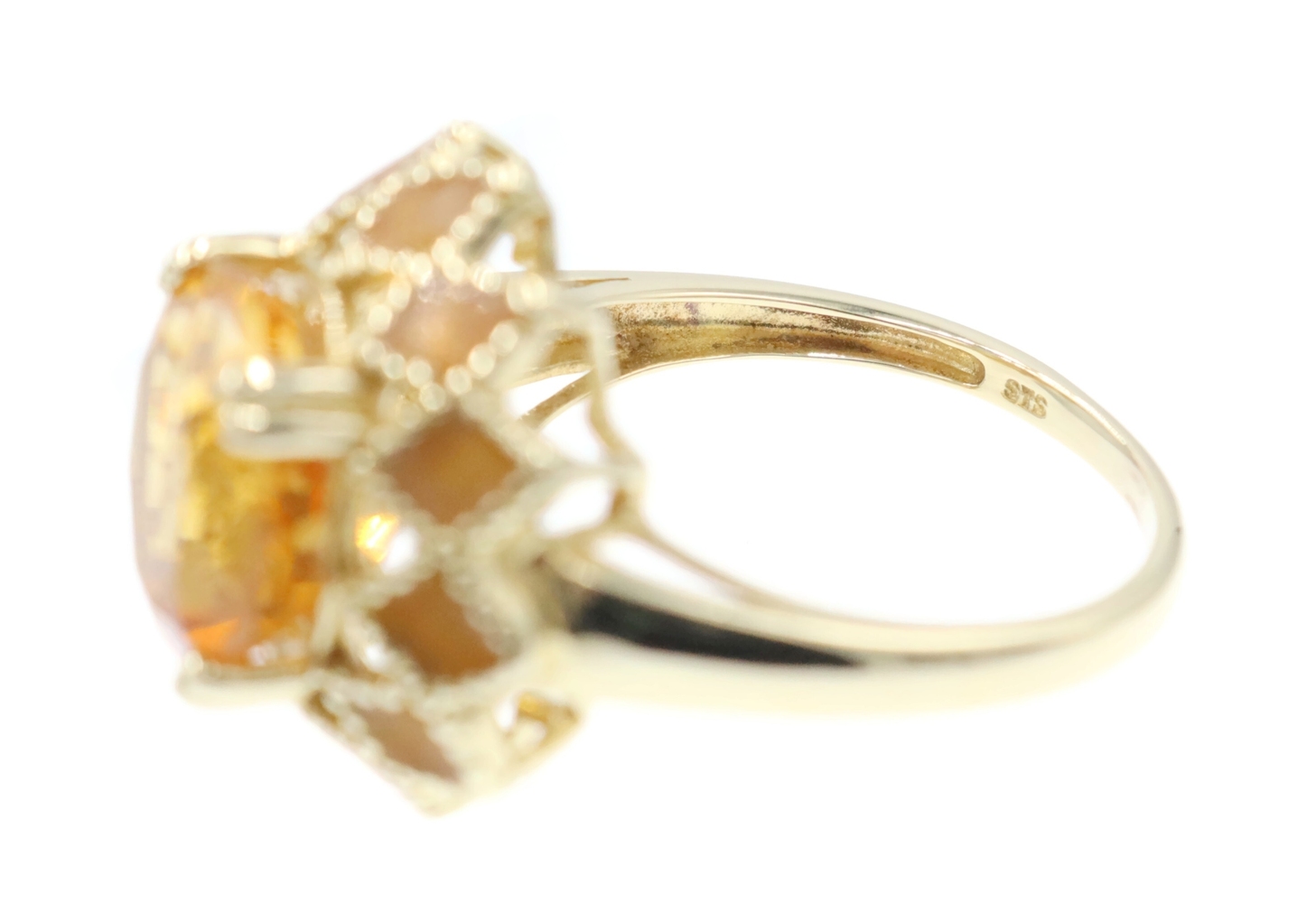 4.42 Ct Round Cut Citrine & Orange Enamel 18.6mm 10KT Yellow Gold Cocktail Ring | USA Pawn