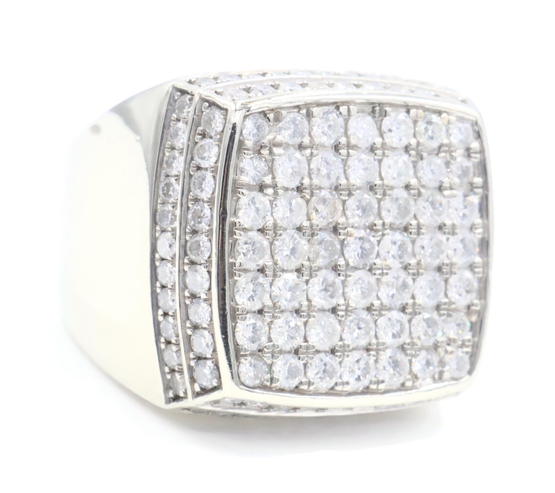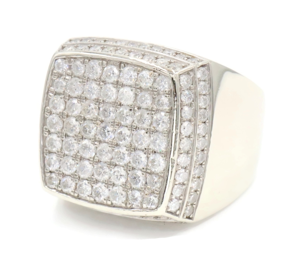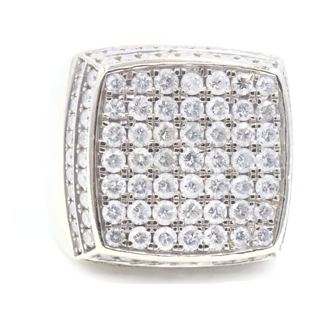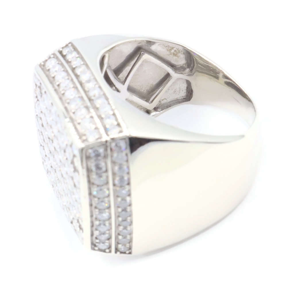 4.80 Ctw Round Diamond Square Cluster 10KT White Gold 22.6mm Signet Ring GDM 16g | USA Pawn