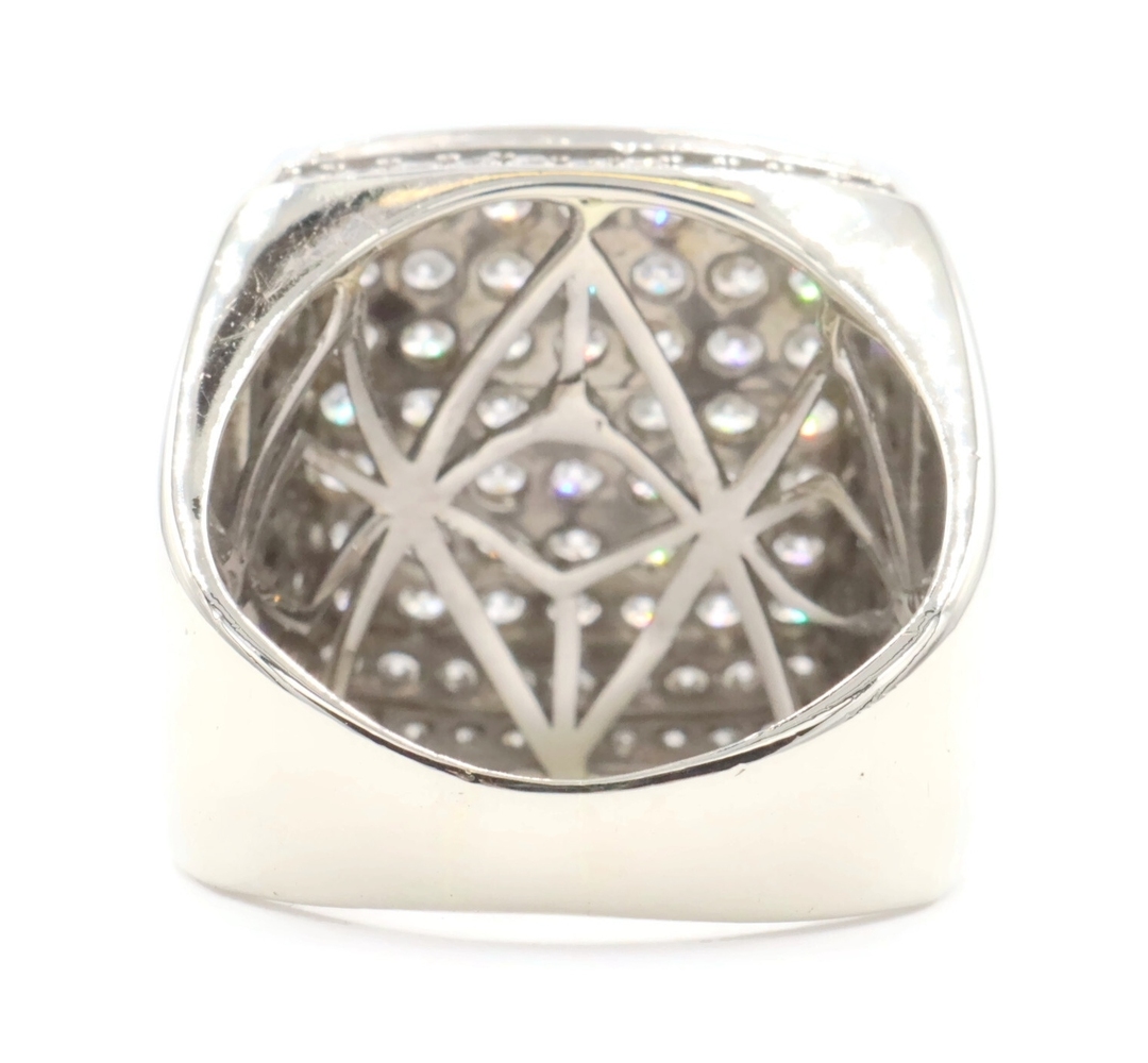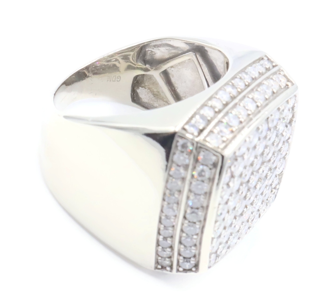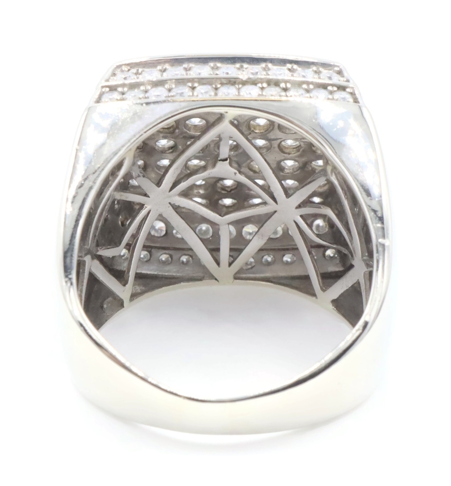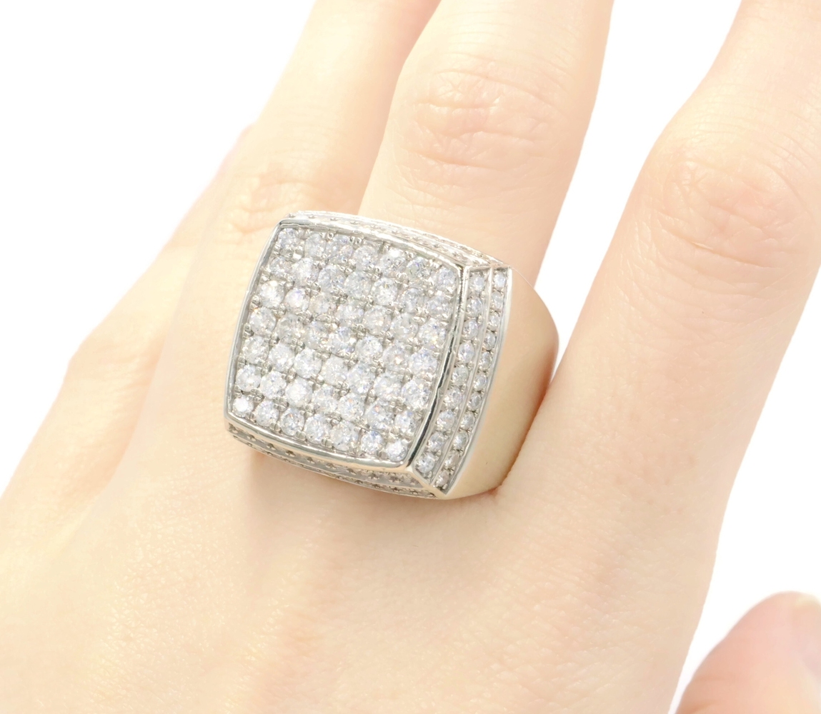 4.80 Ctw Round Diamond Square Cluster 10KT White Gold 22.6mm Signet Ring GDM 16g | USA Pawn