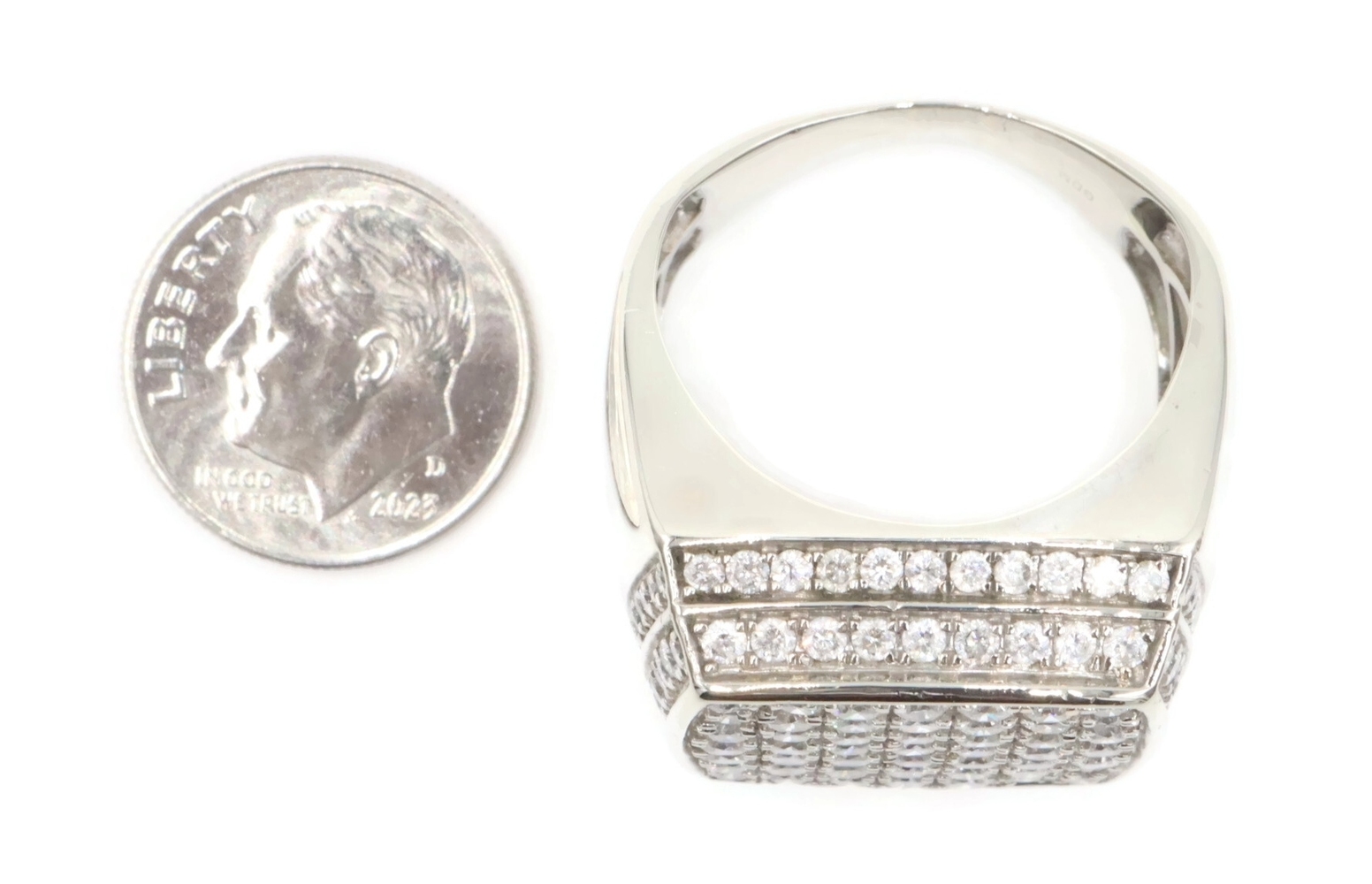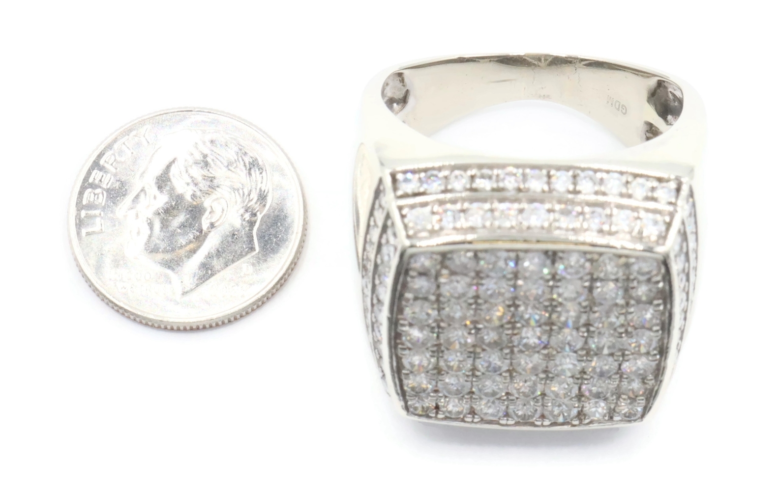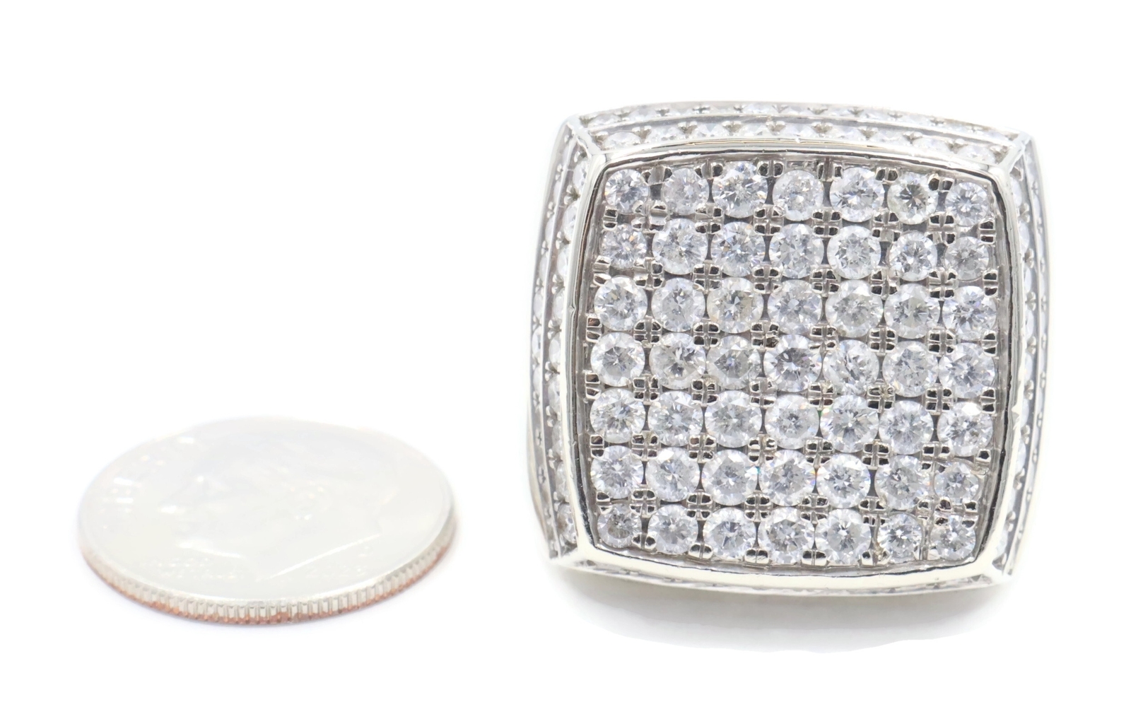 4.80 Ctw Round Diamond Square Cluster 10KT White Gold 22.6mm Signet Ring GDM 16g. This ring is a size 9 1/2.