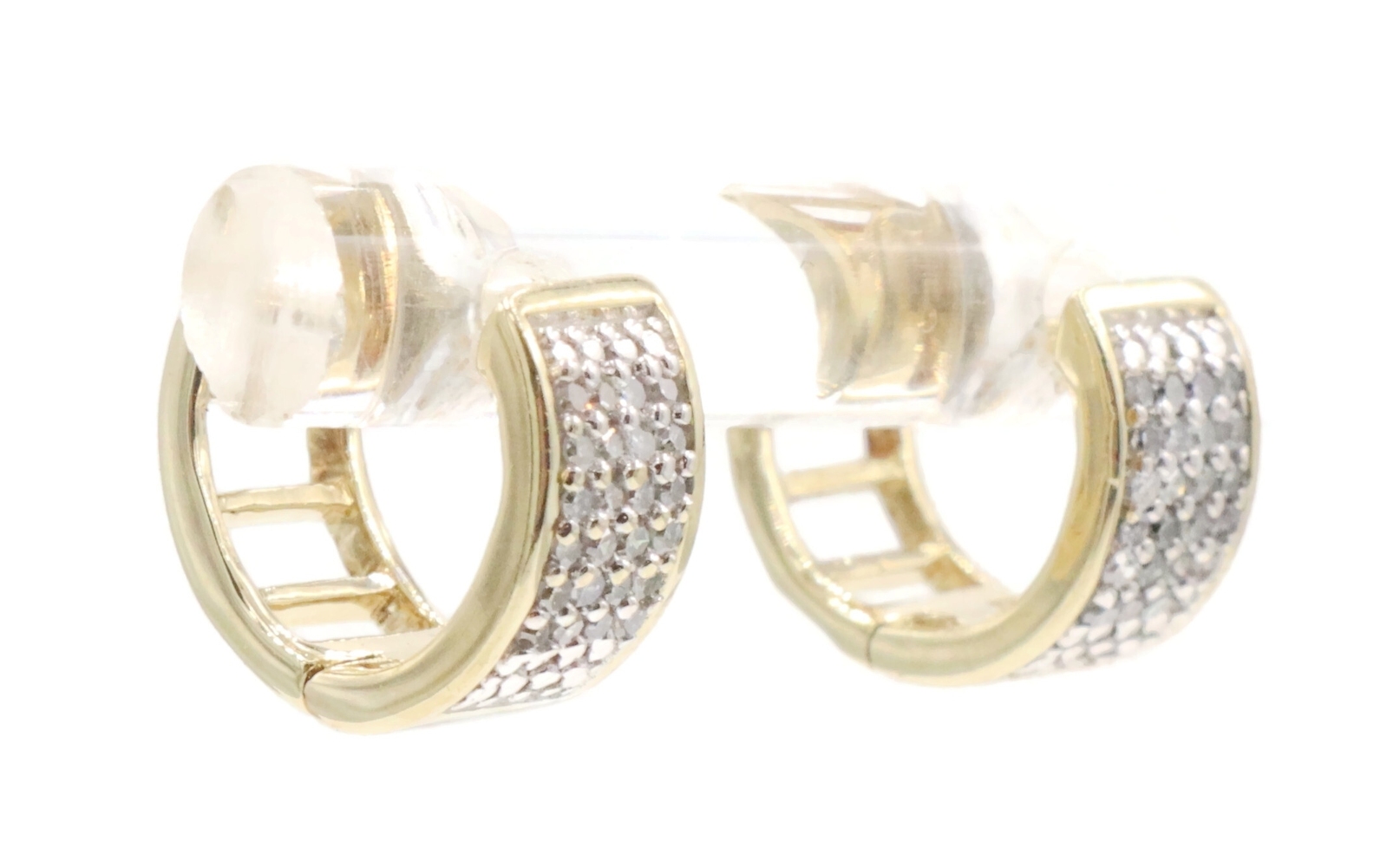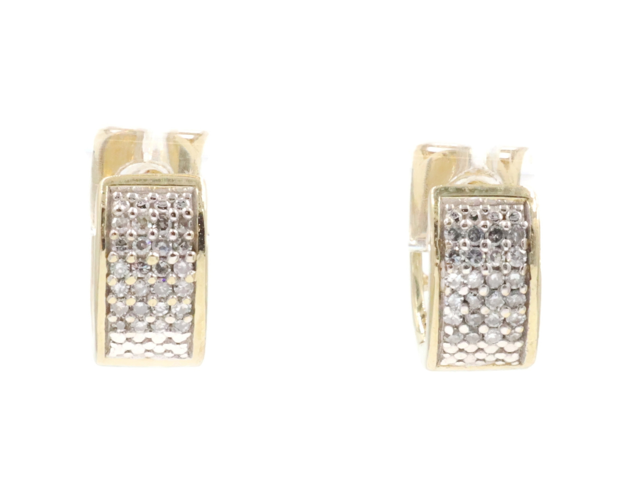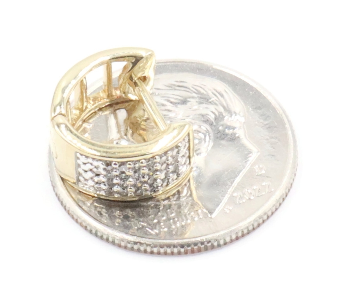 4-Row 0.24 Ctw Round Diamond 10KT Yellow Gold 8.9mm Huggie Hoop Earrings - 2.24g | USA Pawn