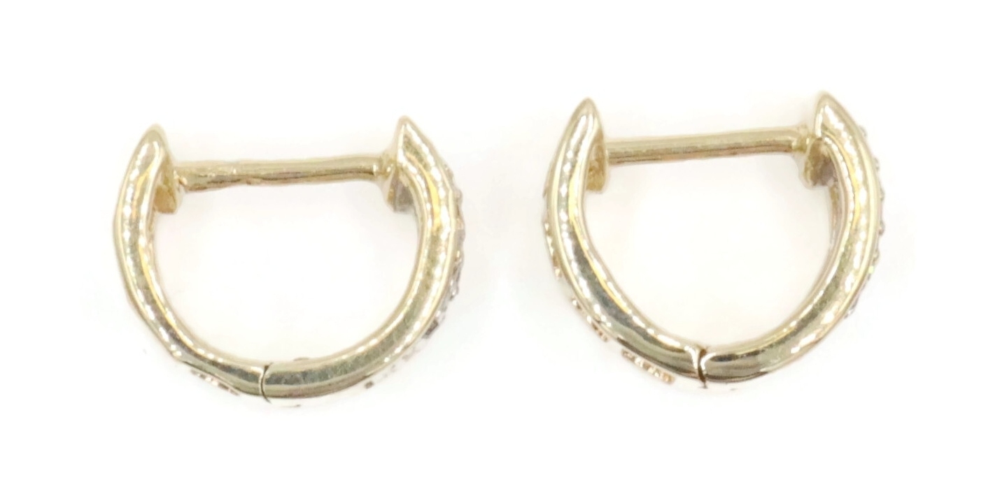 4-Row 0.24 Ctw Round Diamond 10KT Yellow Gold 8.9mm Huggie Hoop Earrings - 2.24g. These earrings each have approximate hoop size measurements of 8.9mm x 11mm.