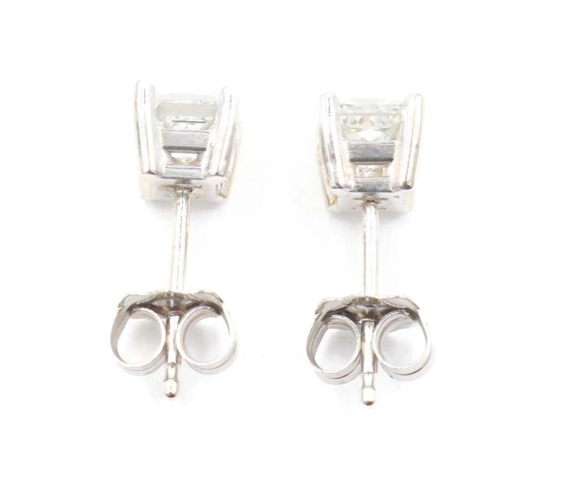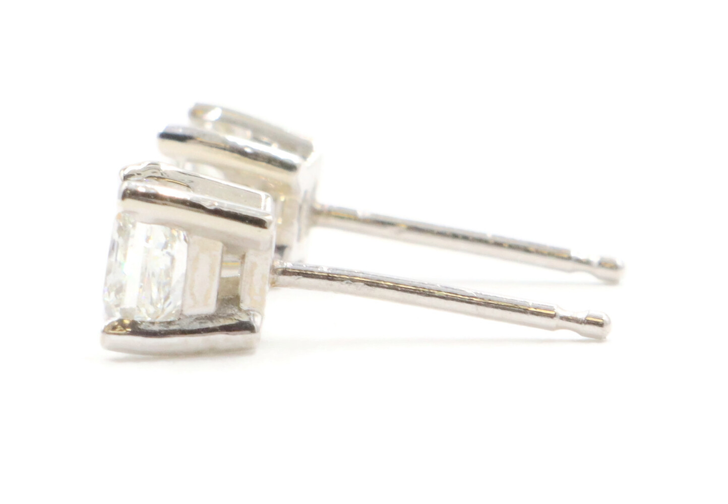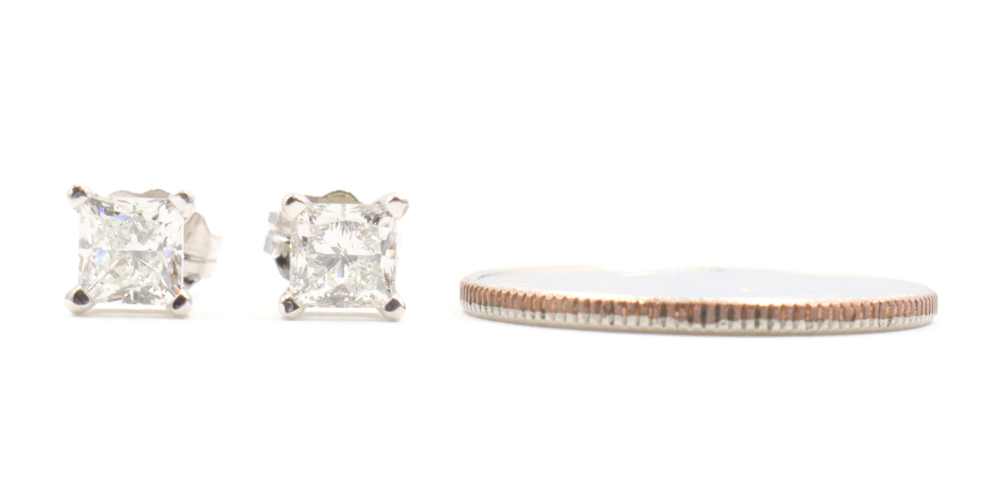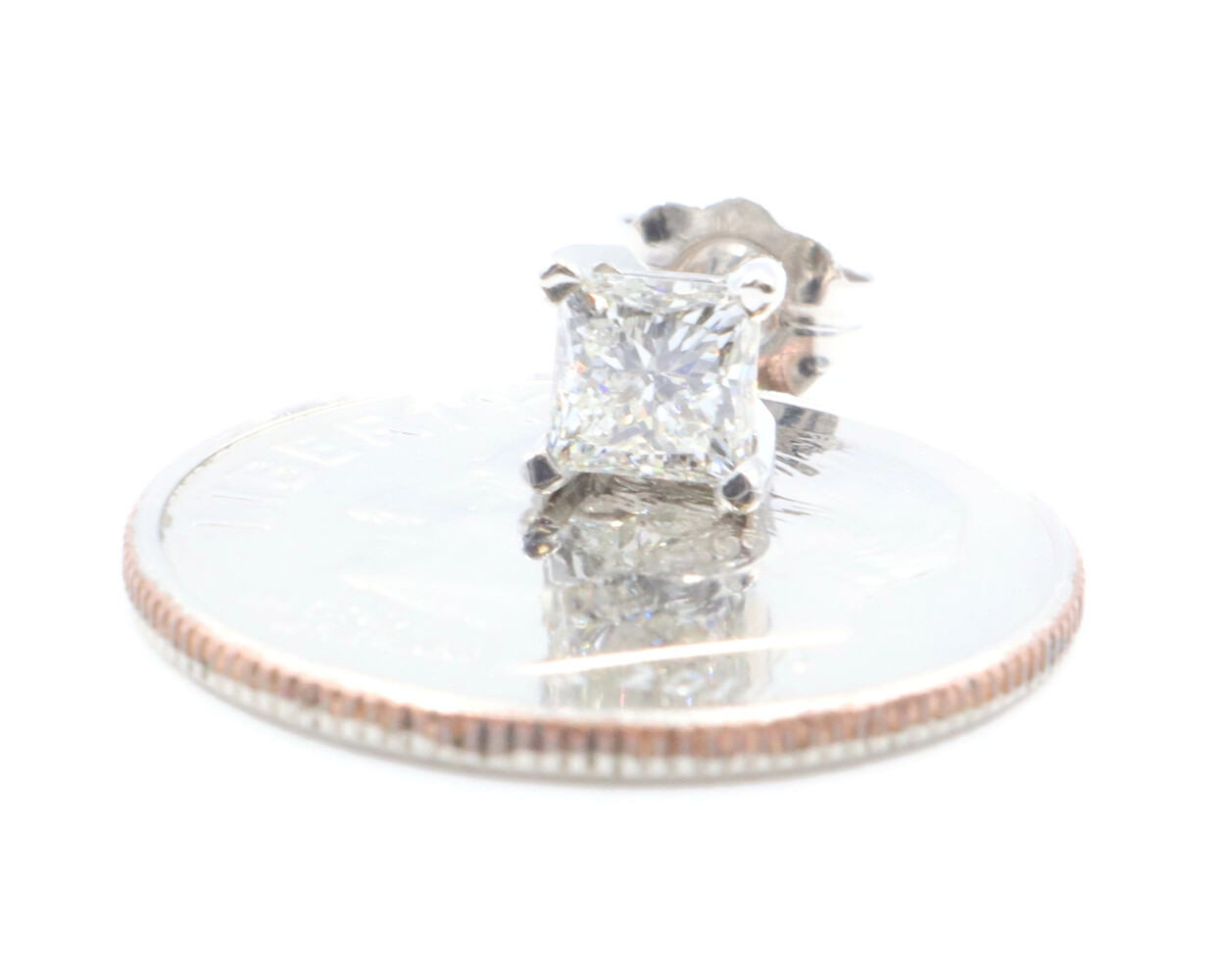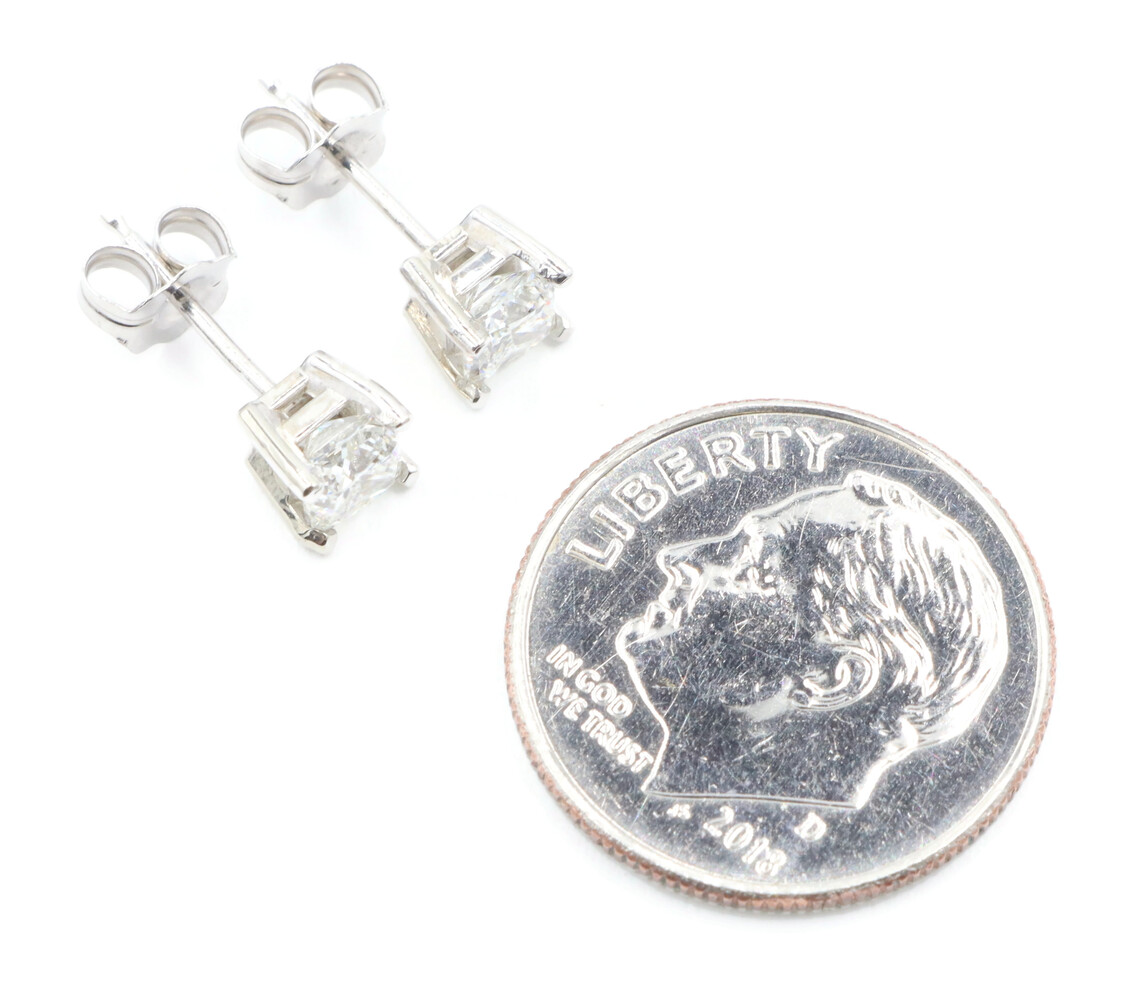 5/8 ctw Princess Cut Natural Diamond 14KT White Gold Solitaire Stud Earrings | USA Pawn