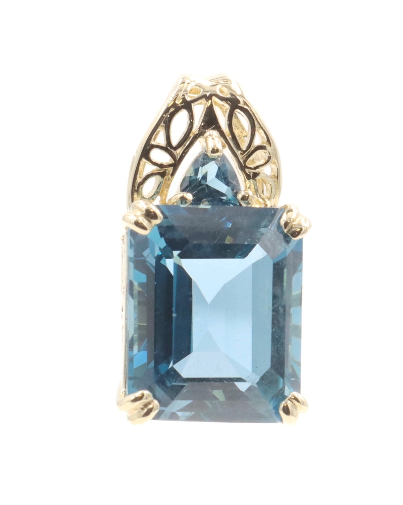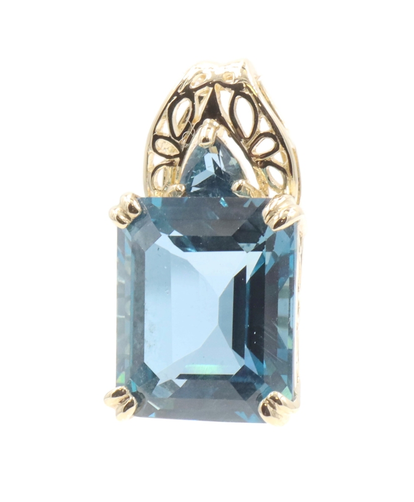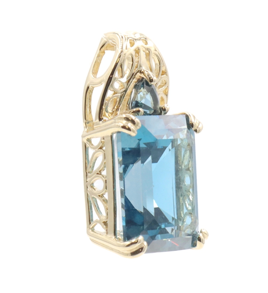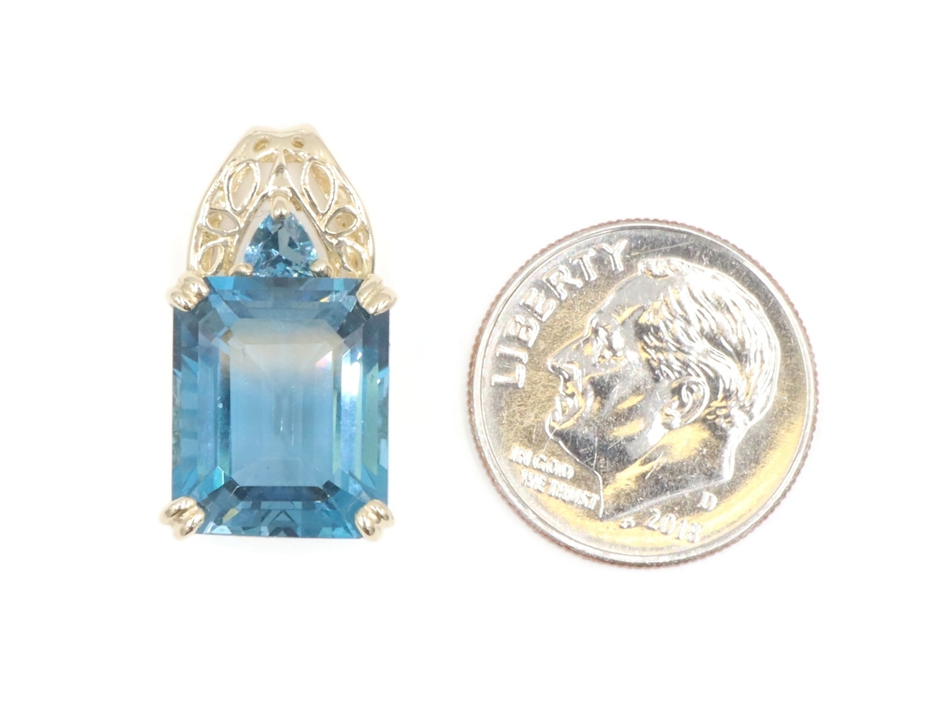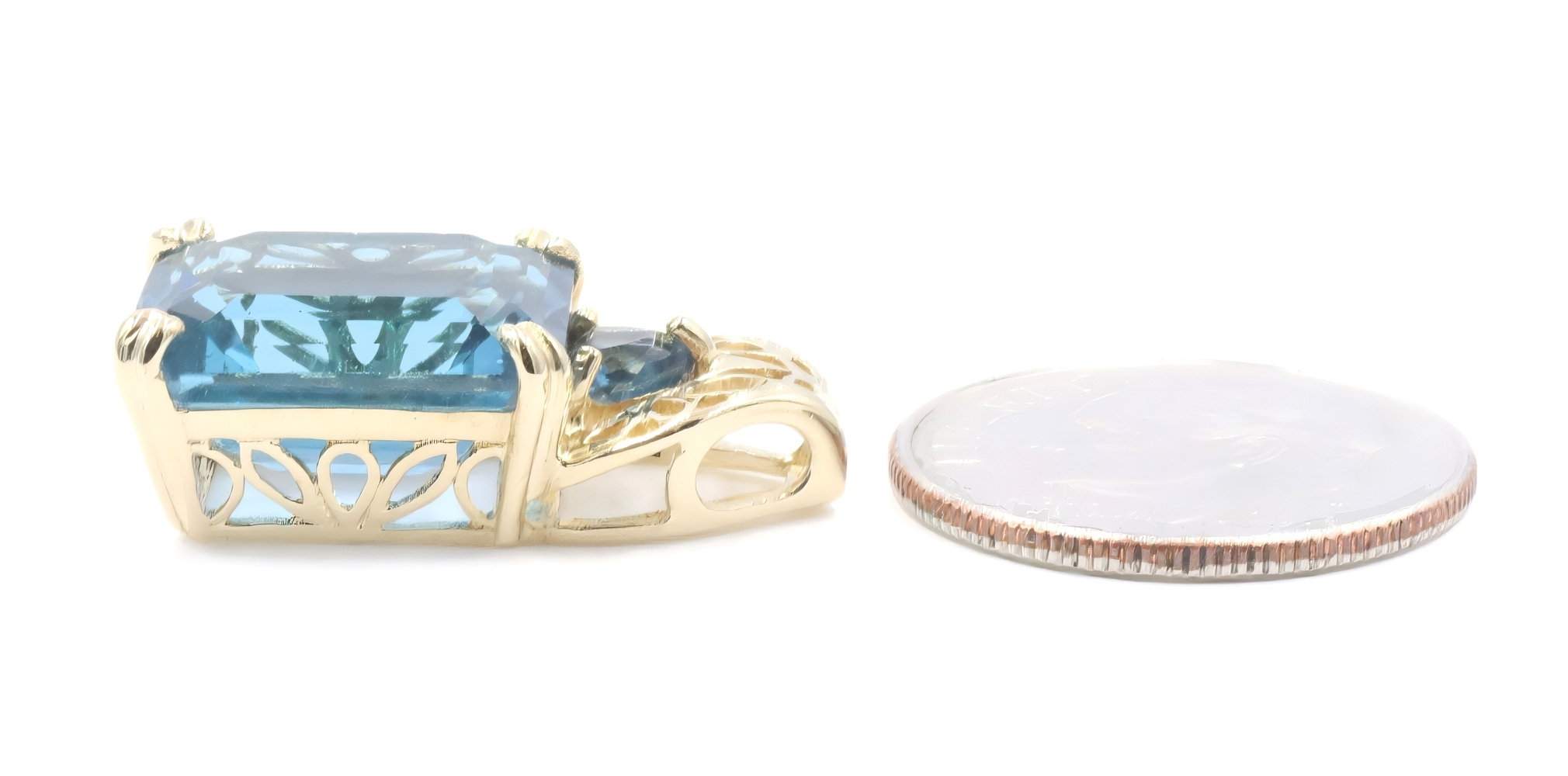 8.30 ctw Emerald & Trilliant Cut Blue Topaz 10KT Yellow Gold Necklace Pendant. This pendant is 10KT yellow gold and has a max length of 21.5mm.