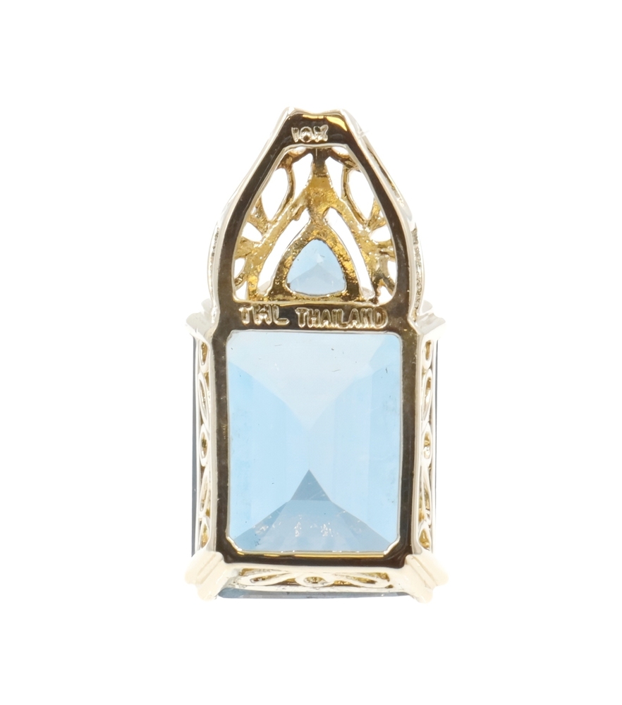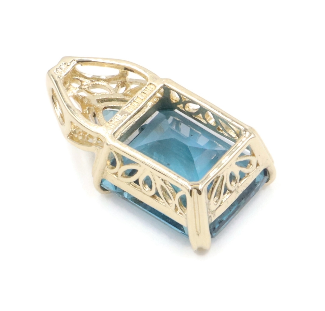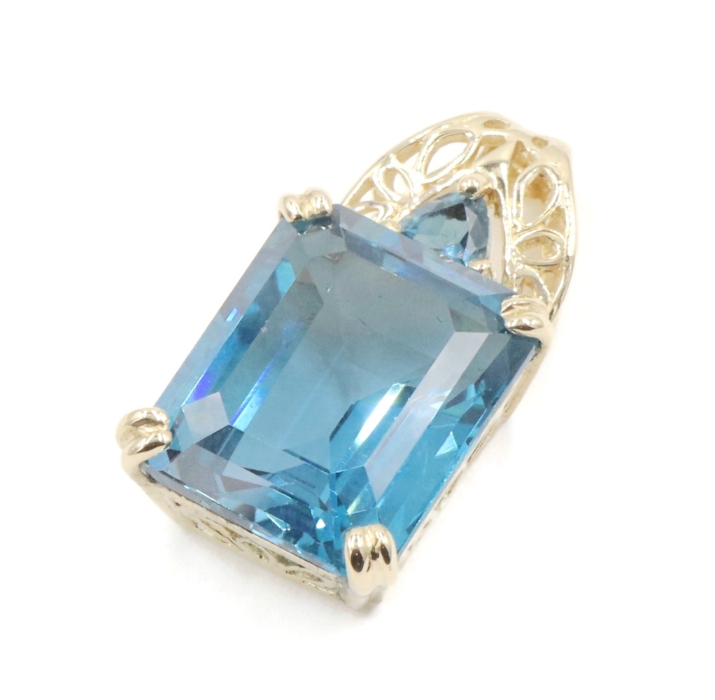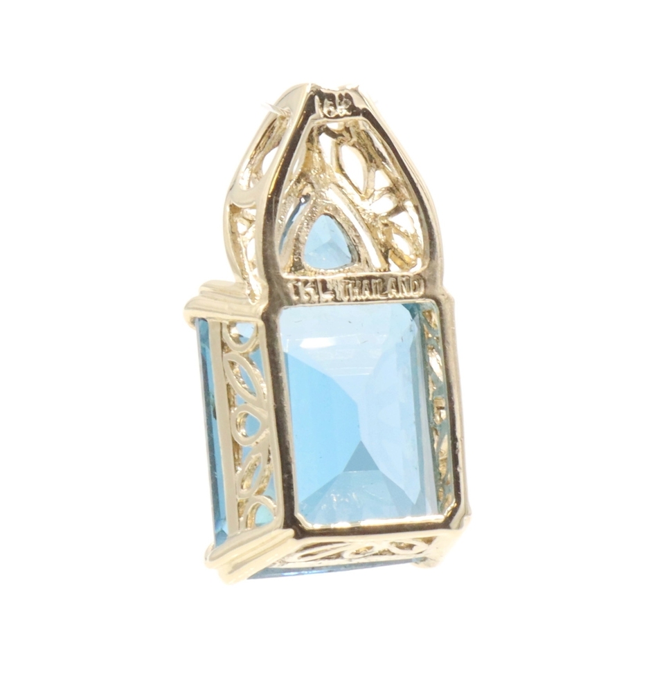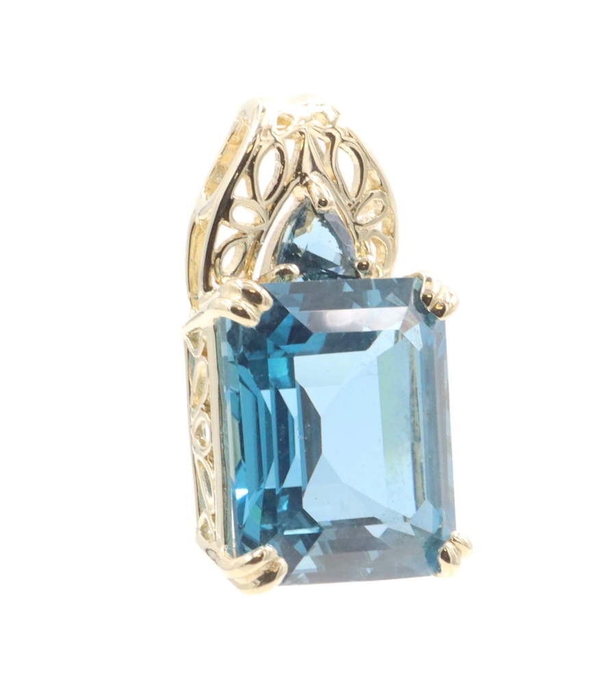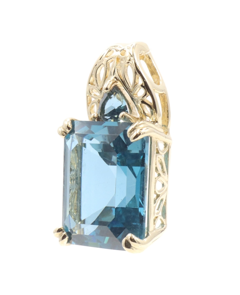 8.30 ctw Emerald & Trilliant Cut Blue Topaz 10KT Yellow Gold Necklace Pendant. This pendant is 10KT yellow gold and has a max length of 21.5mm.